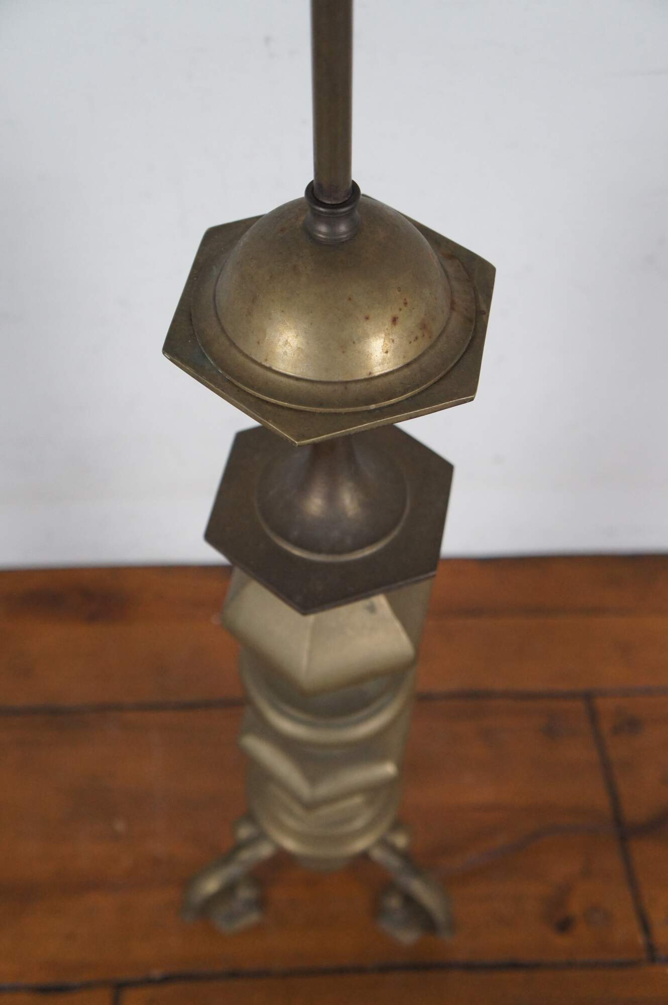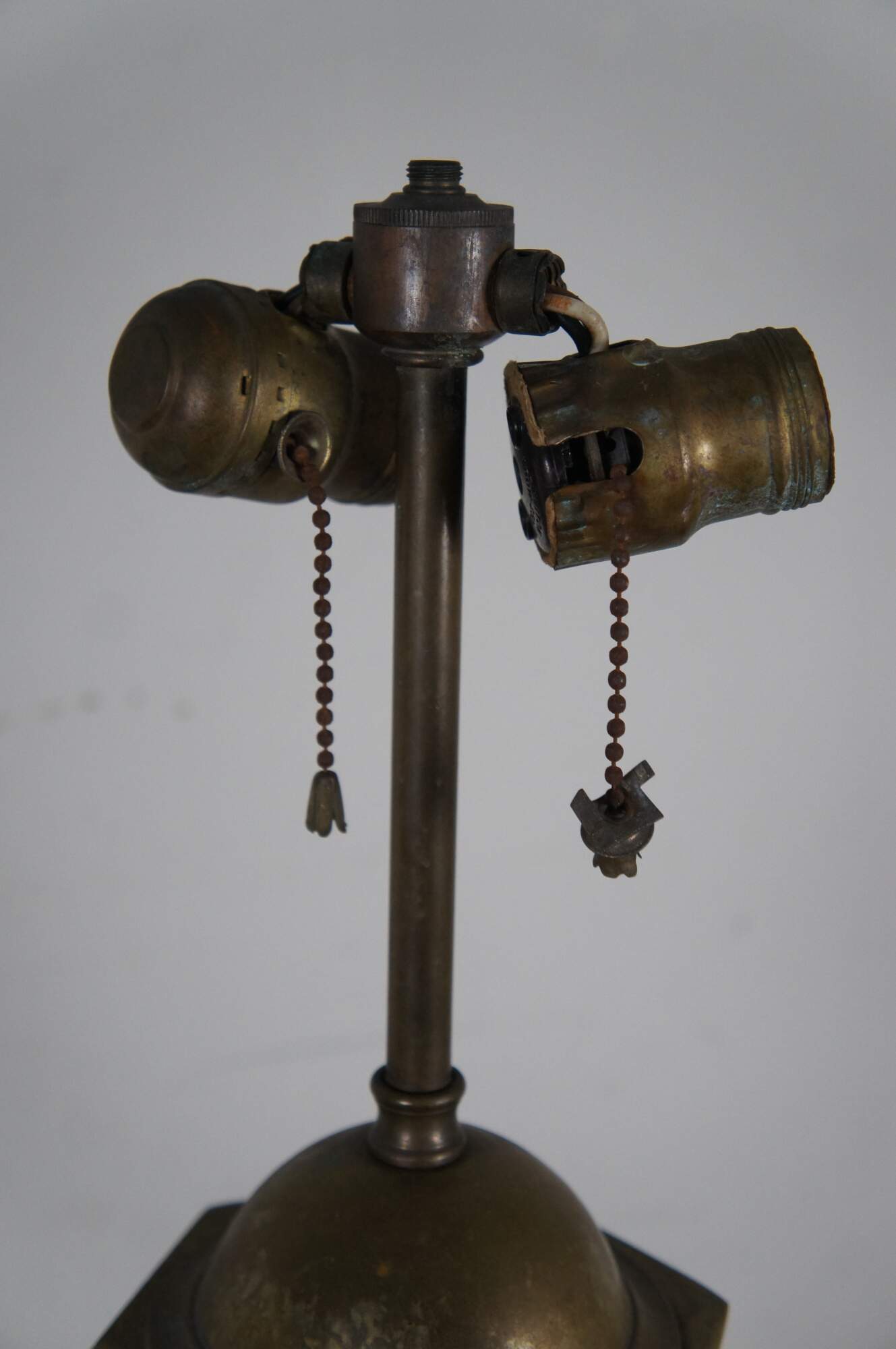 Fair Condition - Gentle wear/spots/tarnish to brass; one needs repair to sockets; both need rewiring