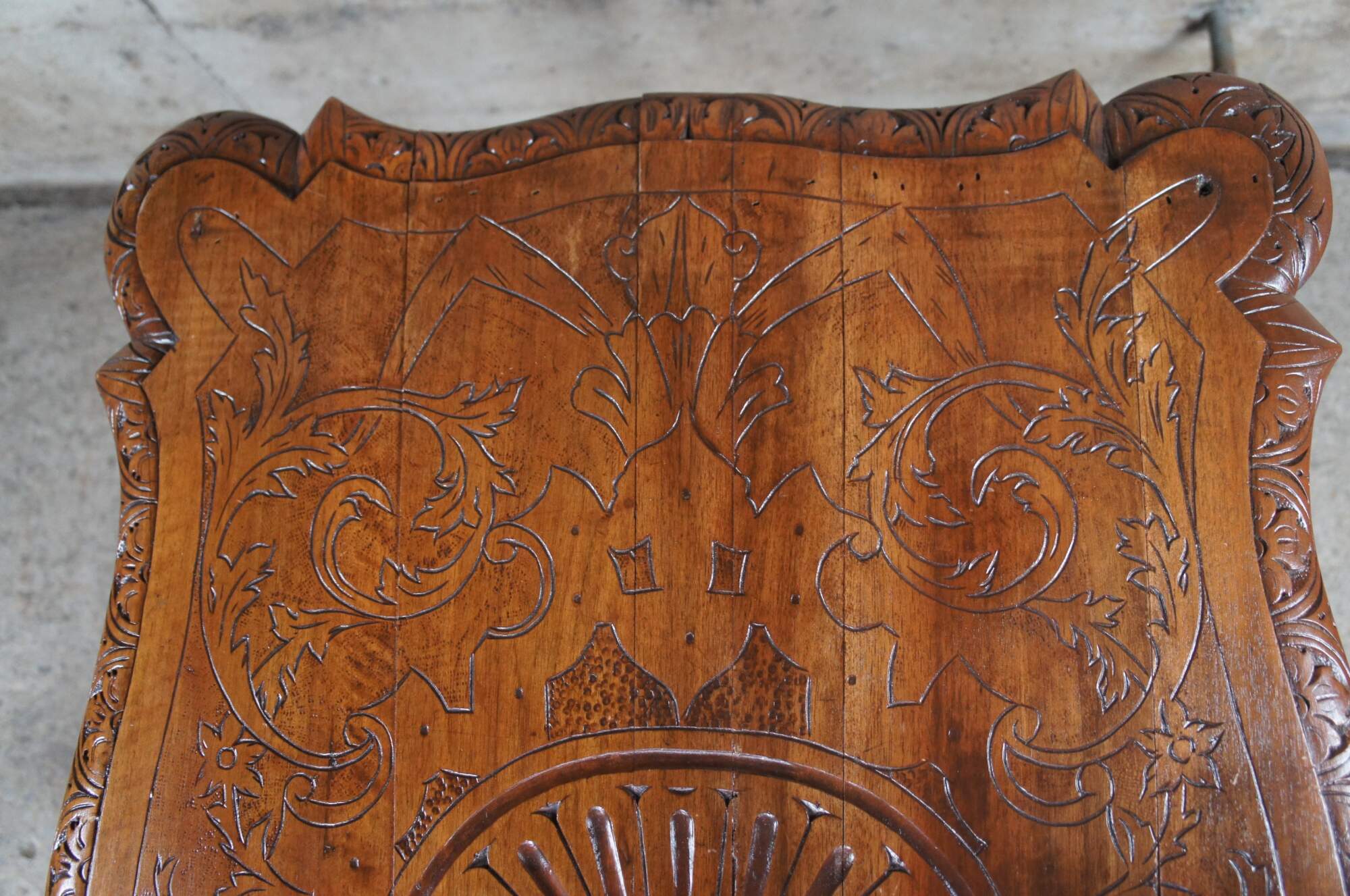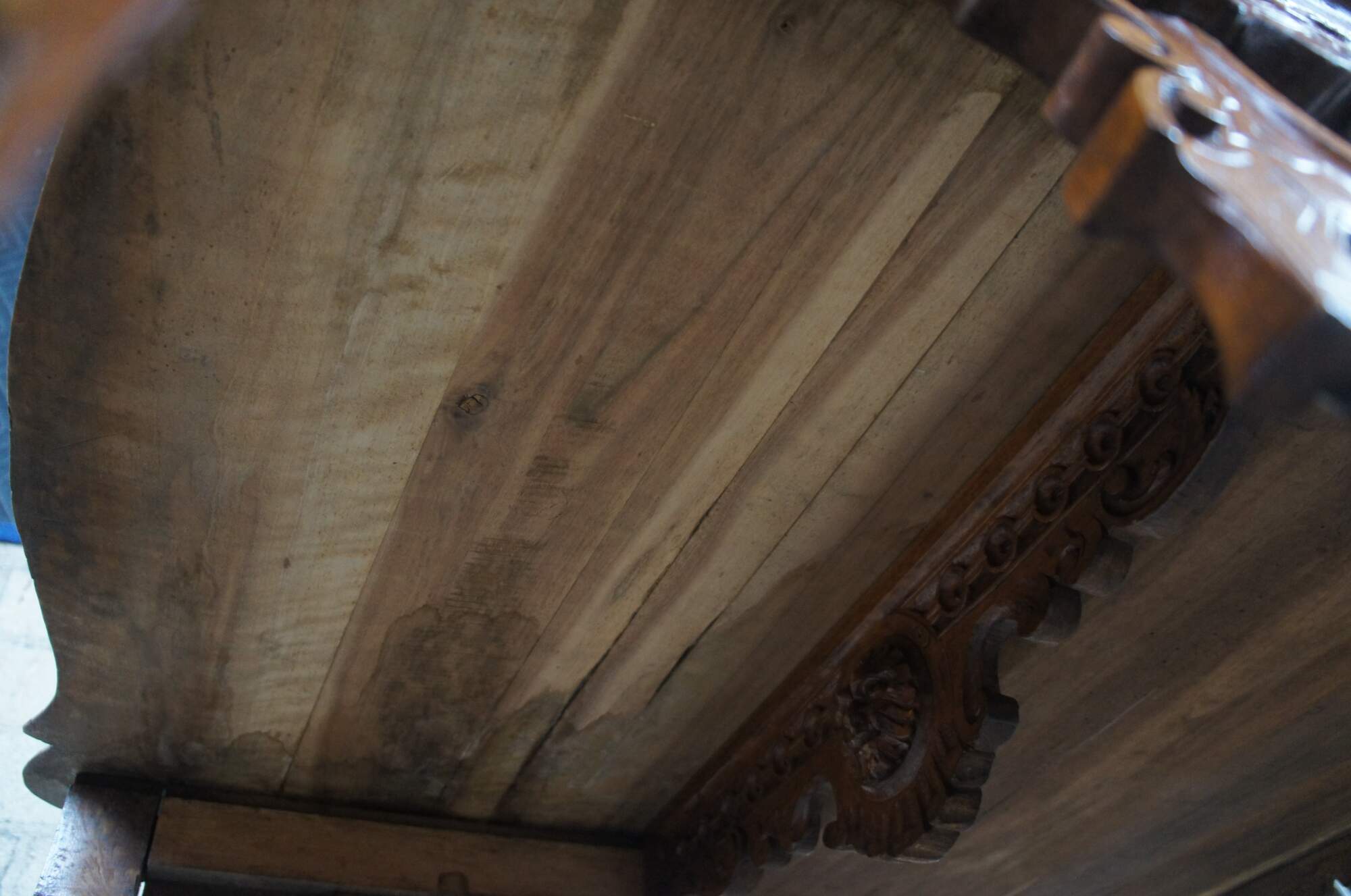 Good antique condition, wear and distressing commensurate with age and use, splitting.