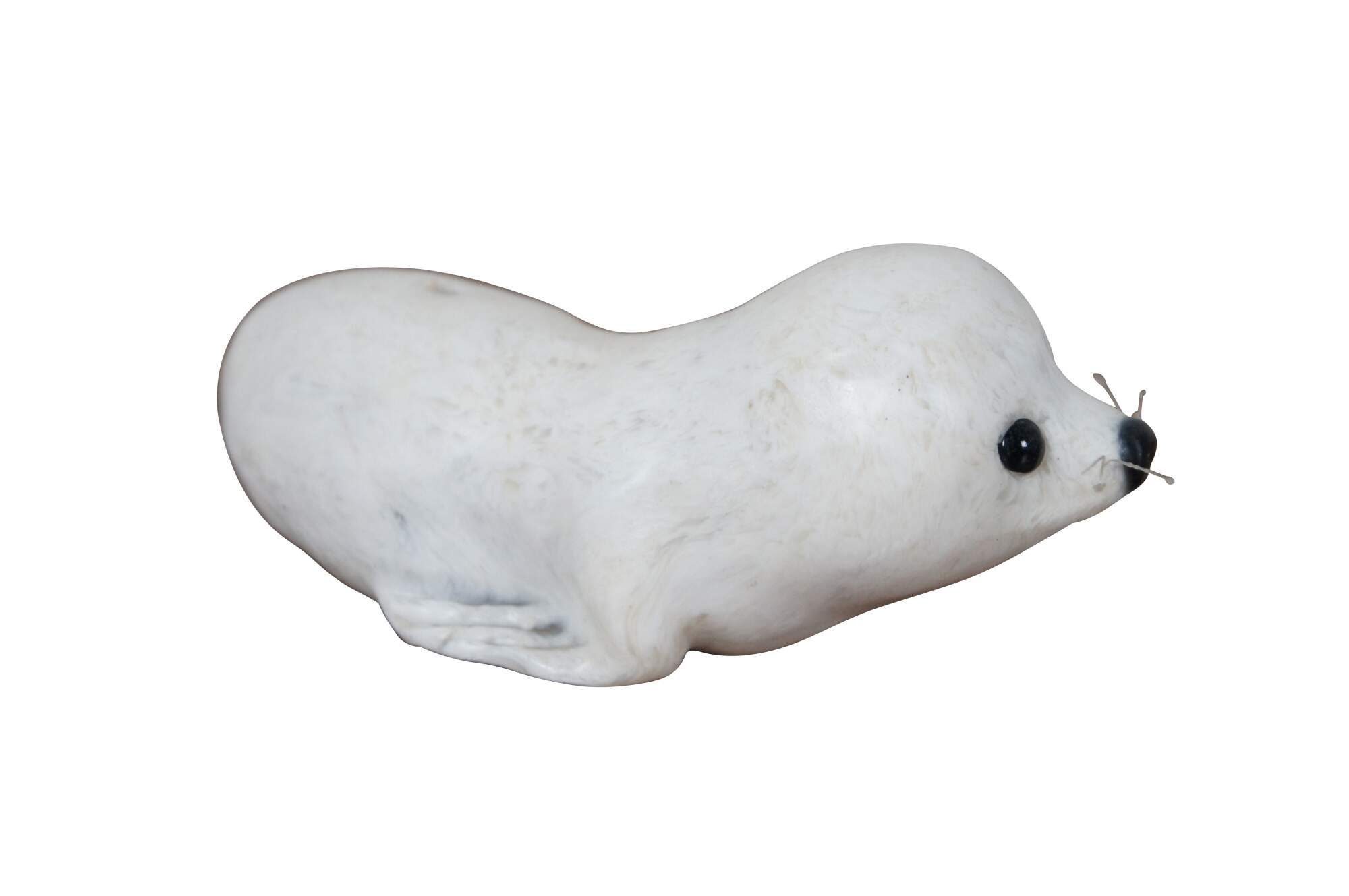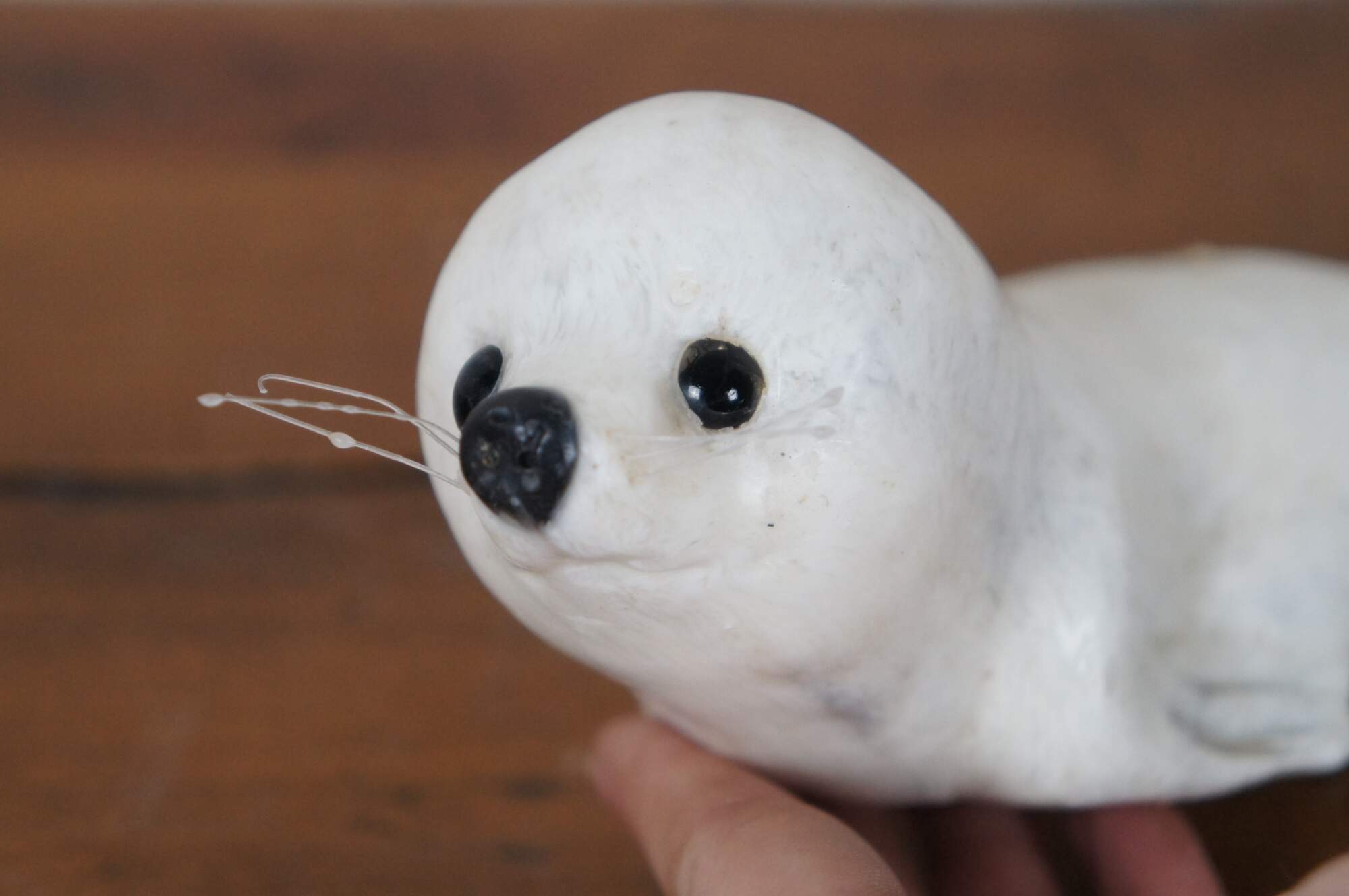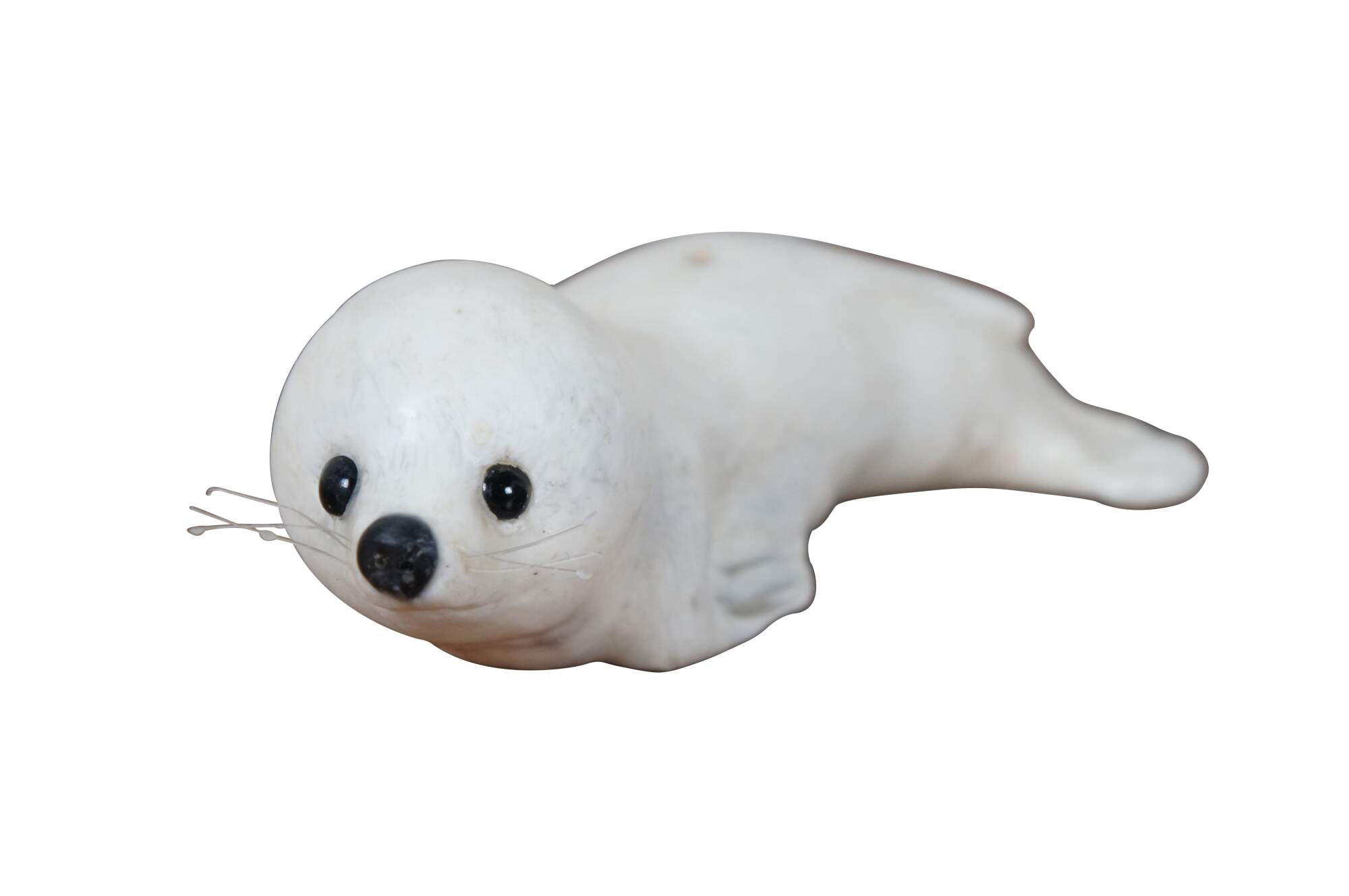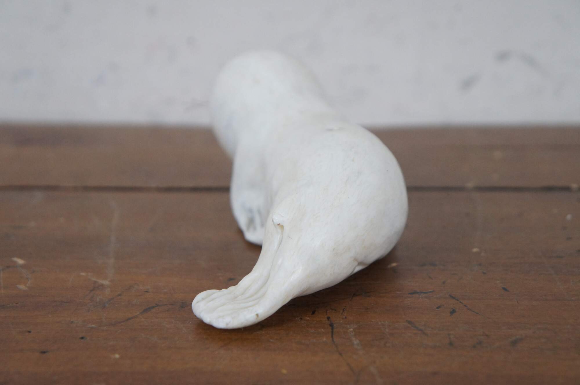 Vintage Handmade Stone Bluegate - San Francisco Candle Company wax figurine candle in the shape of a white seal pup.