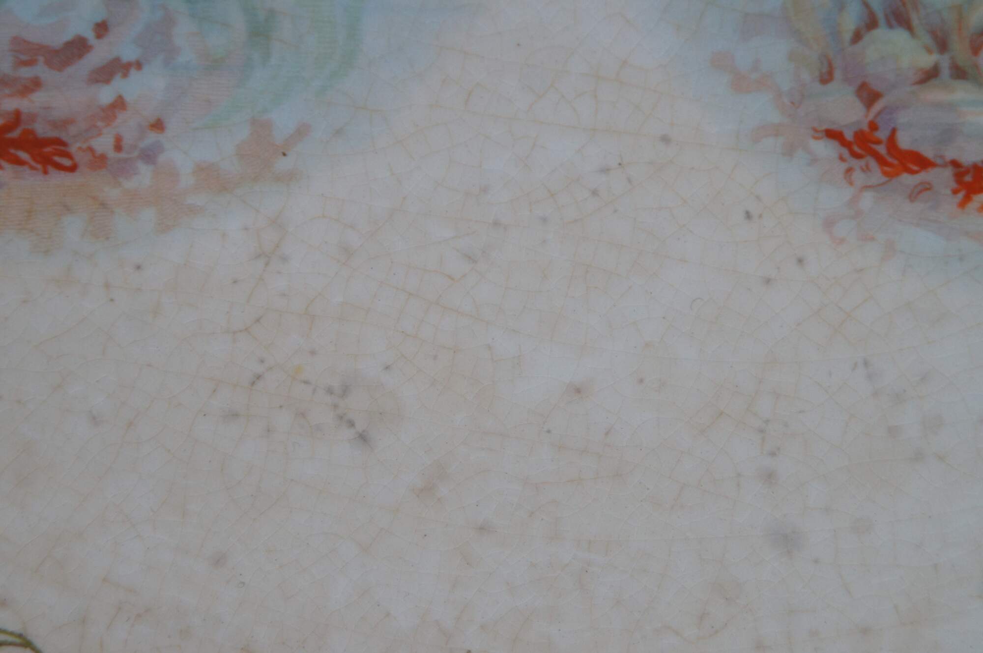 Good Overall - Crazing/discoloration; edge chip; some wear to decoration