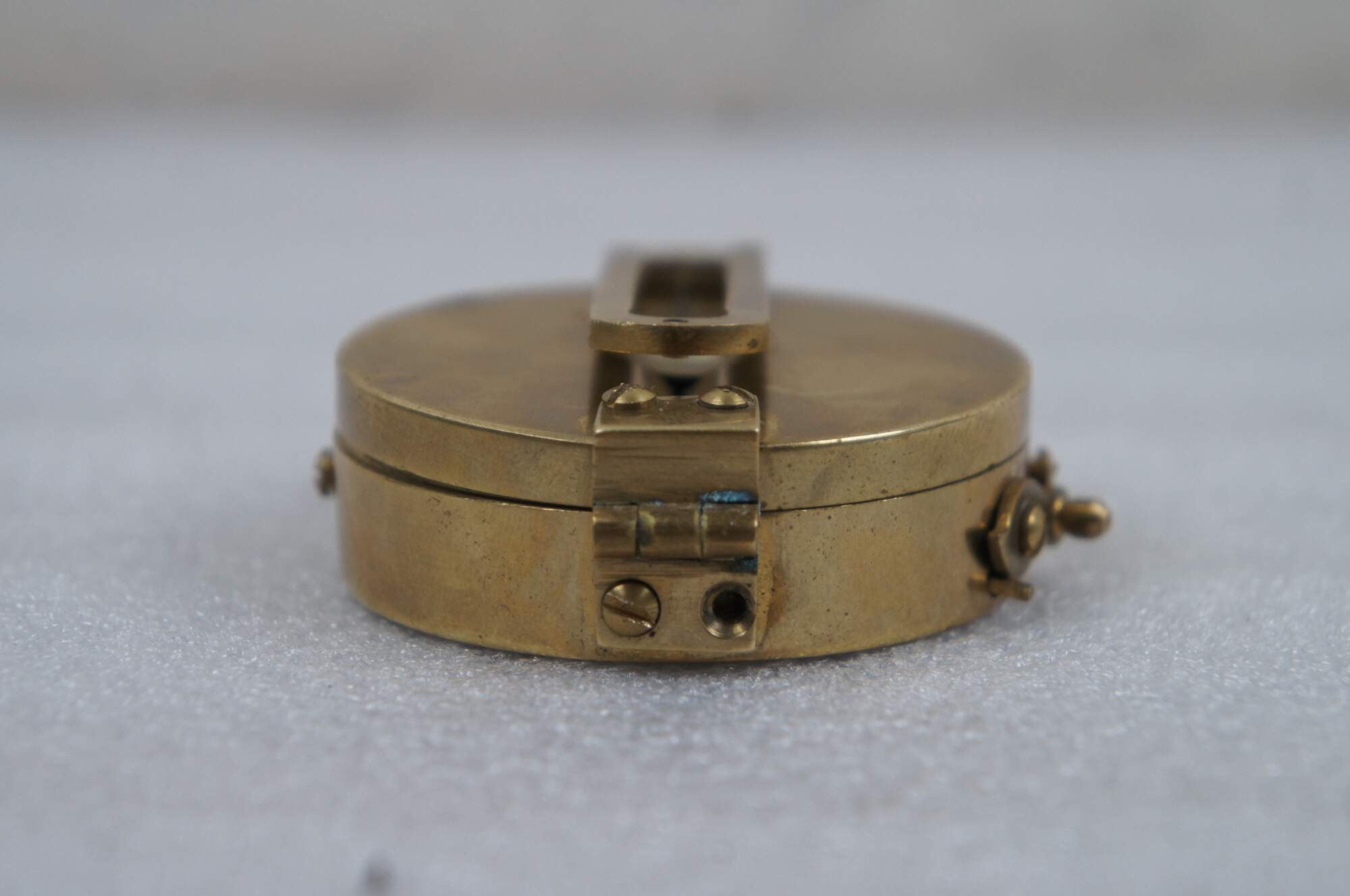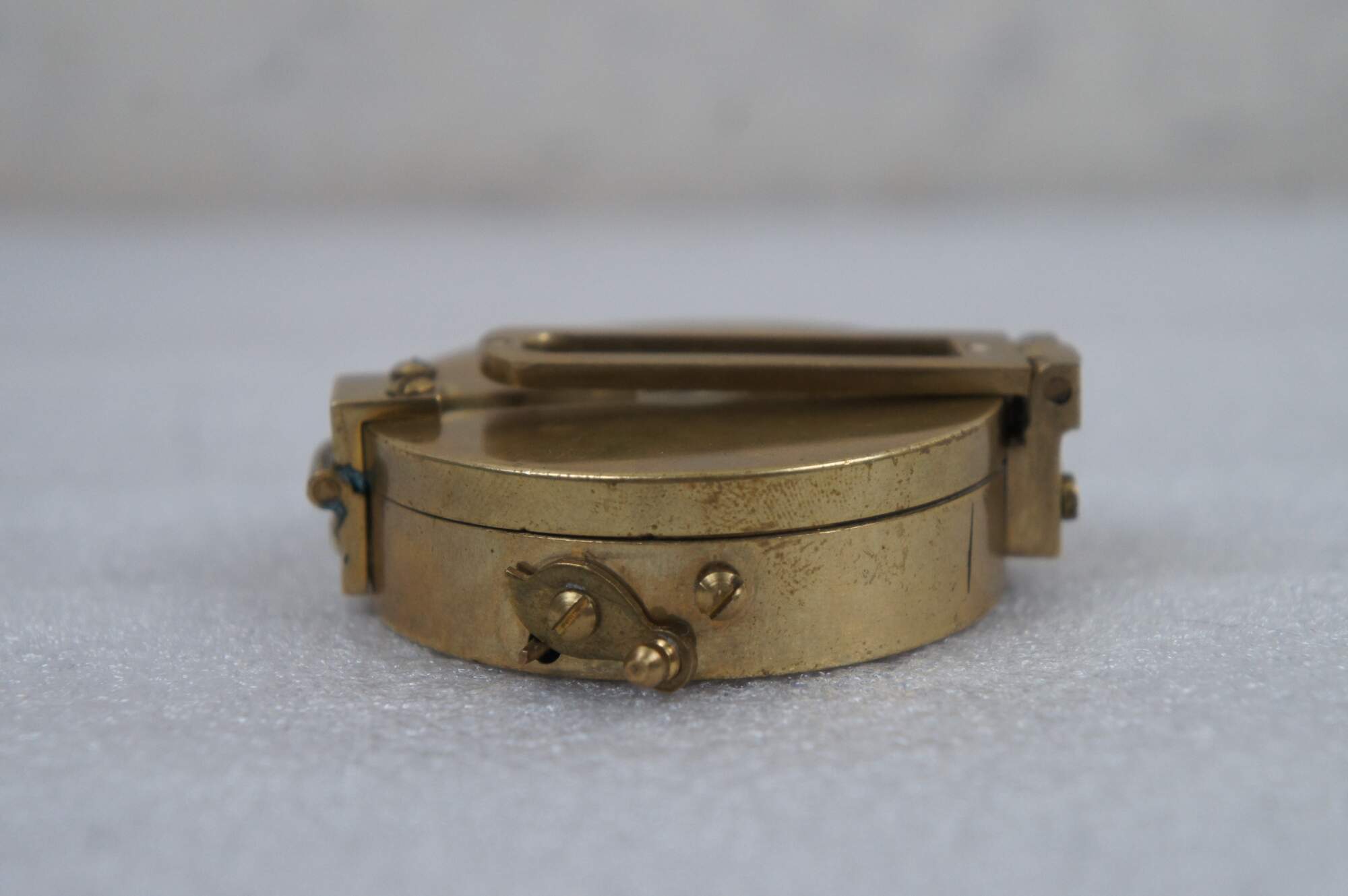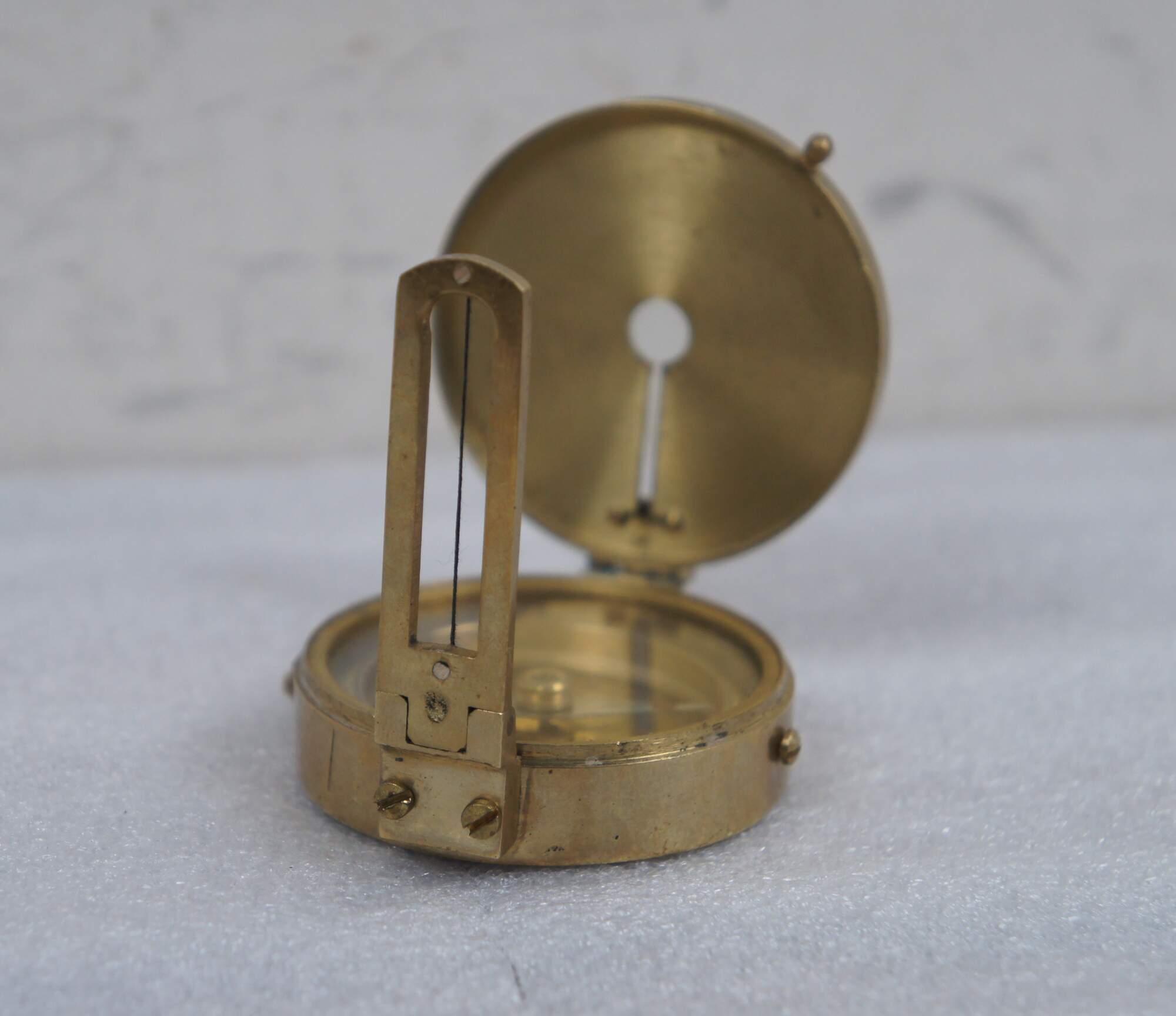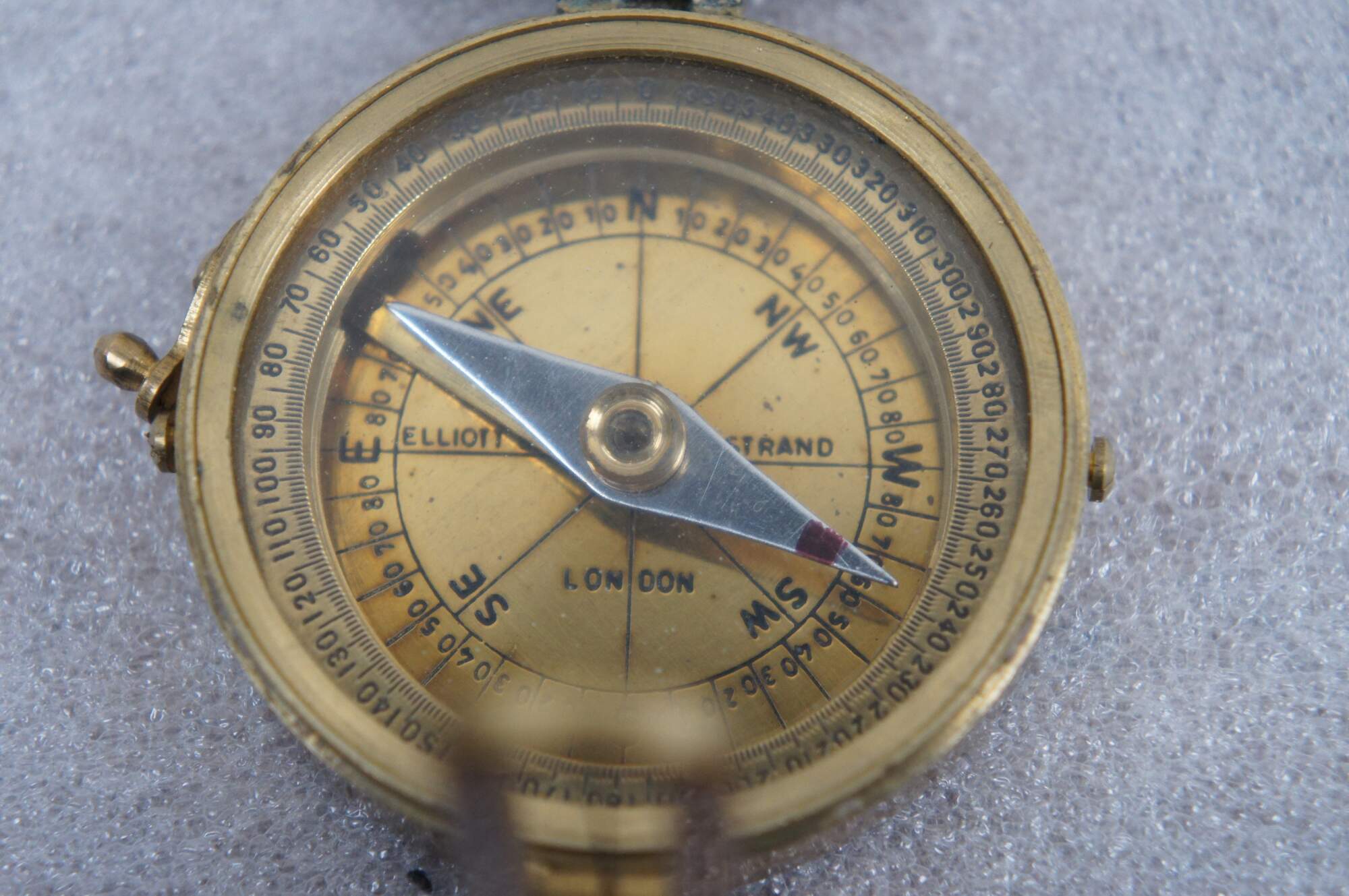 Antique Elliott Brothers of Ramsden, London brass surveyors / nautical maritime compass with brass case and face and folding sightline.