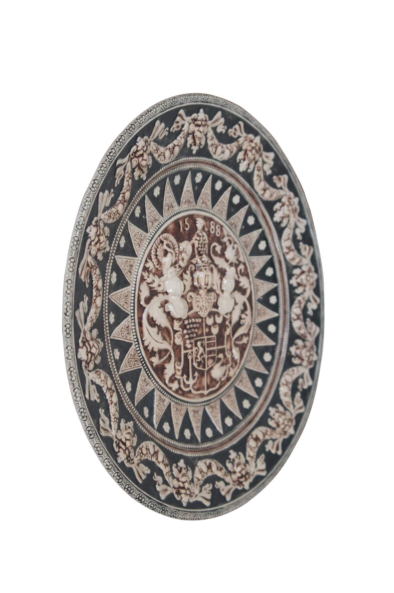 German Westerwald Salt Glaze Stoneware Heraldic Coat of Arms Plate 1588 15"