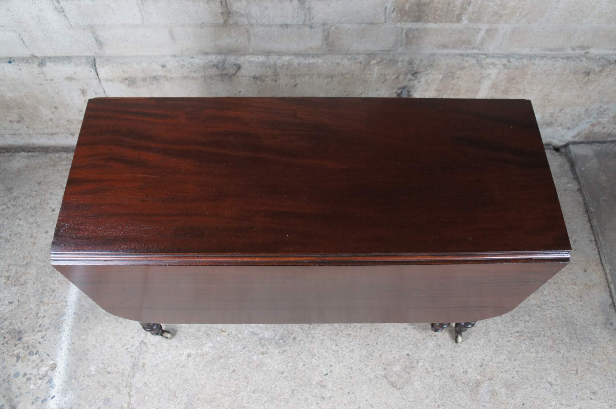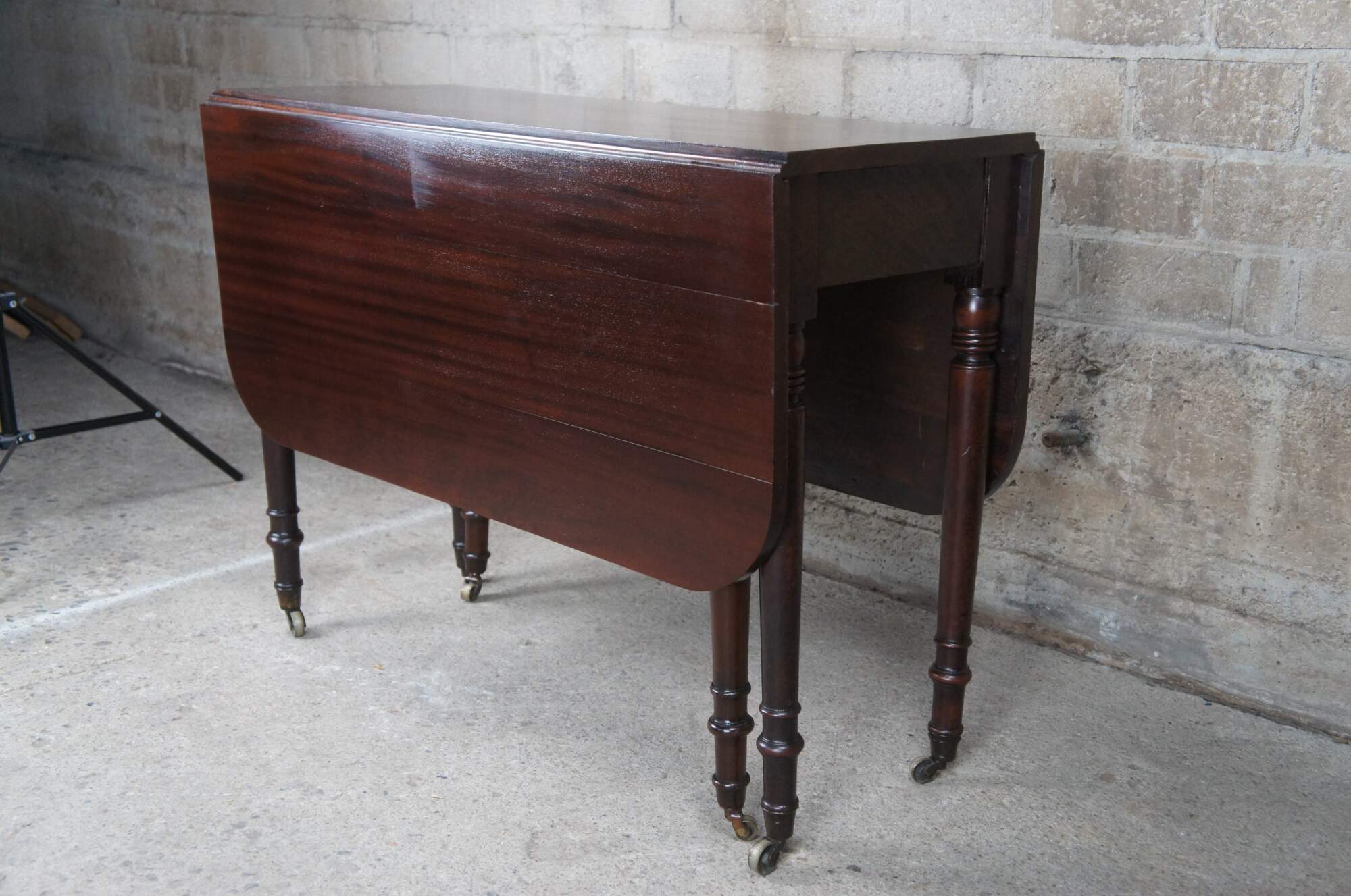 Charming early 19th century Sheraton gateleg table. Made from mahogany with two "D" form dropleaves. the table is supported by Turned, tapered and ribbed legs leading to metal casters. Great for use as an entryway console or breakfast table.
