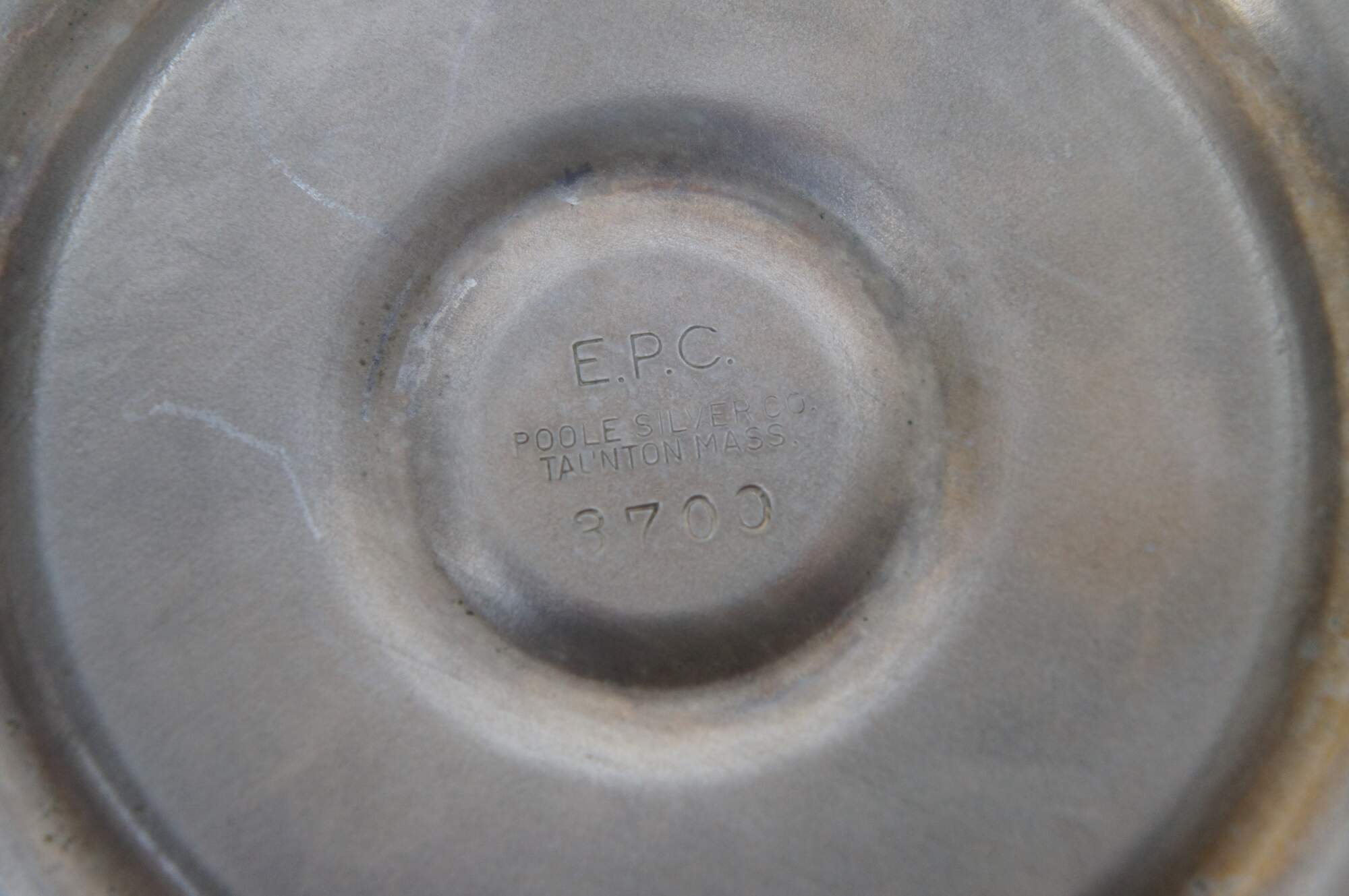 "Poole Silver Company was an American silver manufacturing company, active in Taunton, Massachusetts from 1892-1971. The Poole Silver Company was formed in 1892 by George Poole and Edward Roche in Taunton as Poole, Roche & Co., then established as a corporation on May 21, 1895, as an early manufacturer of silver products made with electroplating techniques. In 1900 it operated in a small two-room factory at 106 Whittenton Street, and later moved to 320 Whittenton Street. From 1946 the firm began to produce sterling silver flatware, holloware, and cutlery. In 1971 the company was bought by Towle Silversmiths. The intellectual property currently belongs to Lifetime Brands.