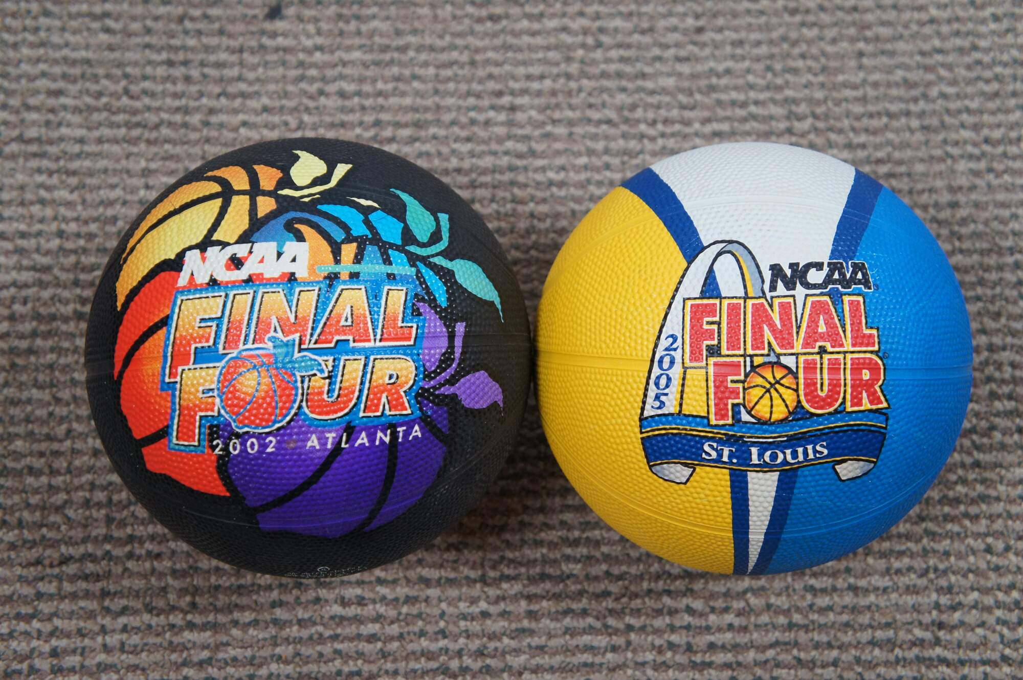 Large rare lot of 21 NCAA Final Four Tournament souvenir basketballs. Years represented: 1991 Indianapolis, 1993 New Orleans, 1995 Seattle, 1996 Meadowlands, 2001 Twin Cities (2 designs), 2002 Atlanta, 2003 (mens New Orleans and womens Atlanta), 2004 San Antonio (2 designs), 2005 St Louis, 2006 Indianapolis, 2007 (mens Atlanta and womens Cleveland), 2008 San Antonio, 2009 Detroit, 2014 North Texas, 2016 Houston, 2019 Minneapolis. One basketball was not pictured, its a 2015 Indianapolis Final Four mini ball.