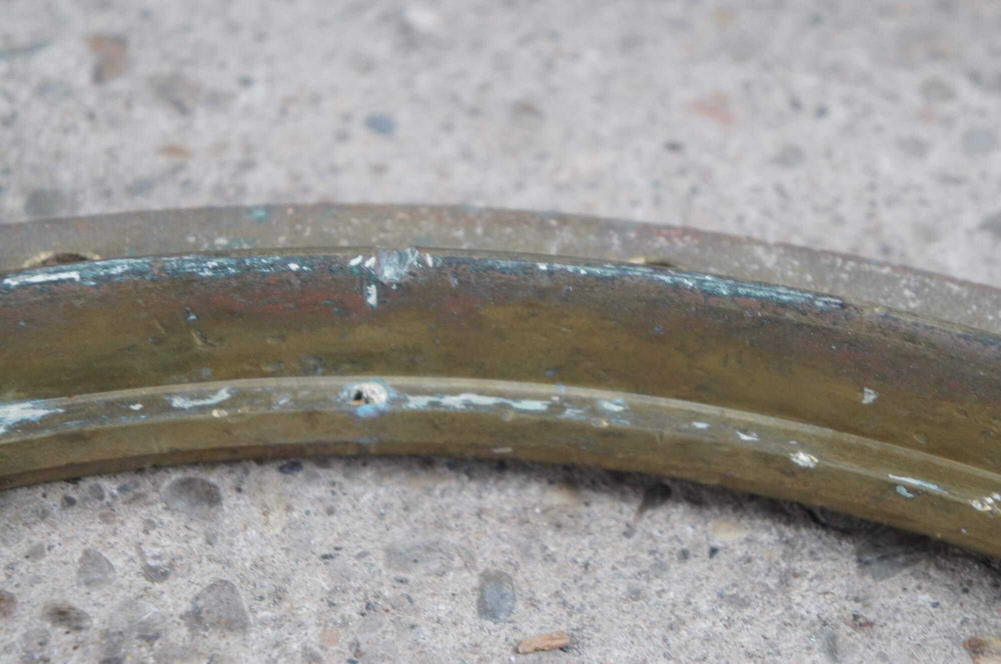 Extremely unique original large antique heavy solid bronze maritime Ship's Porthole or Hatch. The majority are rather simple and made from aluminum or nickel plated rather than heavy bronze like this unique specimen. The vast majority of portholes on the market today are modern or reproduction's. This aged beauty is complete with original green glass and 3 dogs. High quality construction and hefty weight. Includes Sekurit Weather Glass.