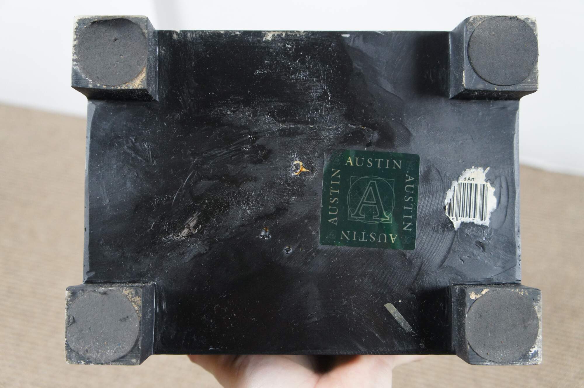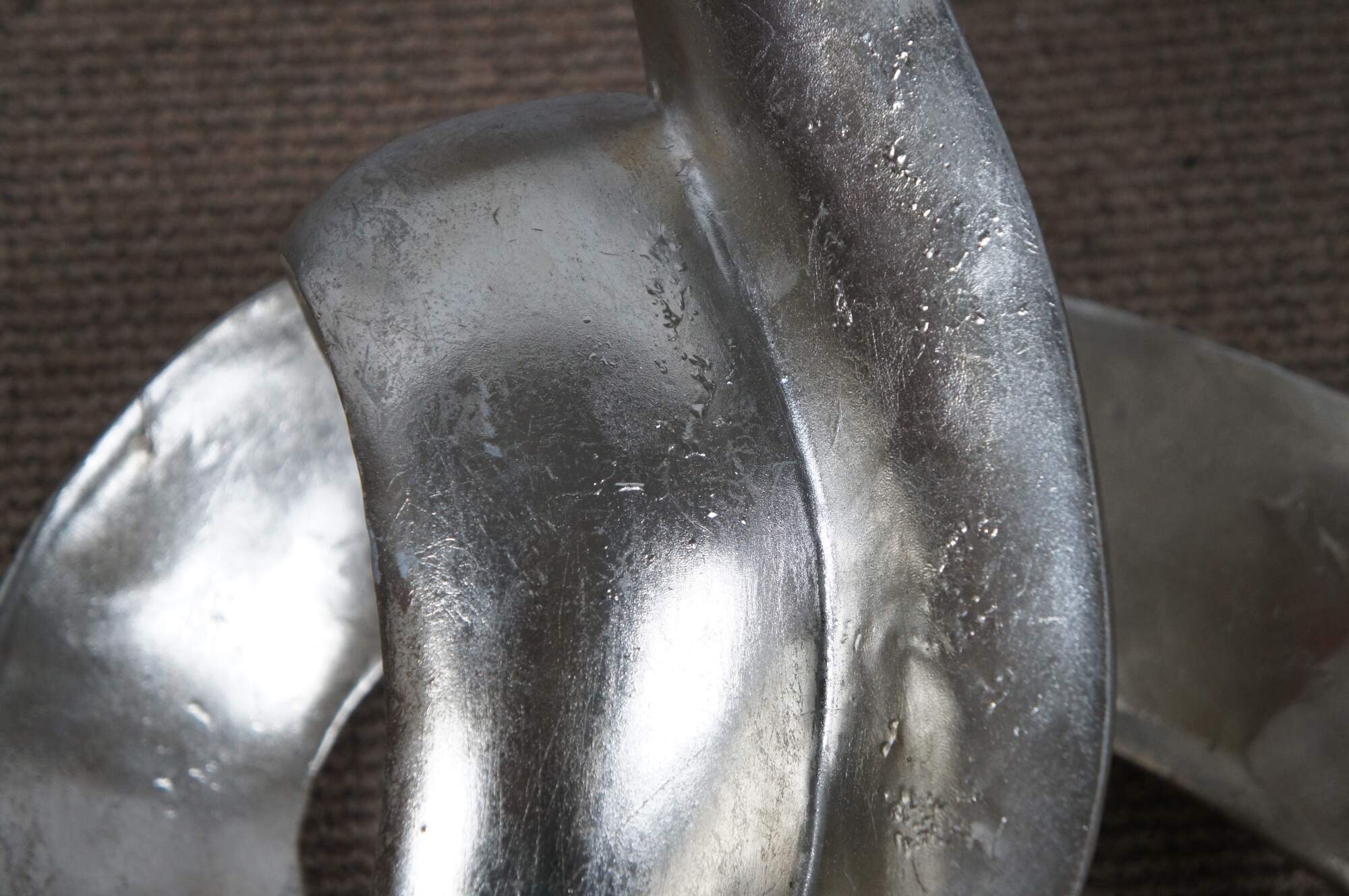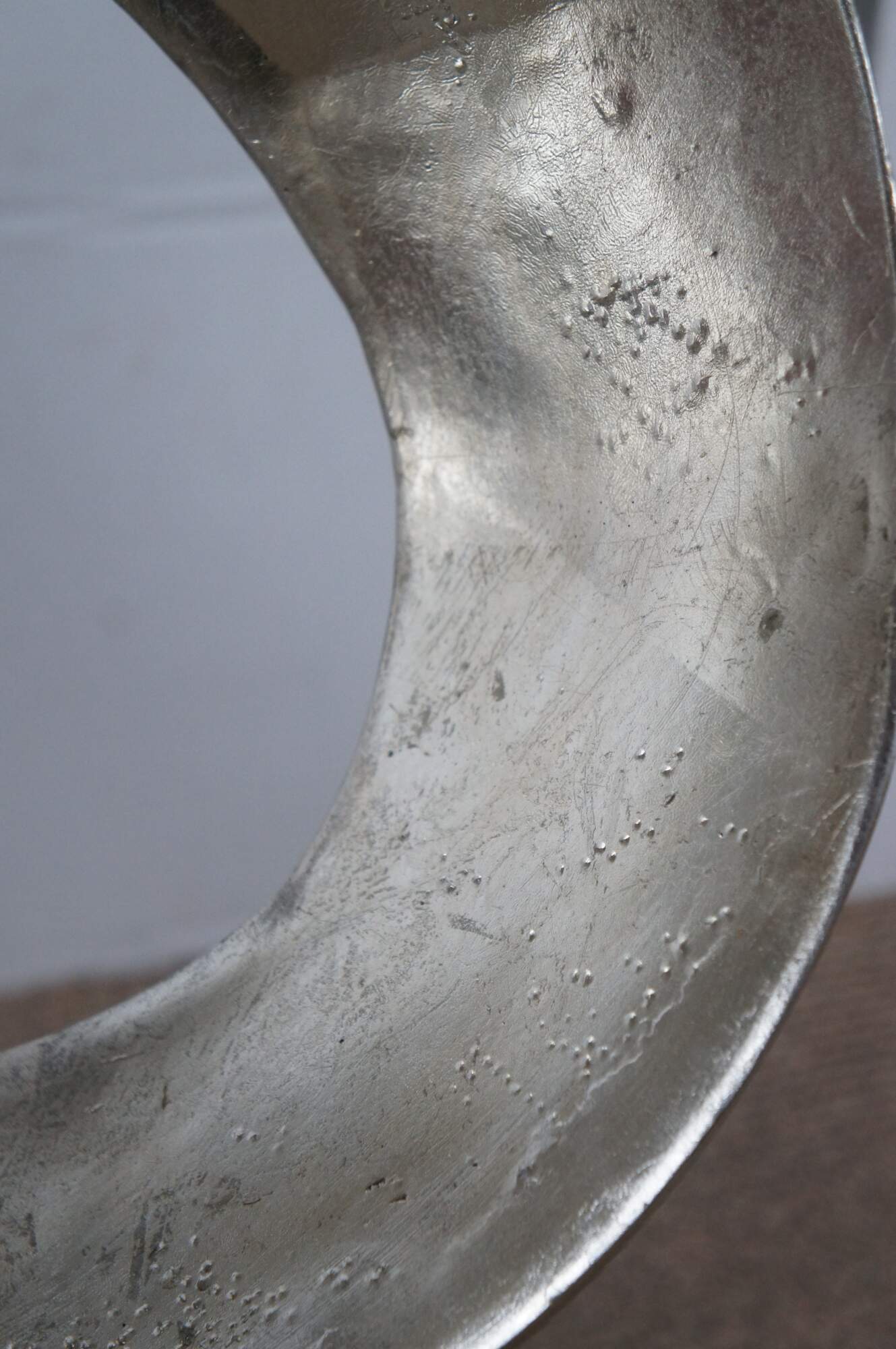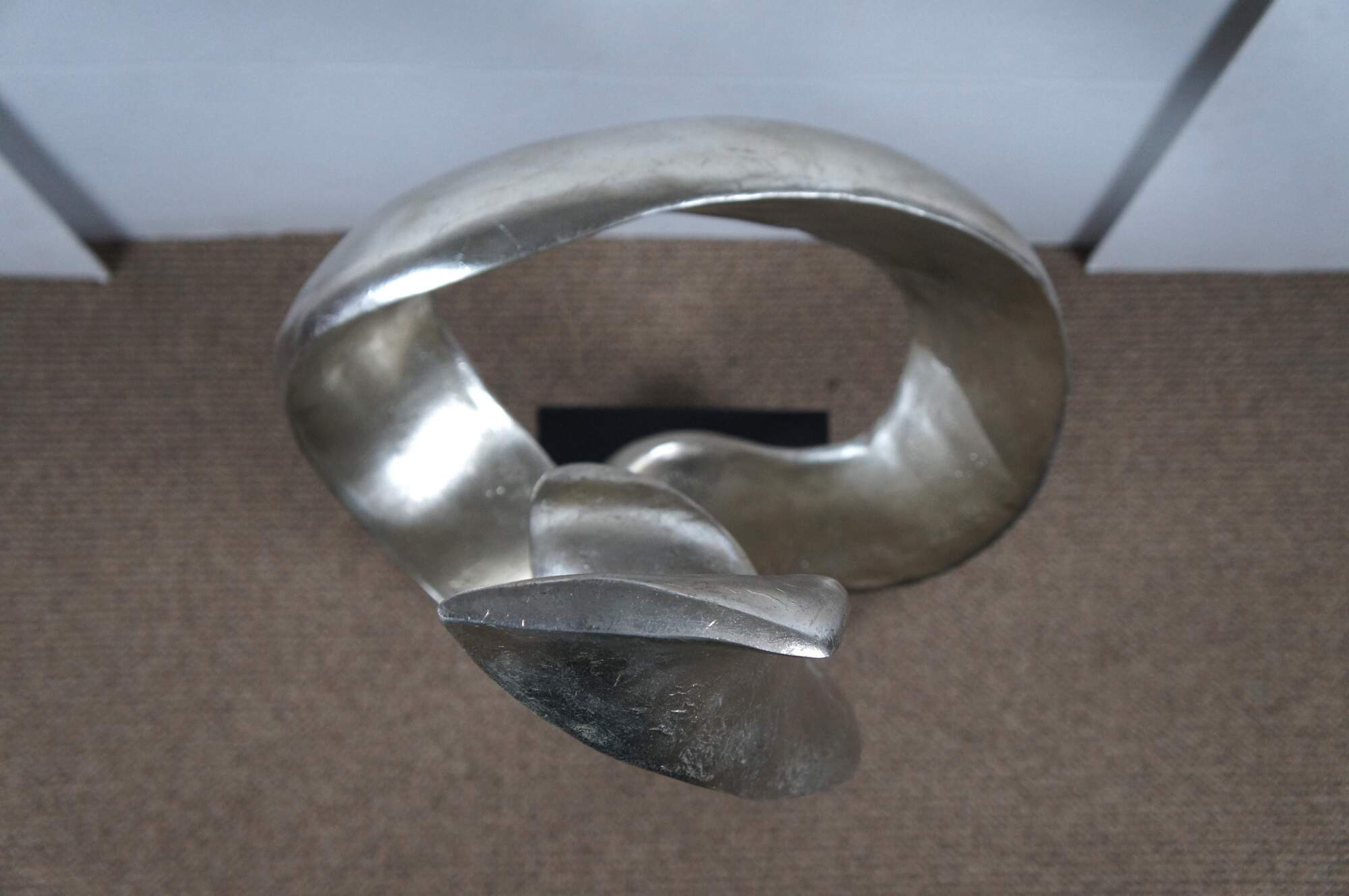 Late 20th century composite sculpture by Austin Productions featuring a rectangular black base supporting a silver gilt swirling abstract shape.