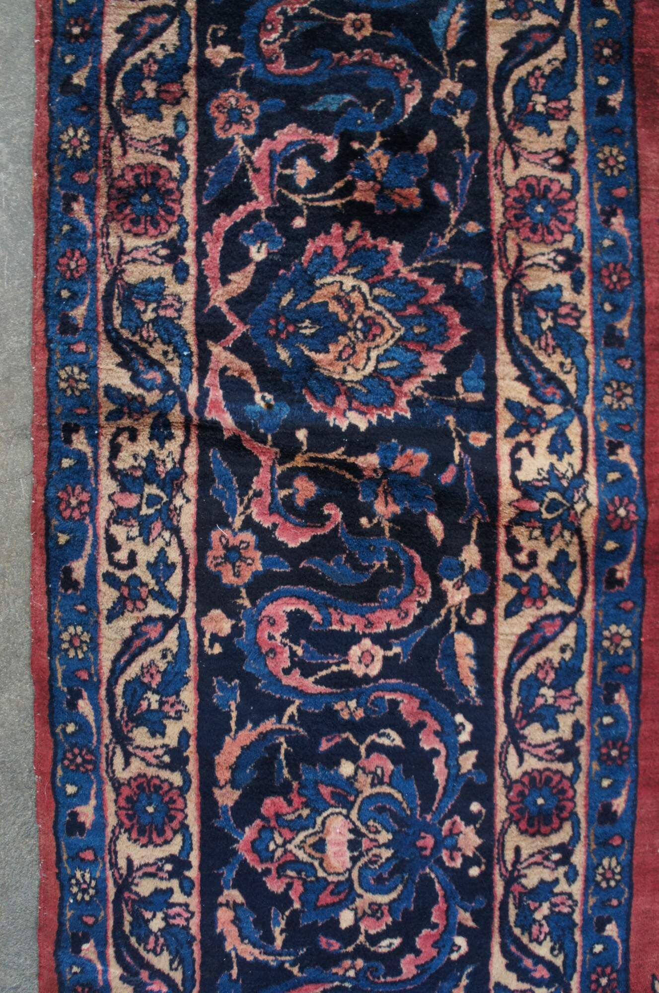 A very large and impressive antique 1930s Persian Mashad Palace rug or carpet. Made of cotton and wool featuring a thick pile with floral all over motif, dark red field and heavy blue accents. 256 knots per square inch. Blues, reds, browns, pinks, peach.