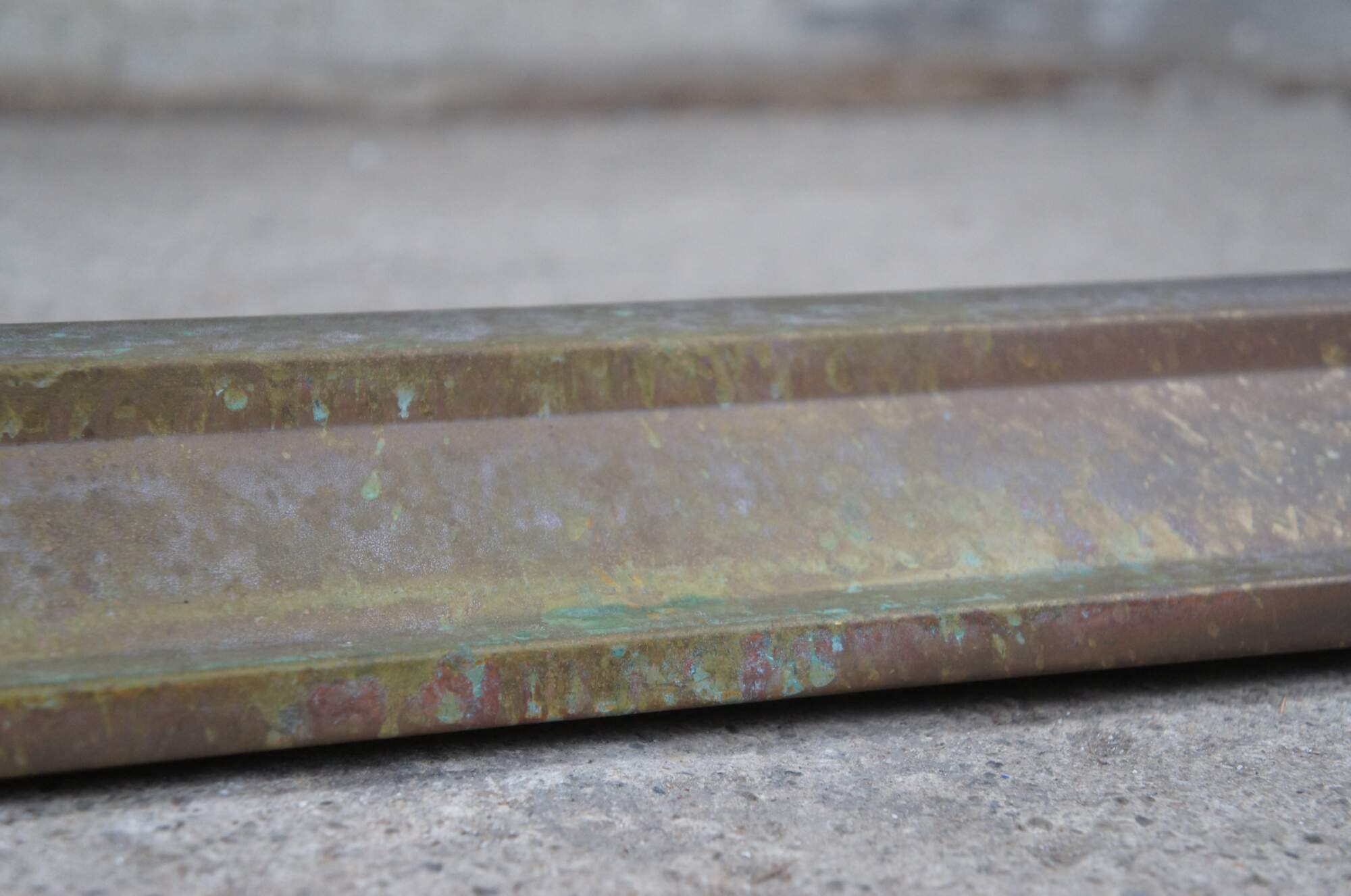 Vintage Decorative Crafts Inc brass fireplace fender. Styled in Victorian manner with ornated S scroll supports with rope twist rods and Fleur De Lis accents.