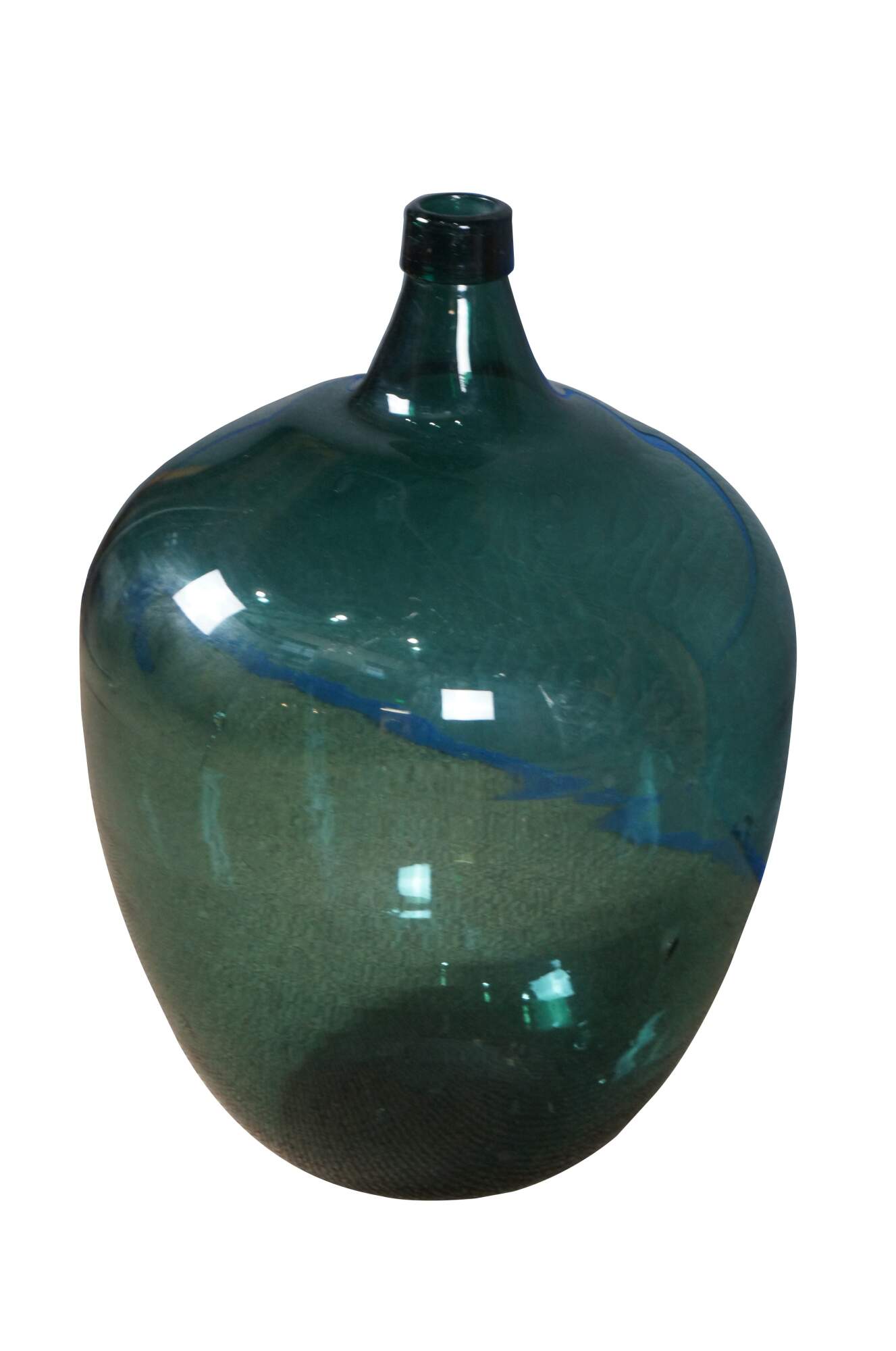 Very large antique hand blown green glass demijohn / bonbonne wine bottle or jug.