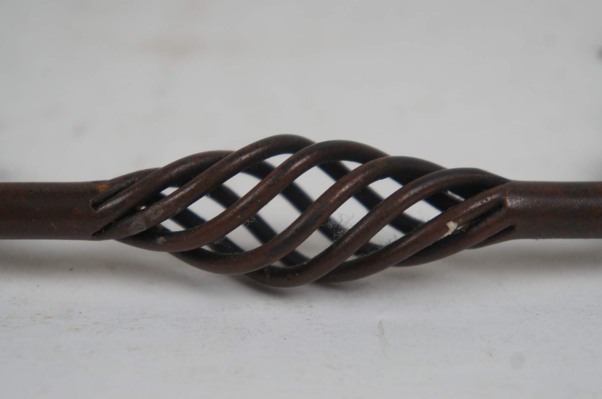 8 Available - Hole Centers 5" - Twisted metal birdcage / swiveling bail style drawer pull, finished in deep brown / dark bronze.