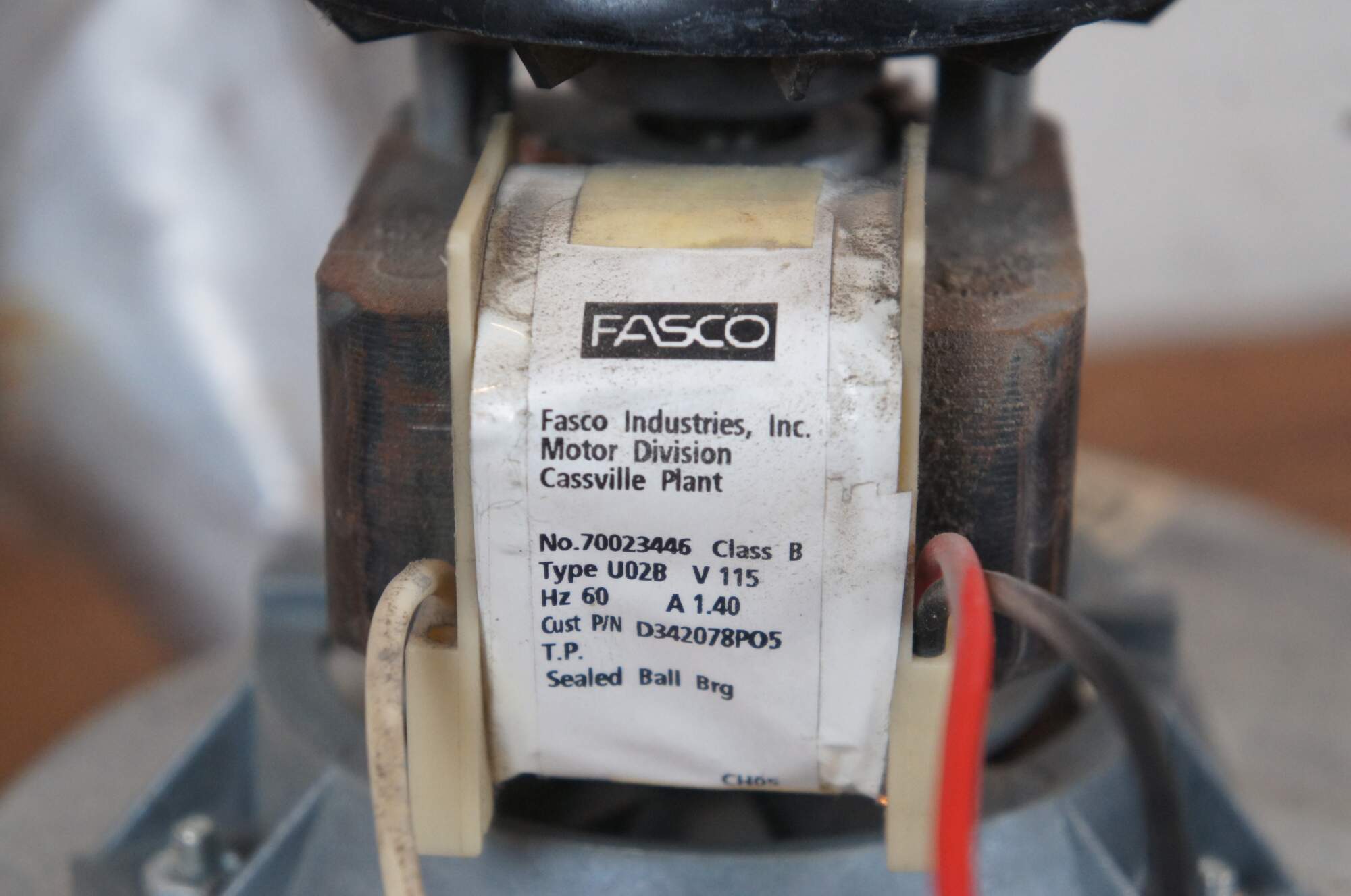 Fasco Industries, Inc No. 70023446 Class B, Type U02B furnace draft inducer / blower / exhaust motor. Fits Trane furnaces.