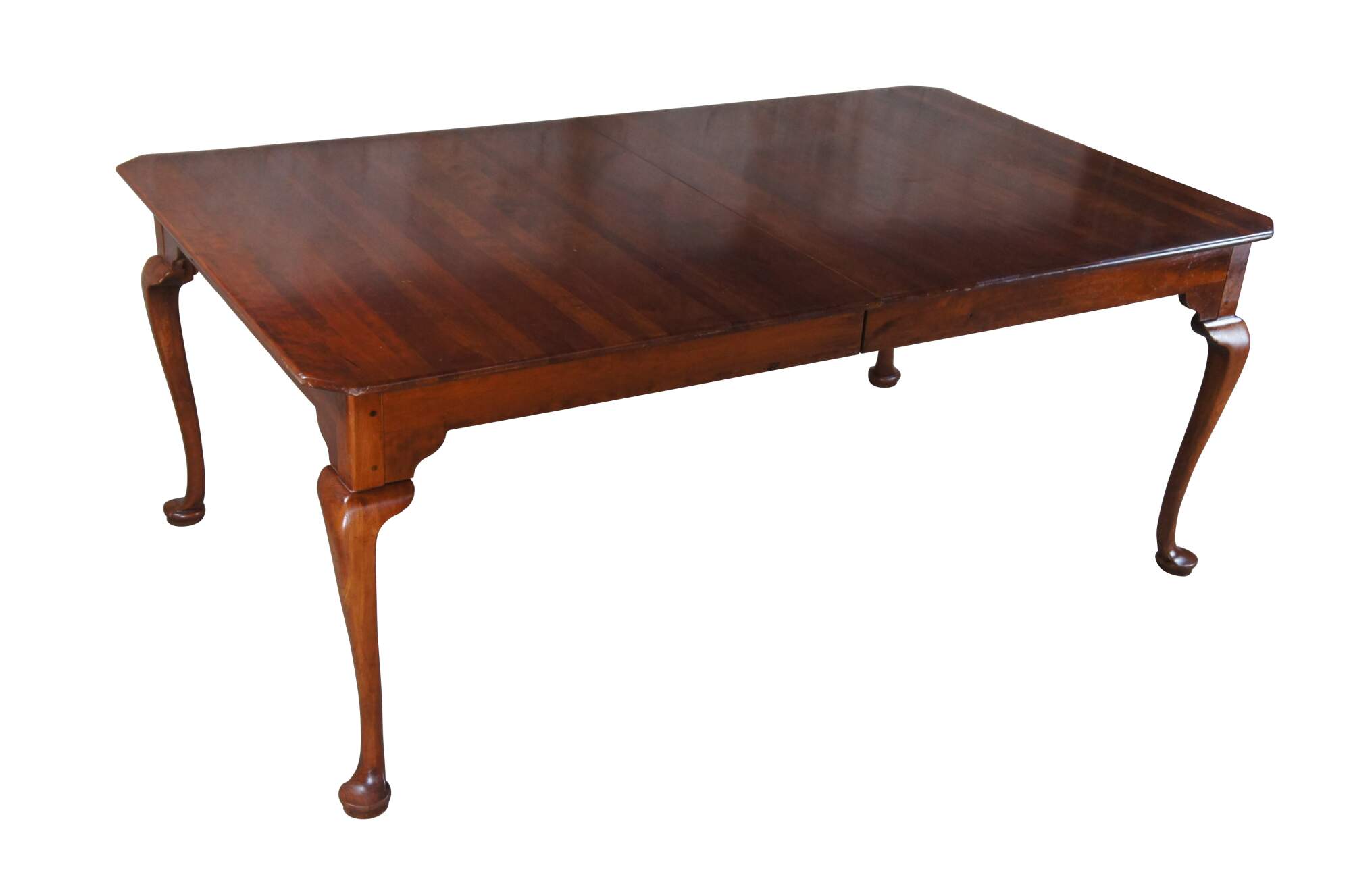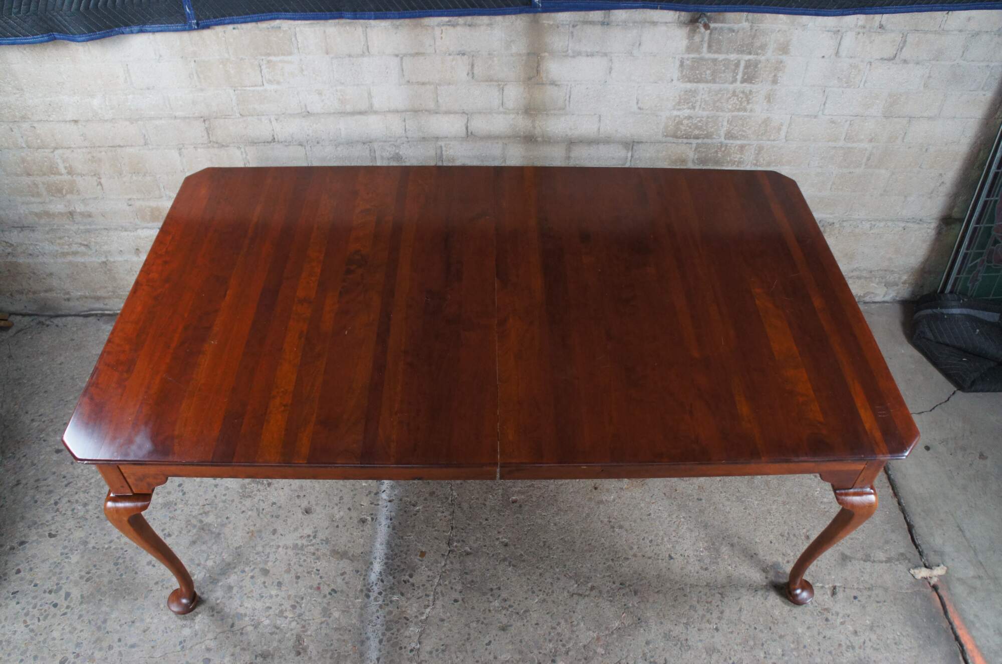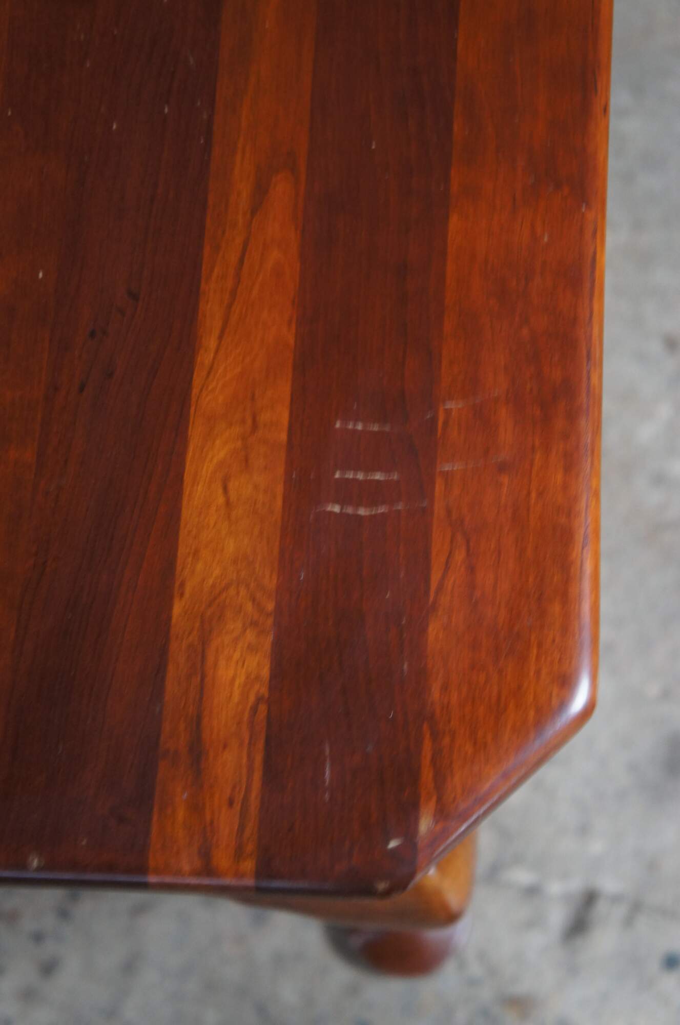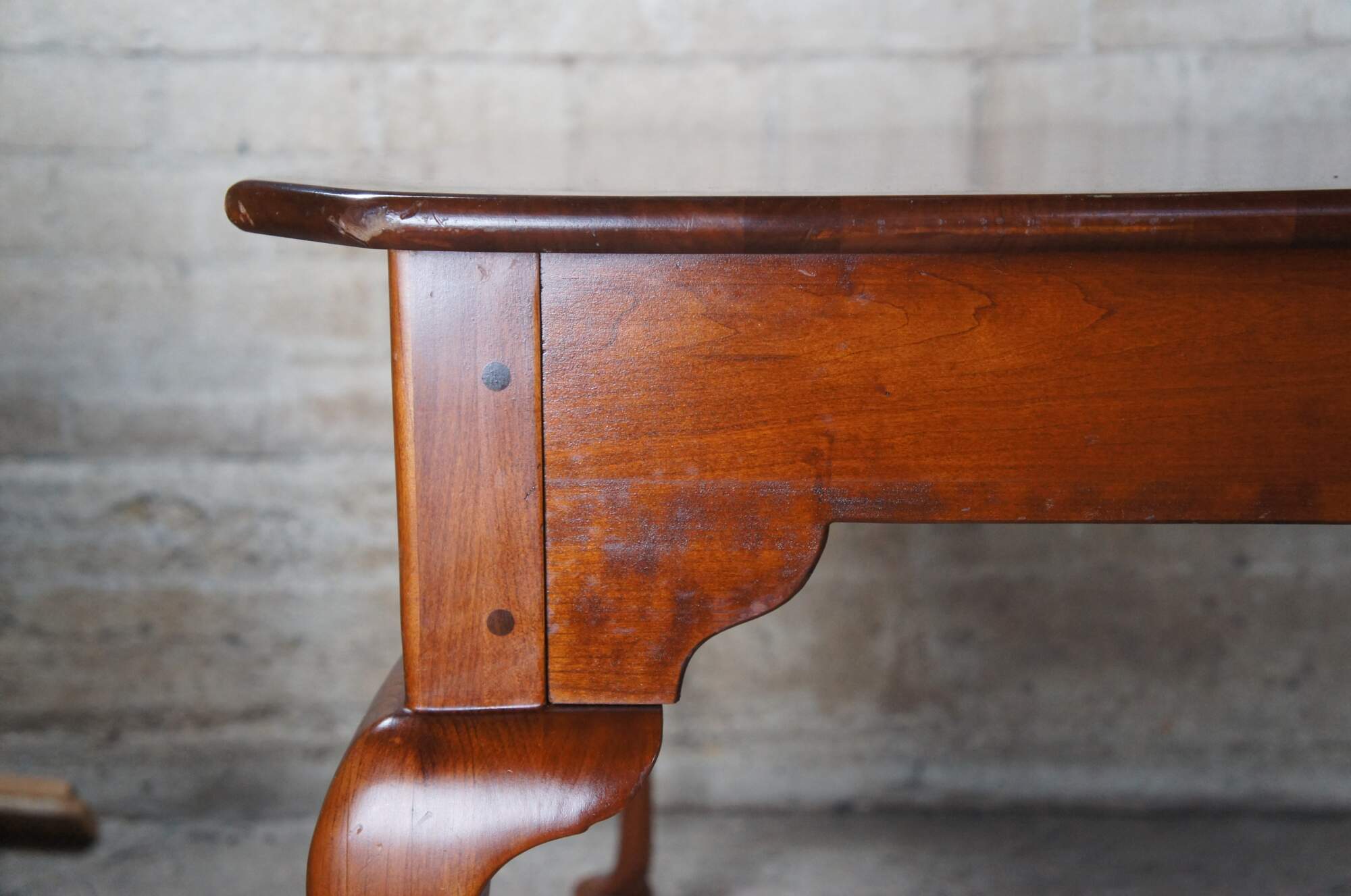 Vintage Lexington Furniture Bob Timberlake dining table. Made of solid cherry featuring Queen Anne styling with rectangular form 2 drawers and custom glass top. 833-879.