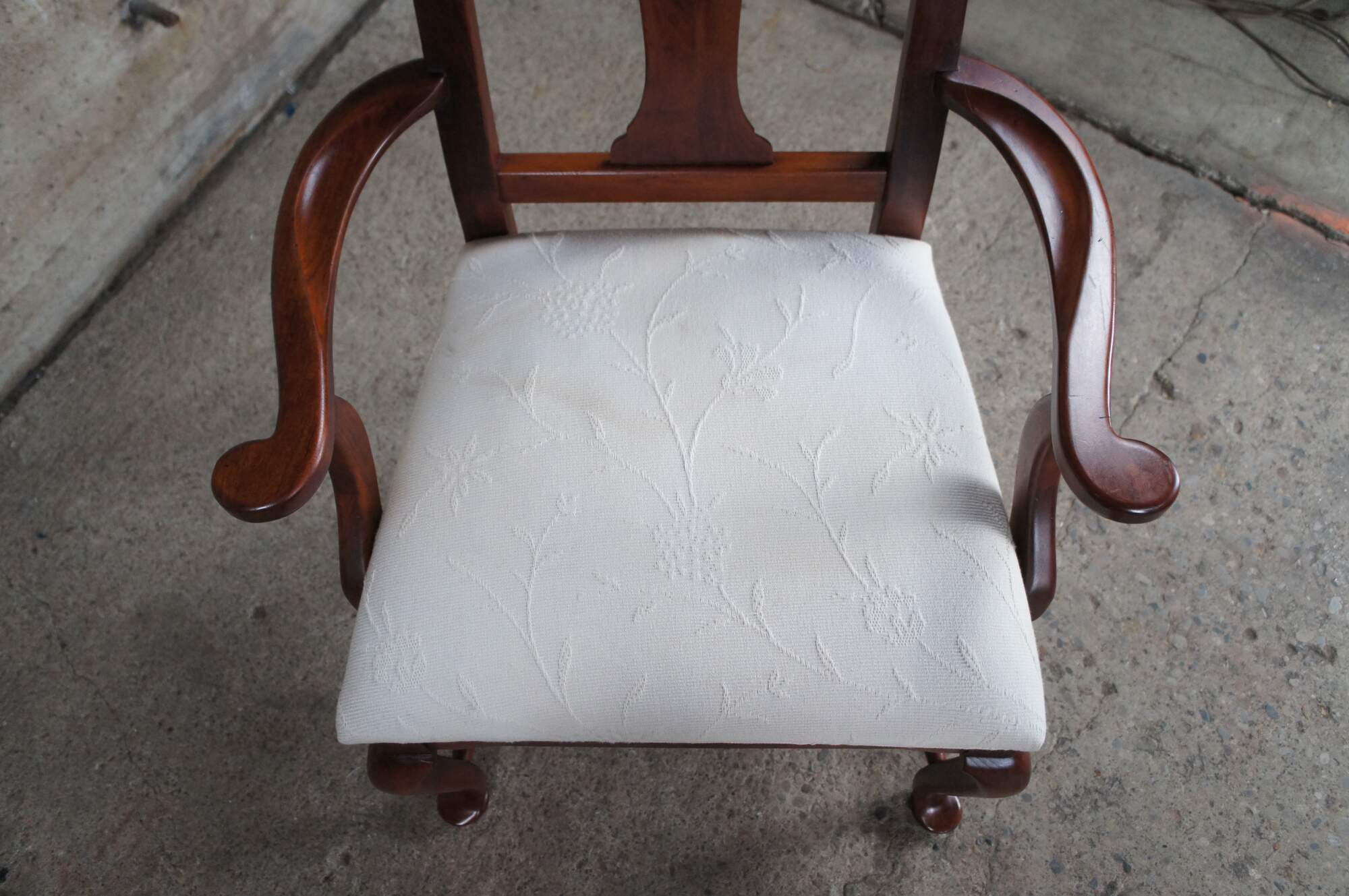 Vintage Lexington Furniture Bob Timberlake dining arm chairs. Made of solid cherry featuring Queen Anne styling with slat back and floral cushions . All six are armchairs, 833-891