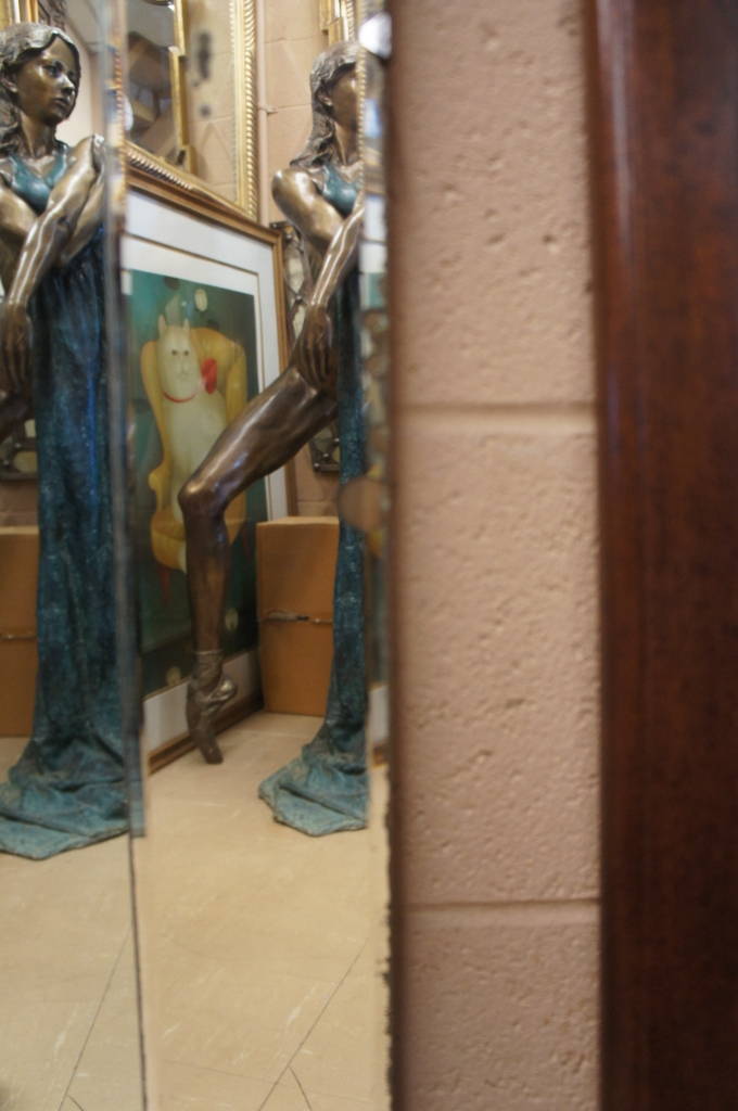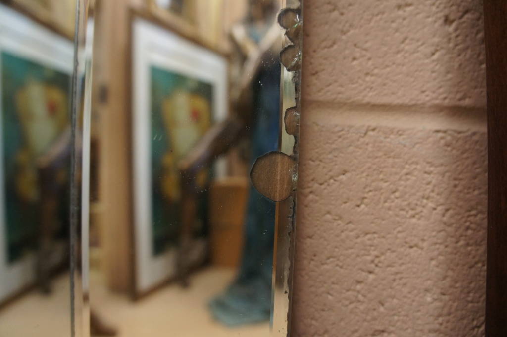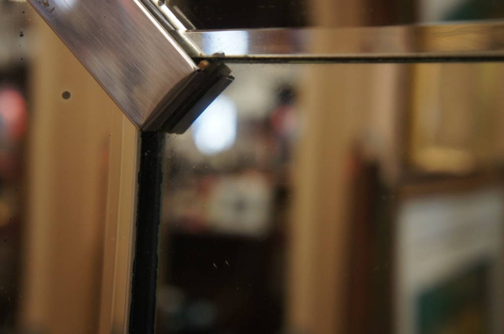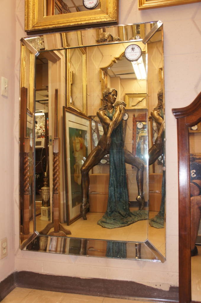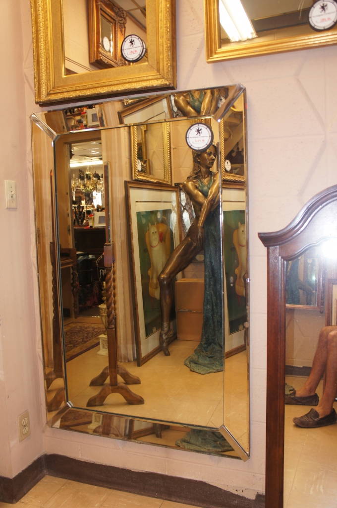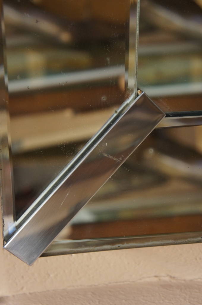 Beautiful Large Beveled Mirror W/ Chrome Accents And Unique Aged Look Very Heavy