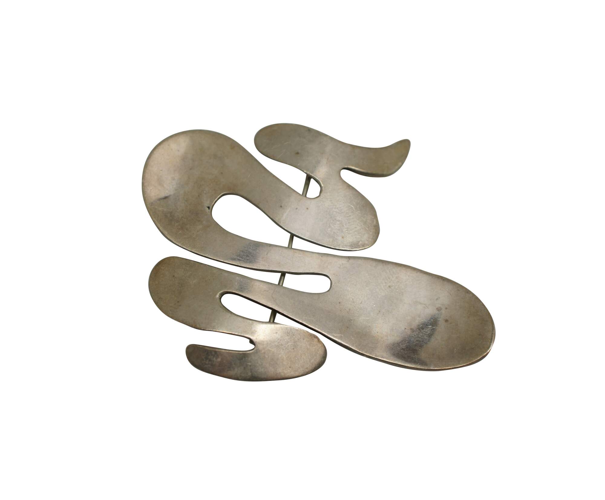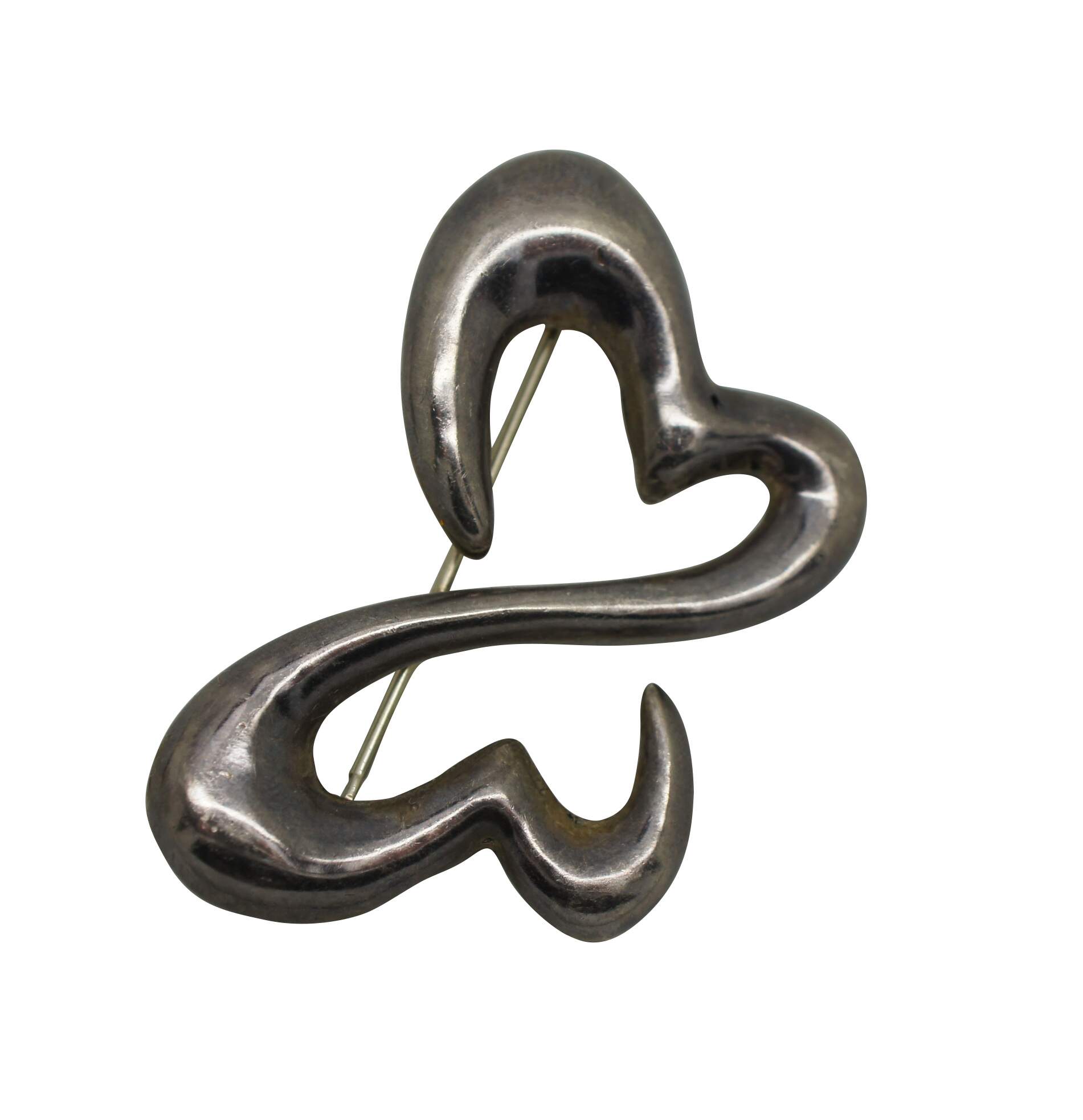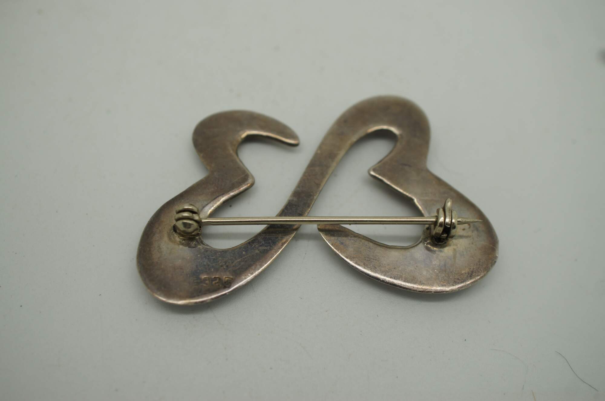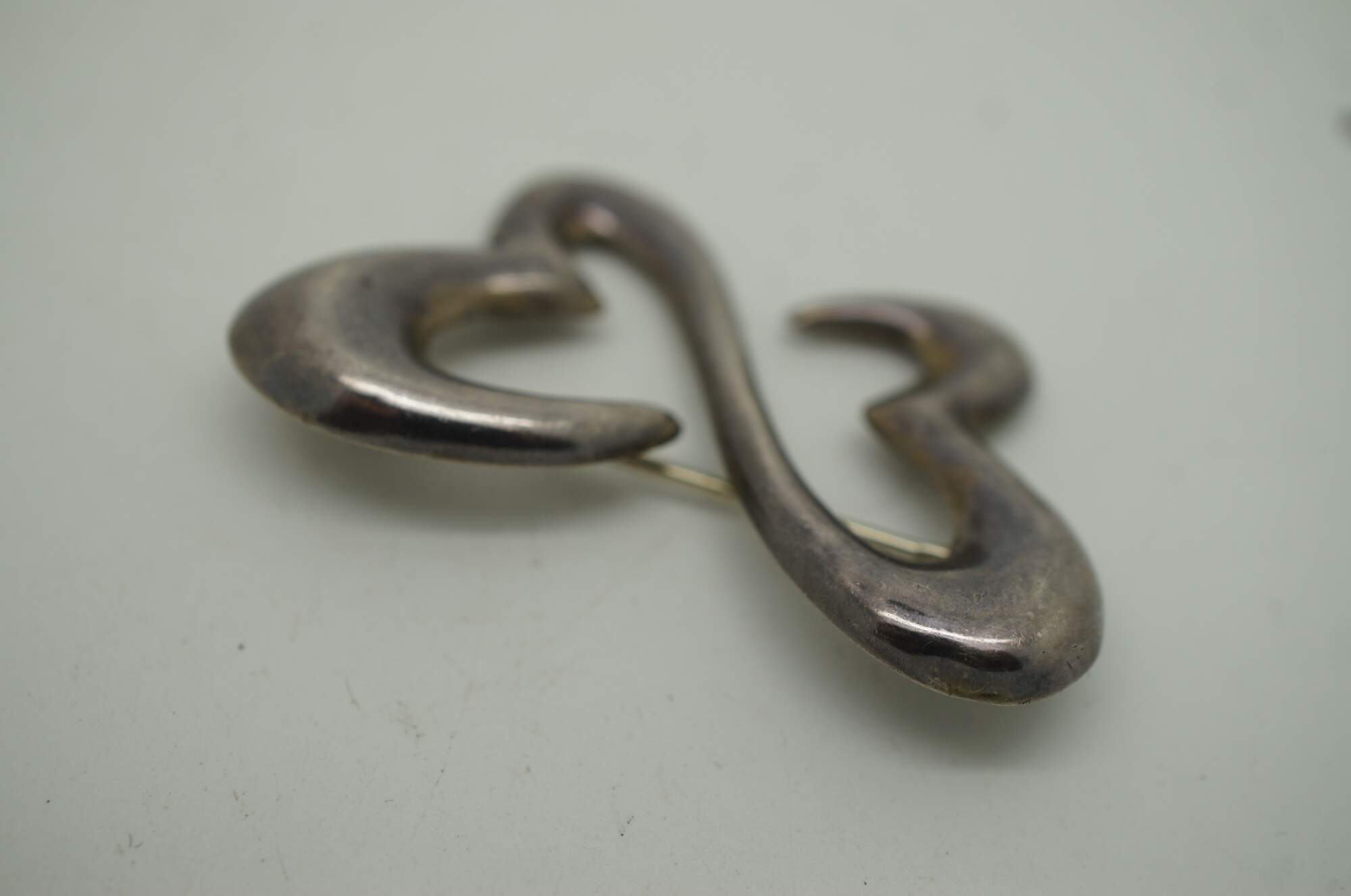 Pair of vintage Mexican 925 sterling silver pins / brooches - one flat abstract shape and one interlocking open ended hearts.