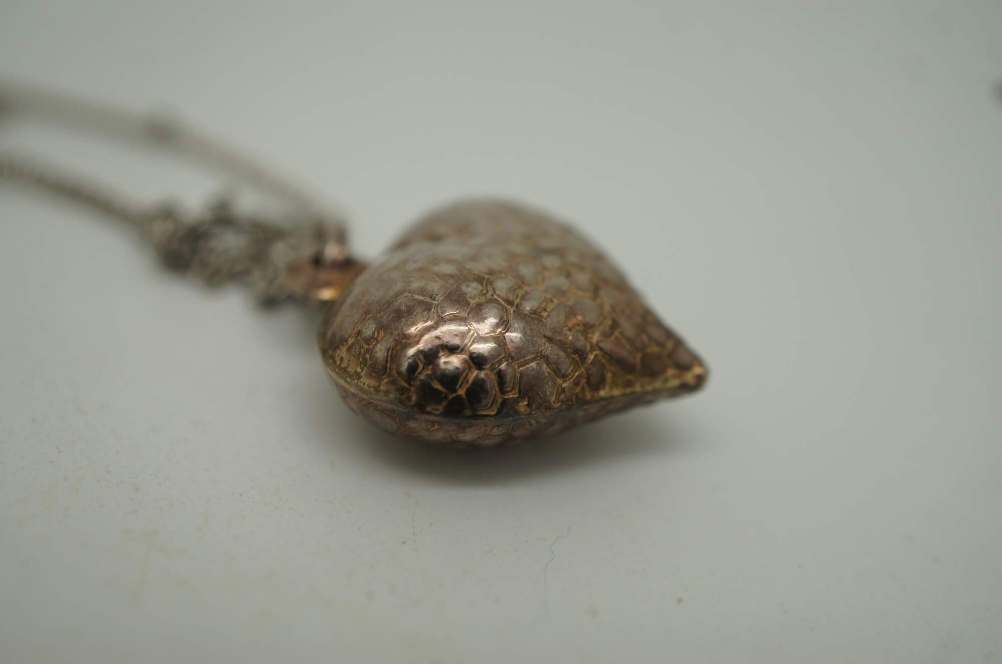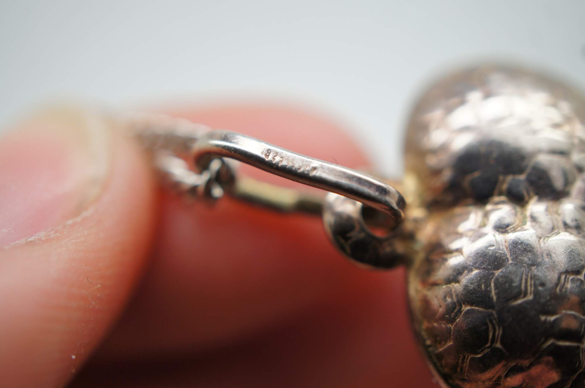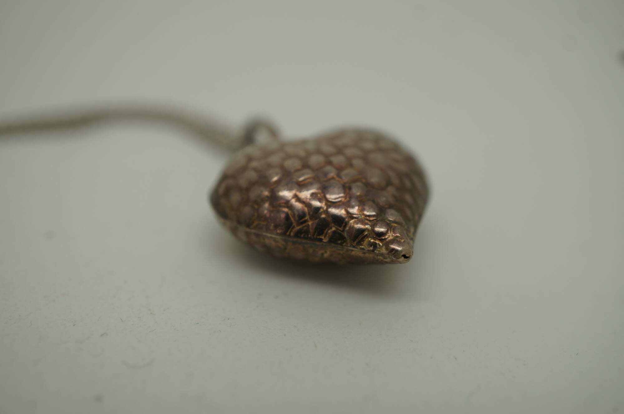 Vintage 925 sterling silver pillow / puffy heart peandant with a pebbled stone texture surface. Curb chain with spring ring clasp.