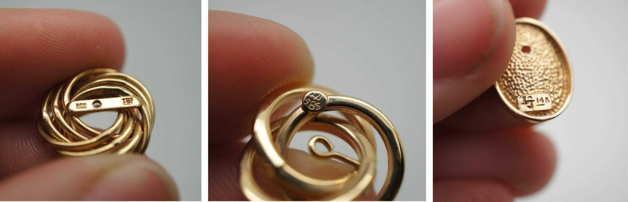 Lot of ten assorted 14K yellow gold single earrings and baubles / charms / pins / earrings.