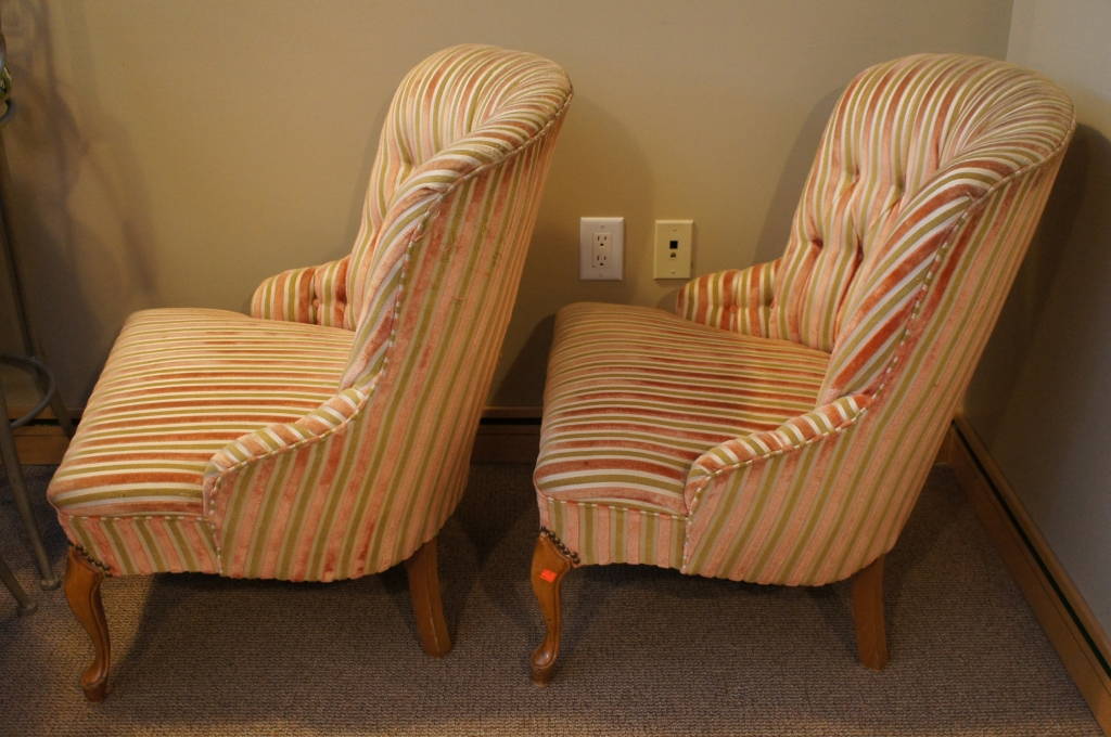 Vintage Candy Cane Striped Upholstered & Tufted Chairs