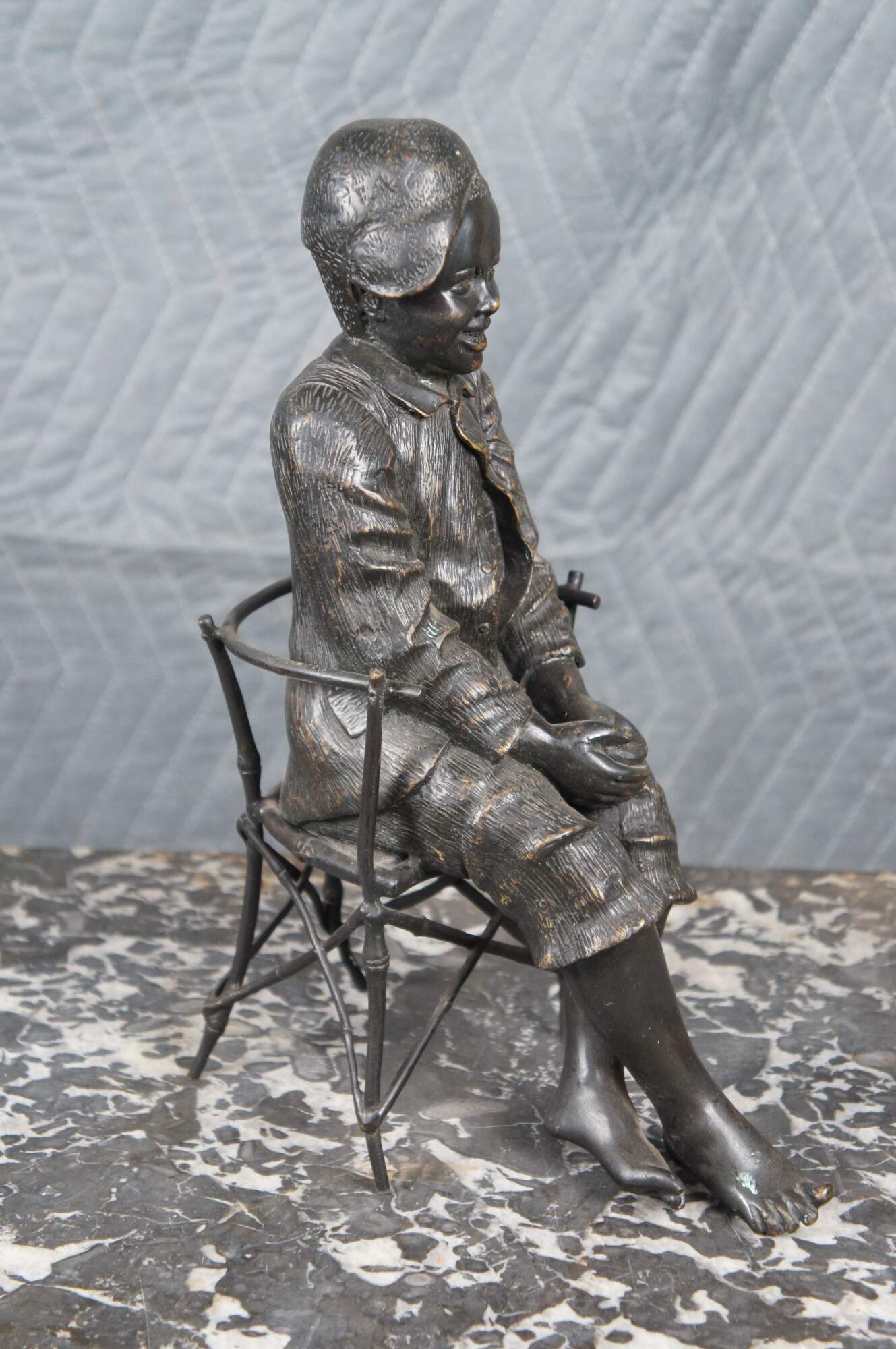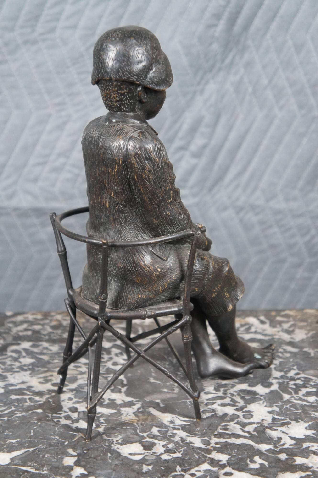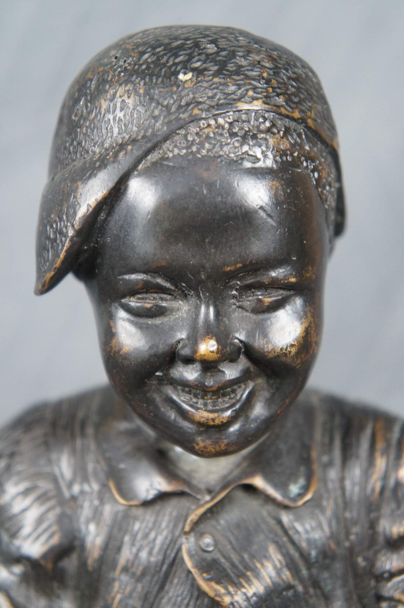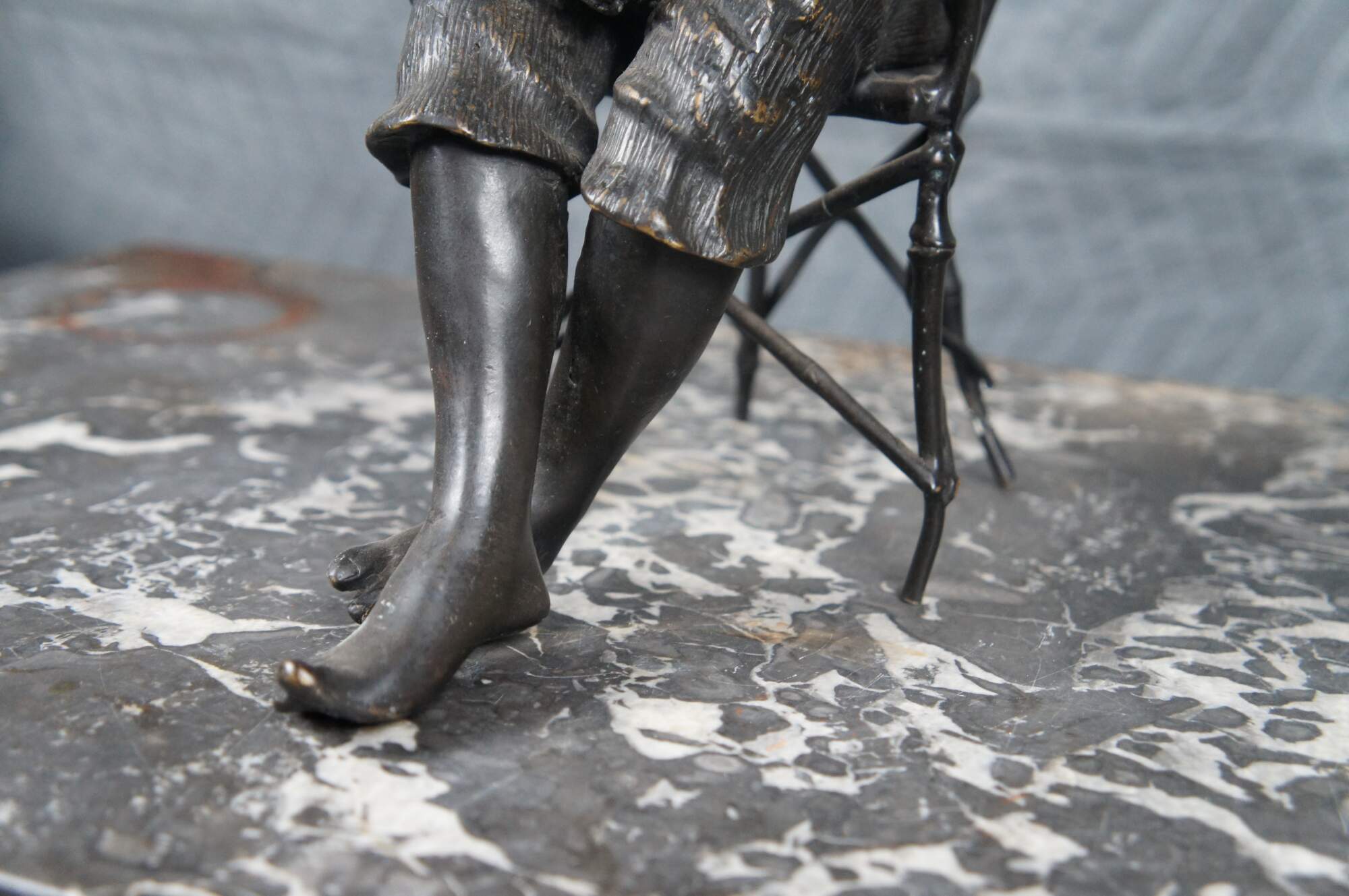 The Boy Fishing Bronze Statue is an antique sculpture by Austrian sculptor and potter Friedrich Goldscheider. It depicts a young boy fishing in a genre scene. The original sculpture is made of terracotta and dates back to around 1893. It was crafted in Paris, France's Goldscheider manufactory.