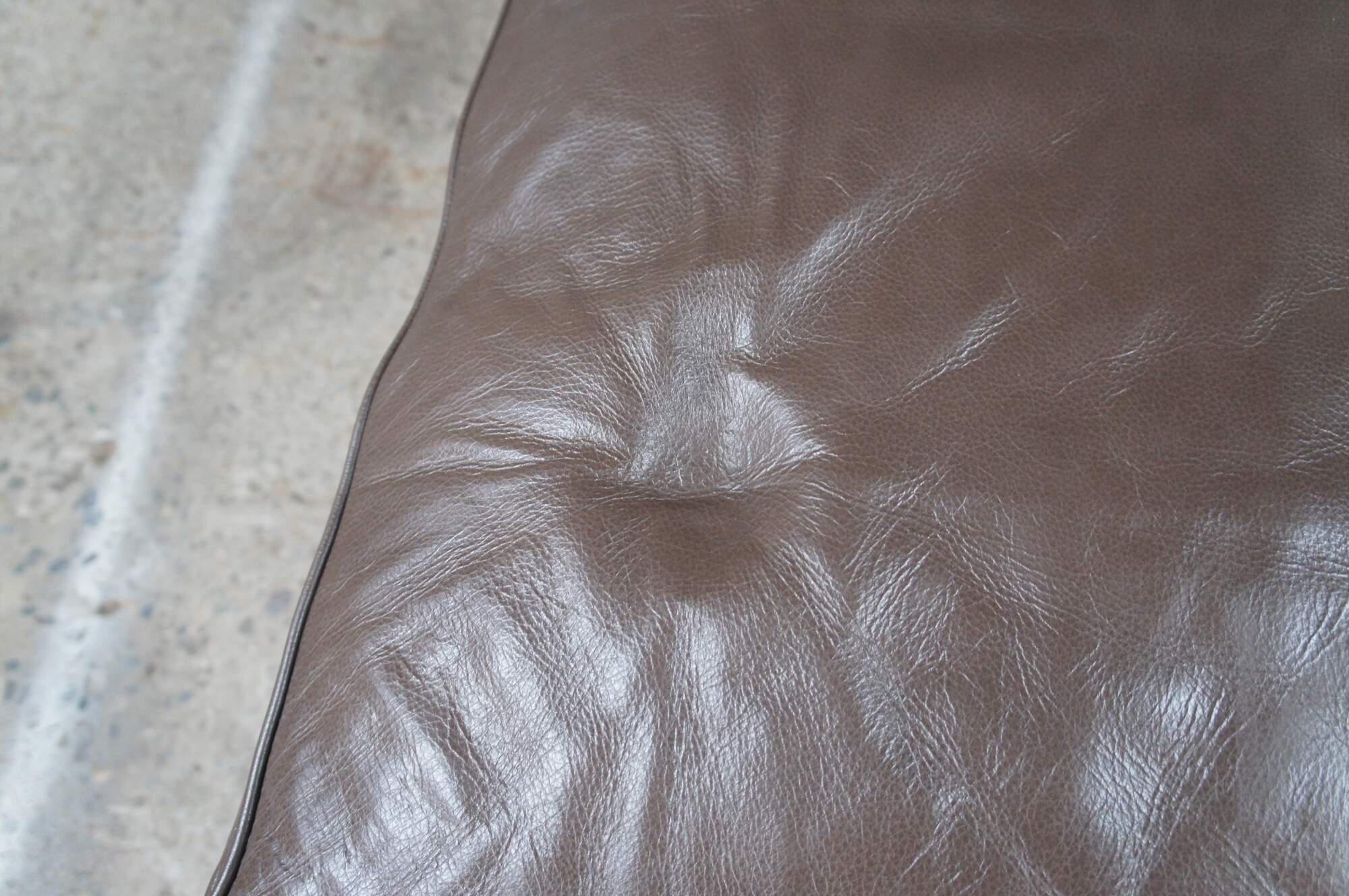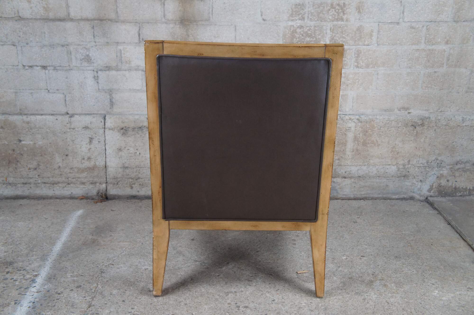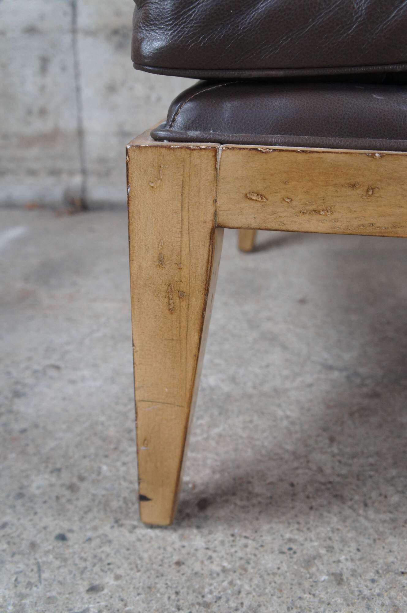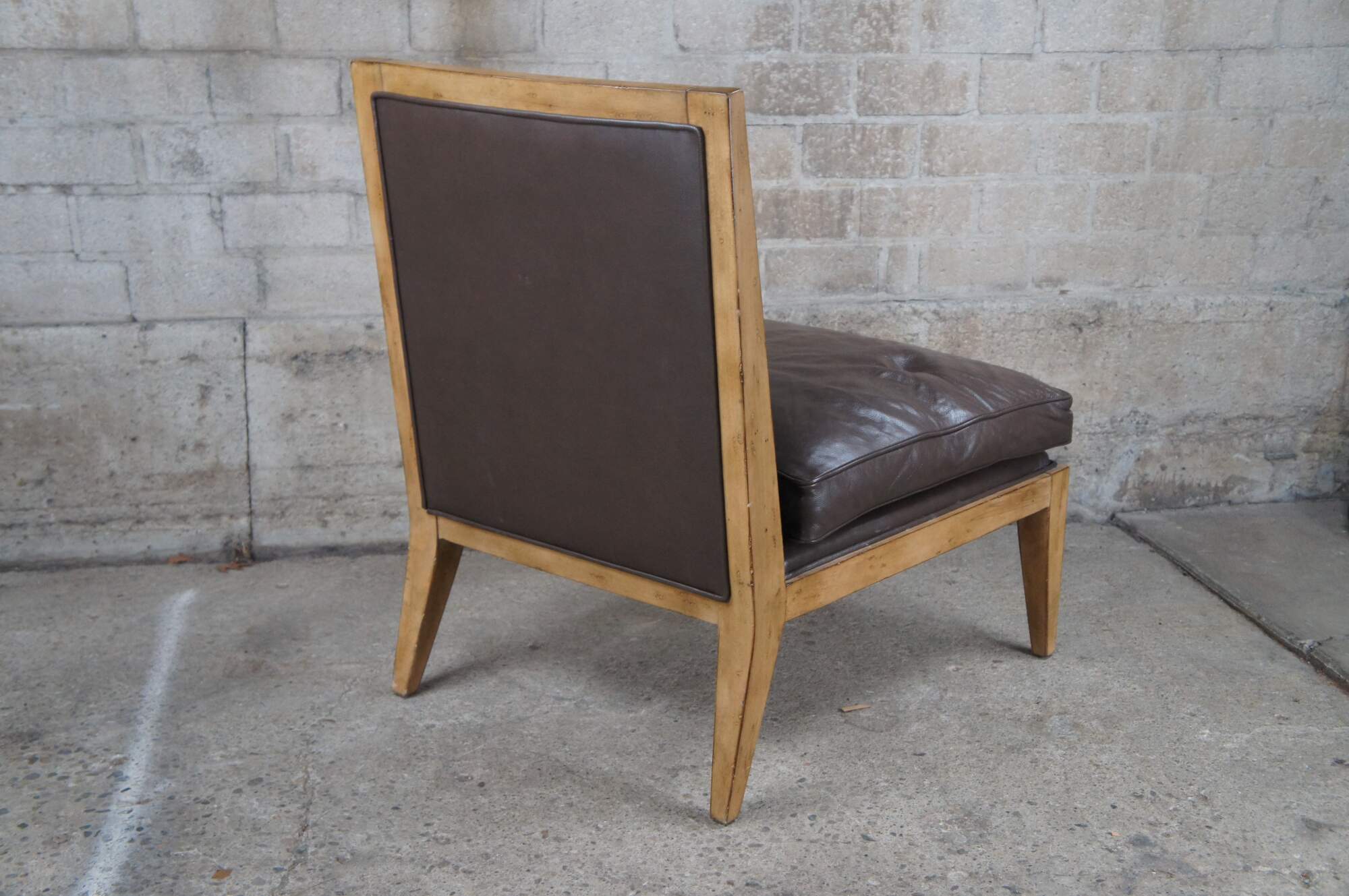 A beautiful armless slipper chair by Swaim Upholstery. Originally made for Marc-Miachaels Interior Design. Features brown leather upholsterly and an oak frame. The chair is supported by square tapered legs. A seemless modern design that will make a splash in any setting.