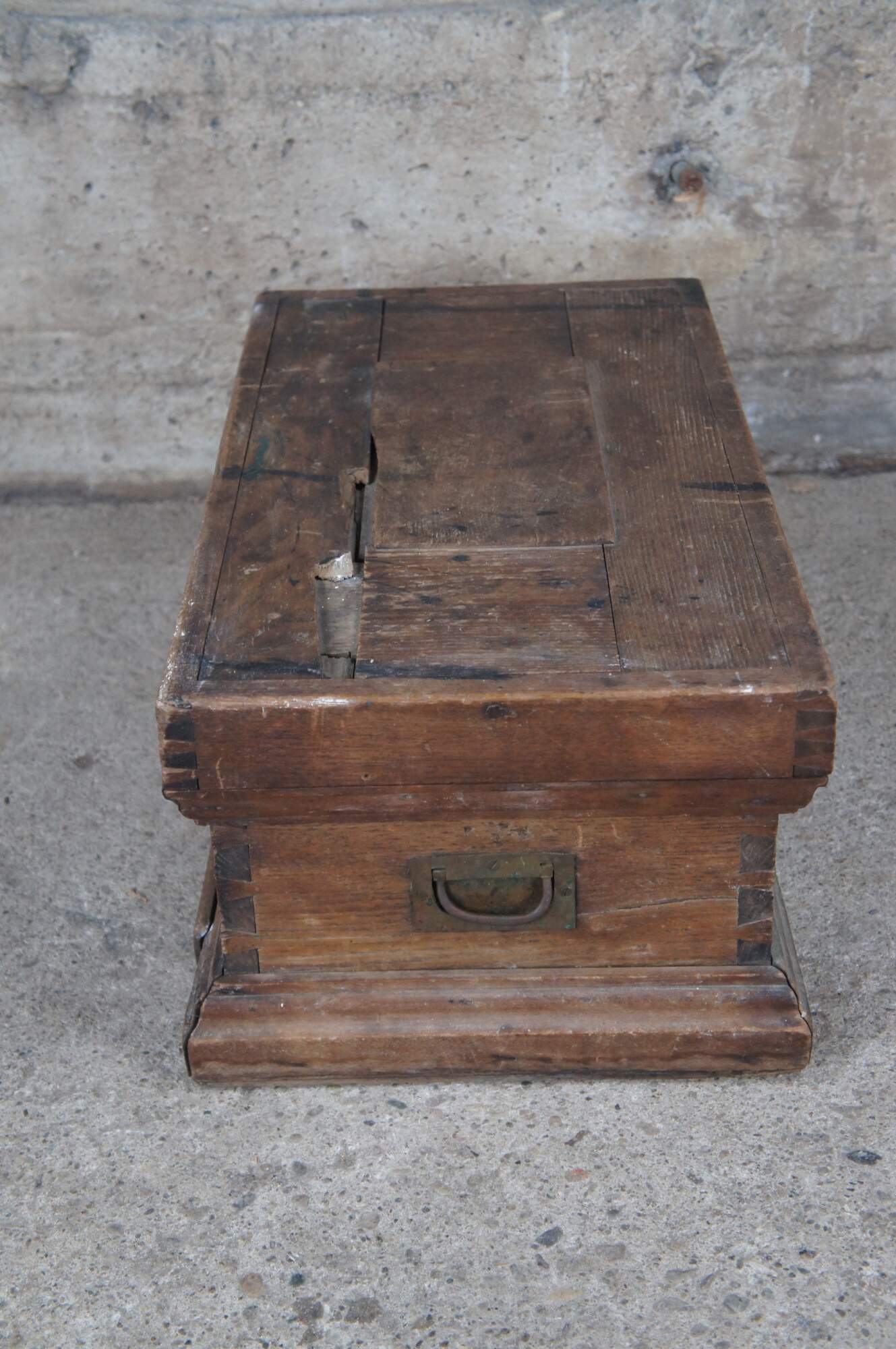 Primitive Antique 19th C. Oak Carpenters Tool Chest Trunk Dovetailed Steamer 26"