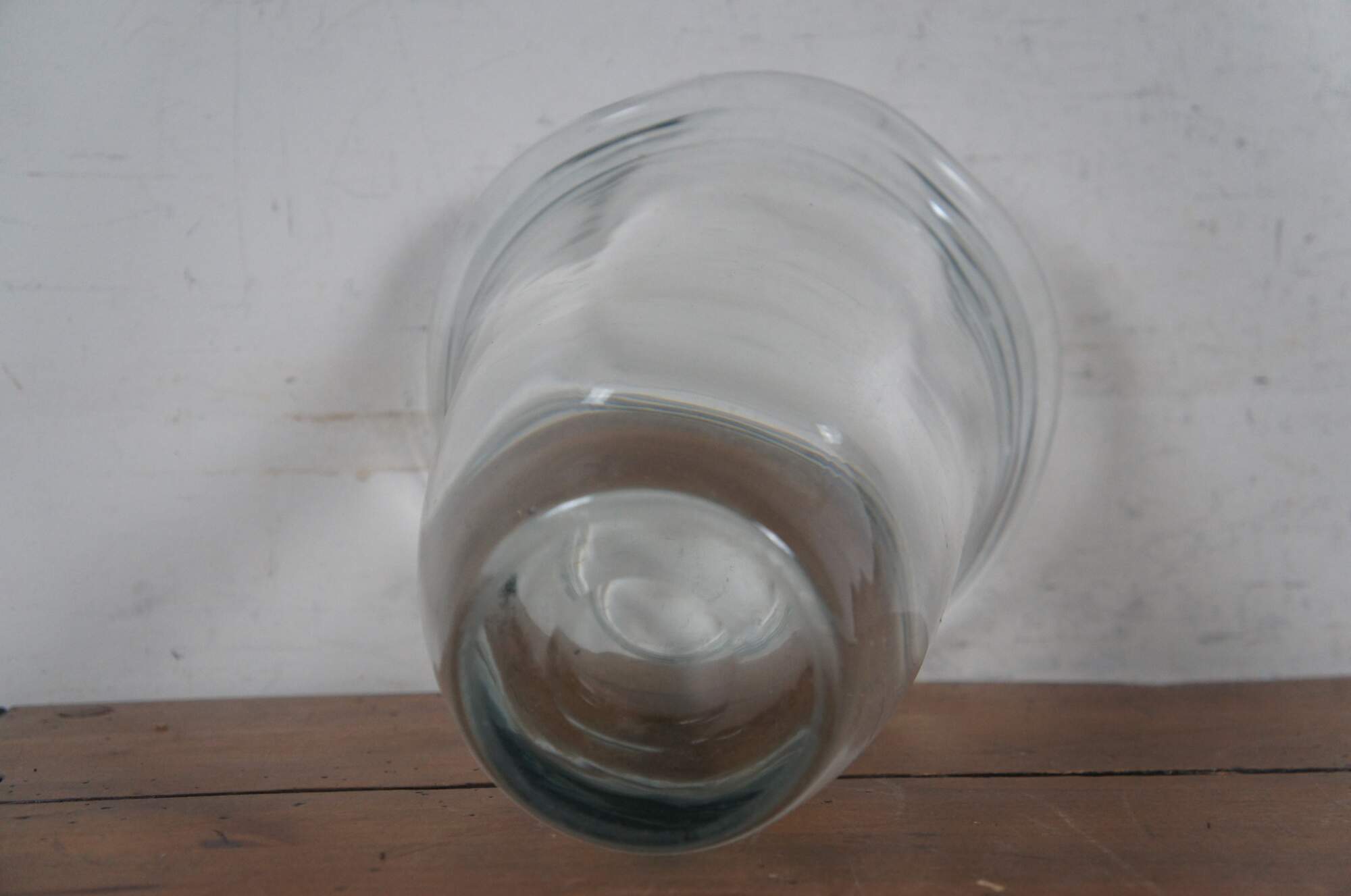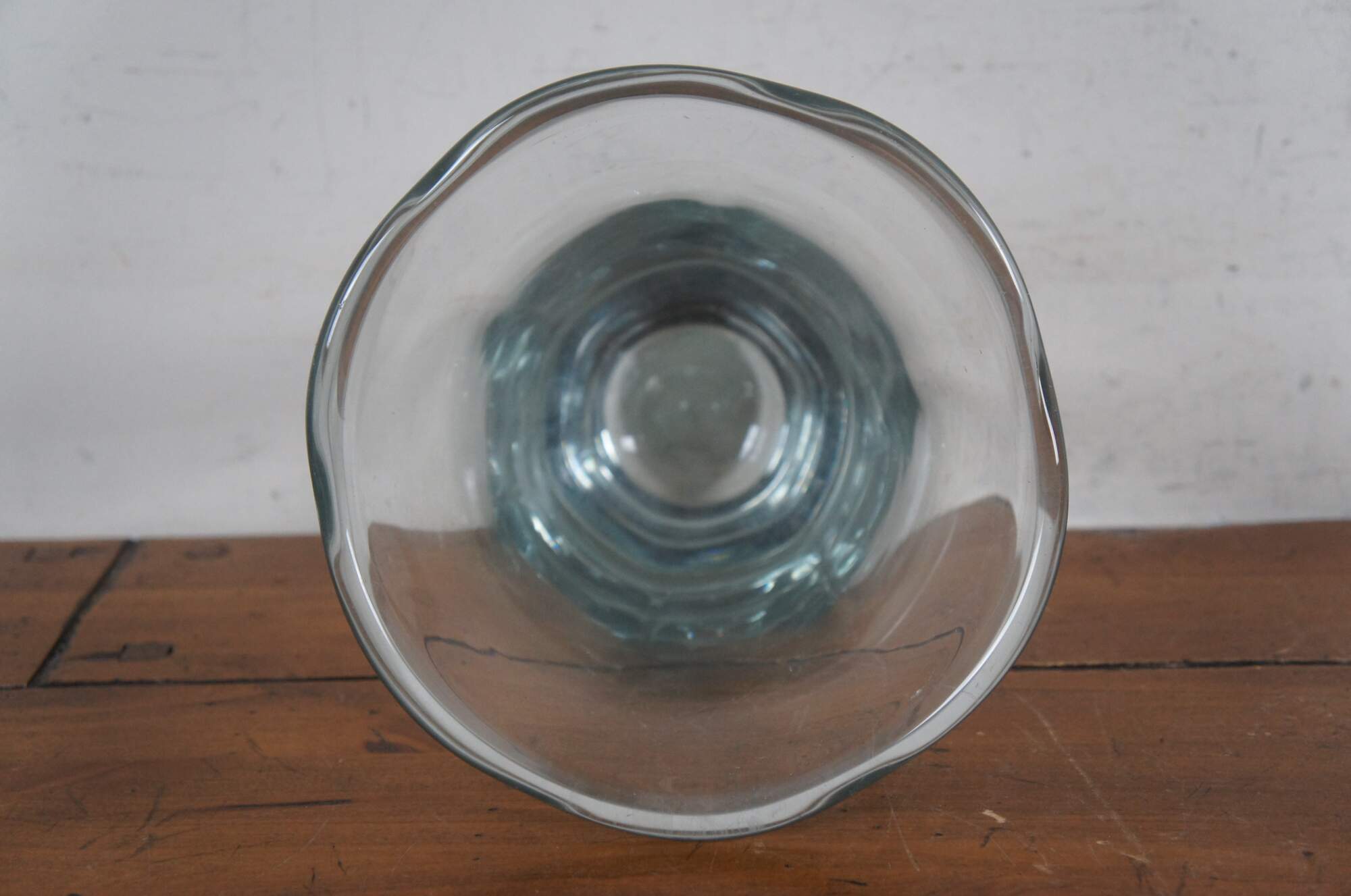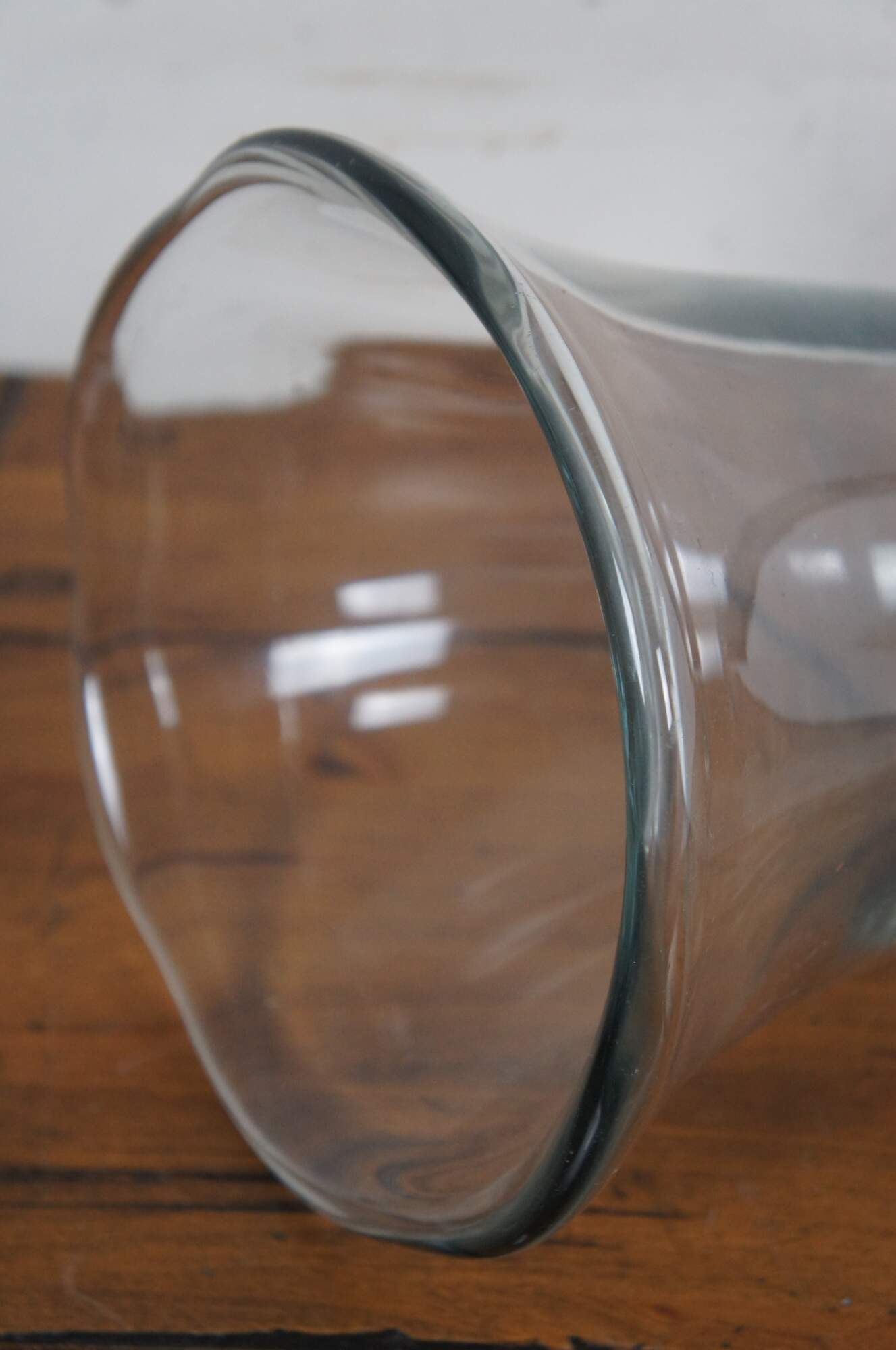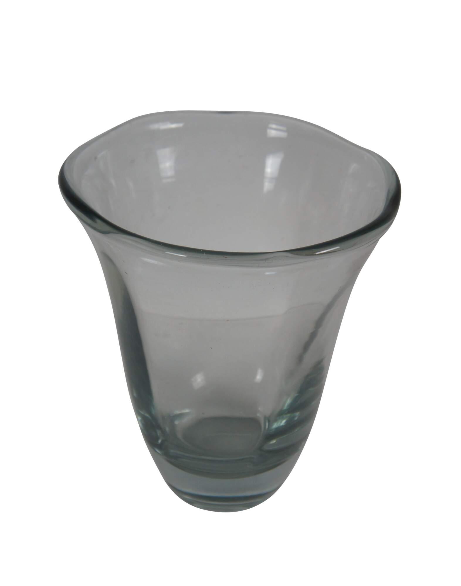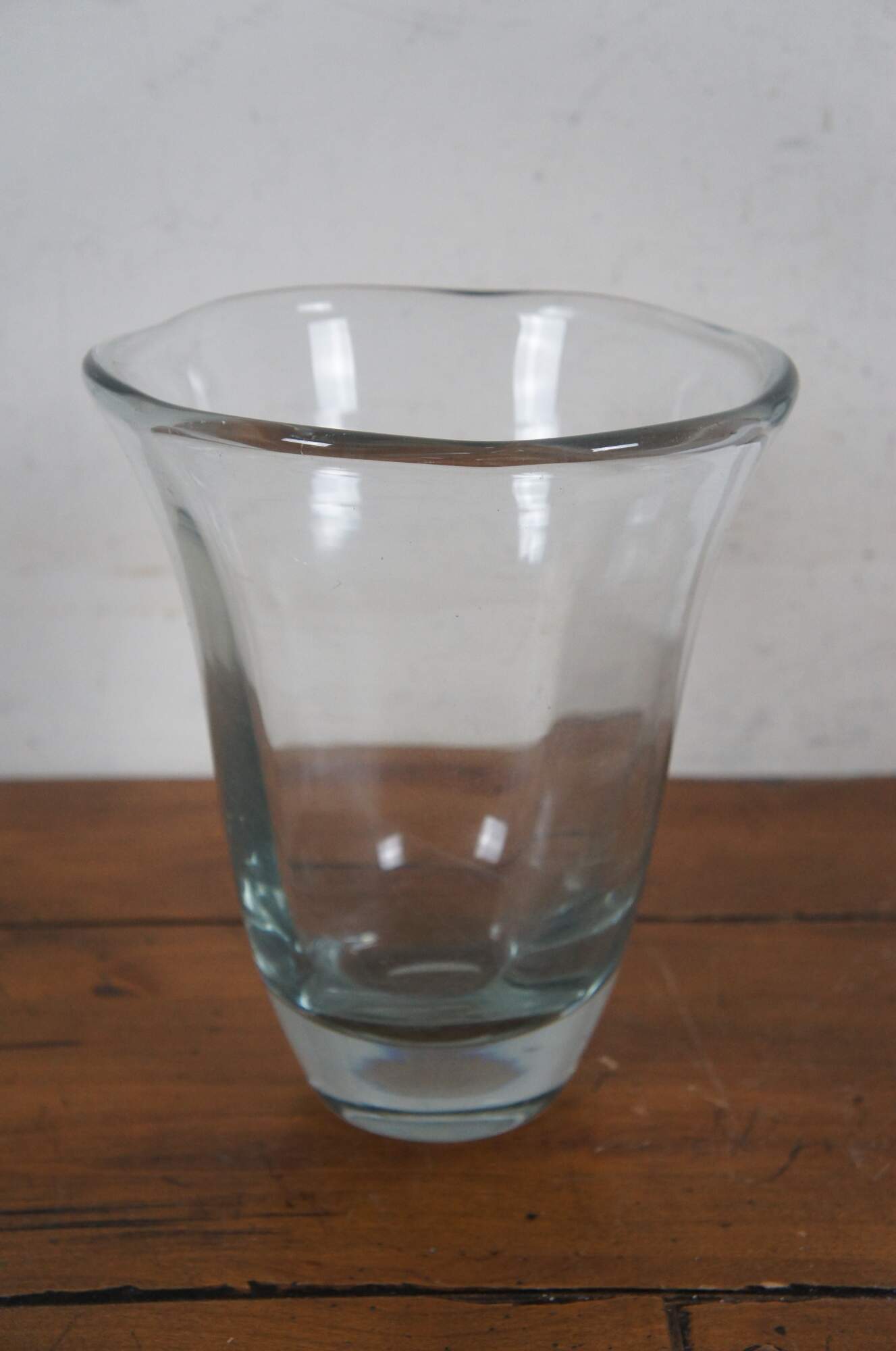 Large vintage Swedish Strombergshyttan crystal flower / tulip vase with flared mouth and waving edge. Polished pontil.