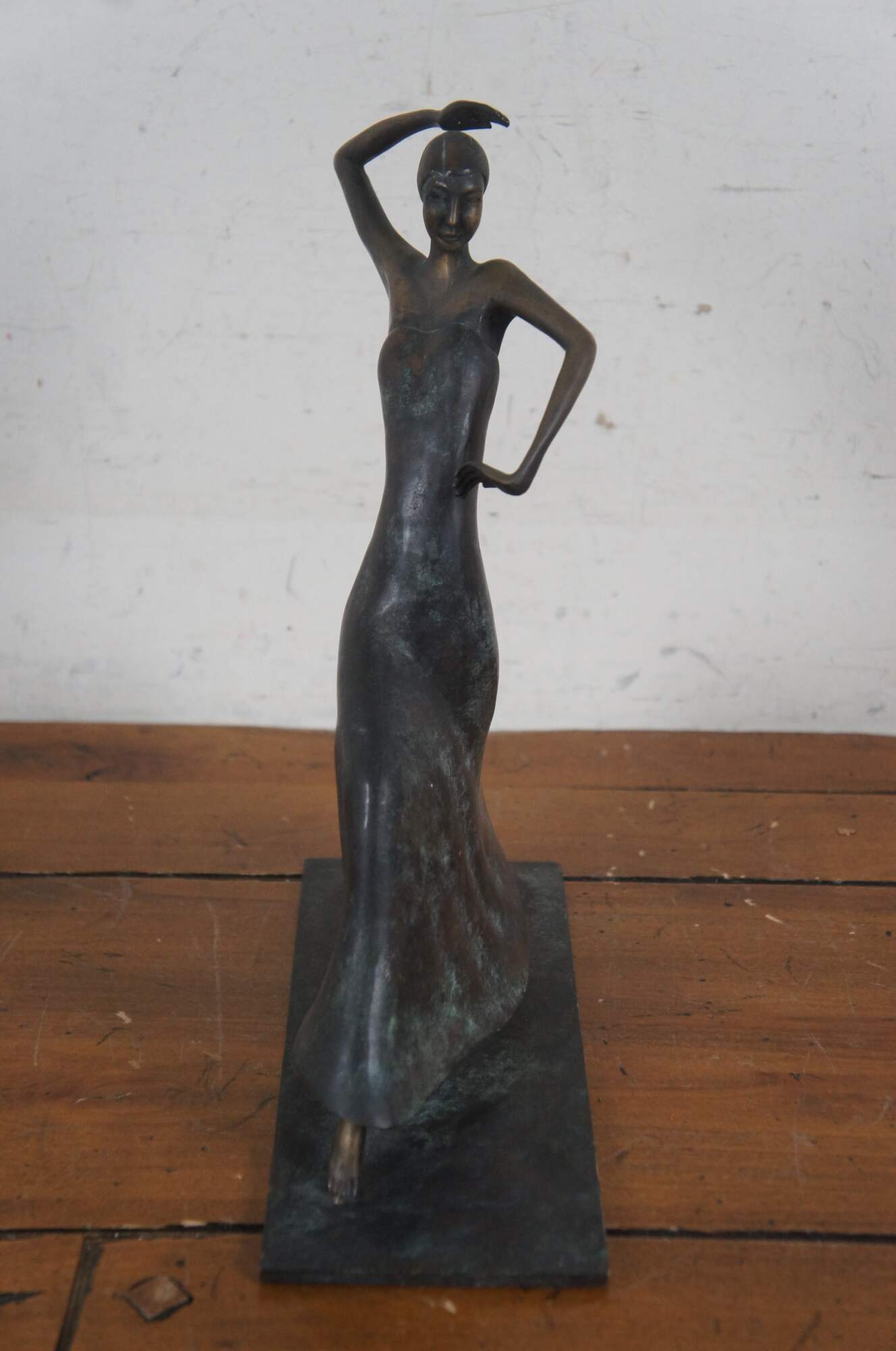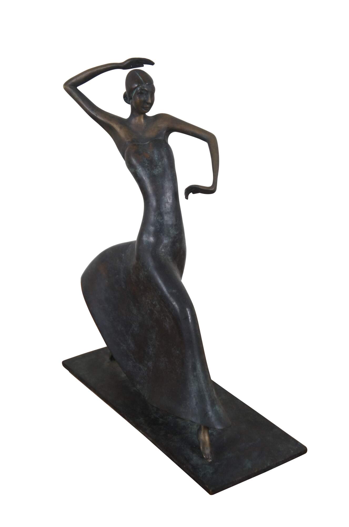 Rare late 20th century bronze statuette / figurine by Maitland Smith, inspired by Karl Hagenauer's 1930's art deco sculpture of dancer Josephine Baker. Hand made in Philippines.
