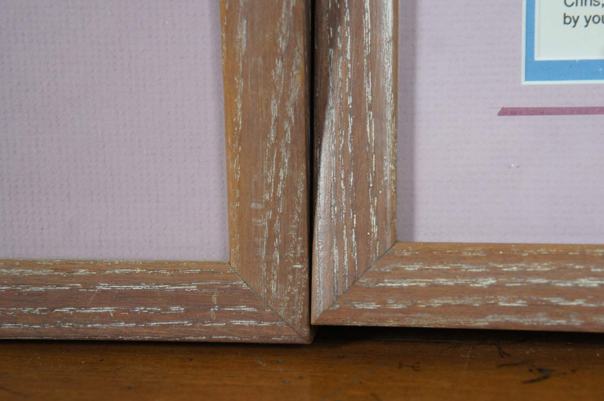 Vintage 1990's lithograph print on paper titled "Man of Vision" by Johnny Tiger, Jr. Dedicated to the memory of his nephew Chirs Tiger, the painting features a Native American in profile gazing up at a row of teepees in a red sun and a hazy portrait of (presumably) Chris in the clouds. Purchased at / original of event poster for the Second Annual Indian Market, Inter-Tribal Arts Experience 1991 - Dayton, OH. Uniquely shaped wood frame, purple and blue layered mat with darker sweeping geometric details. Includes matching framed museum label dedicating the work to Chris Tiger.