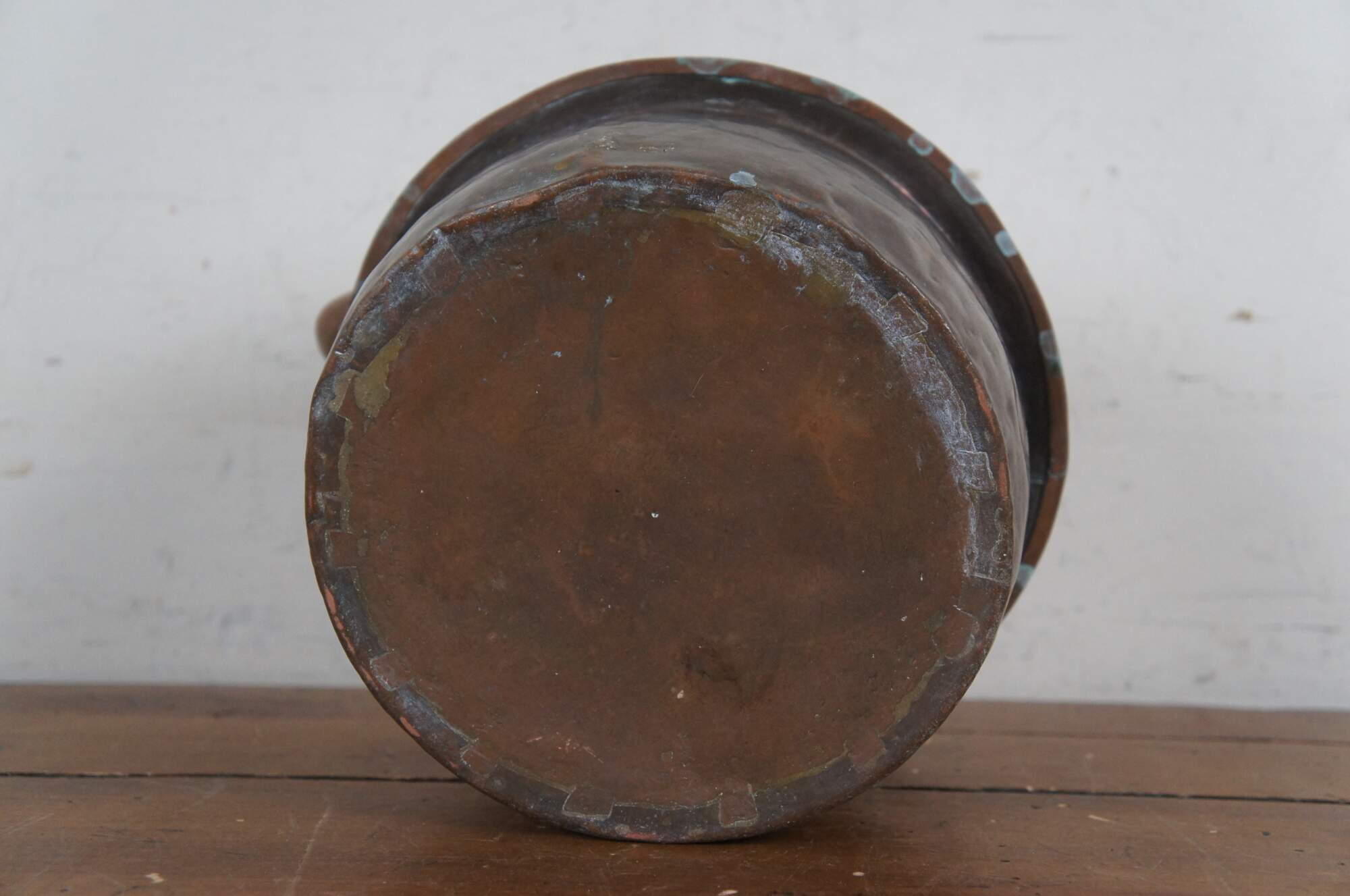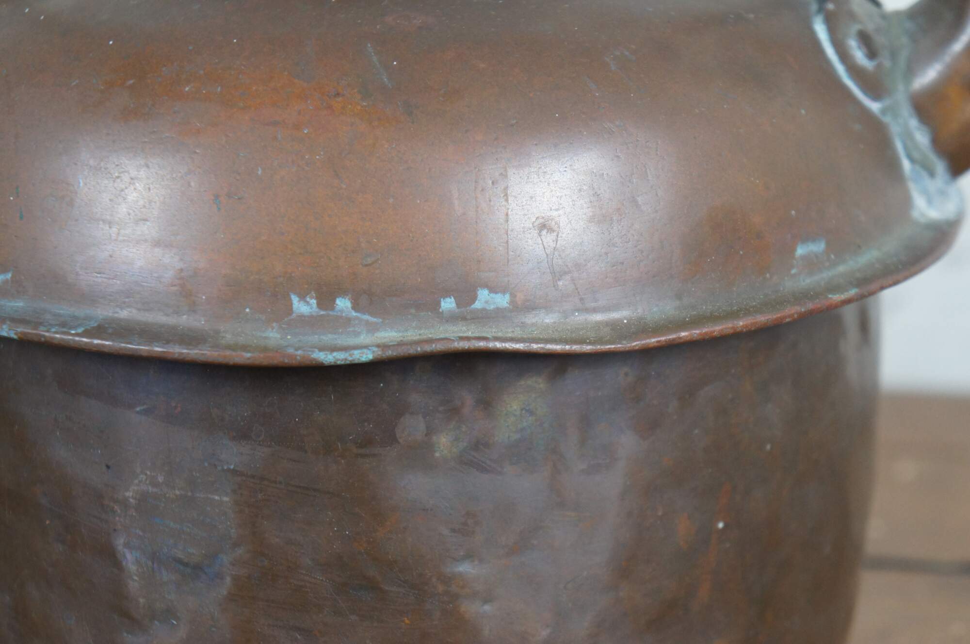 Large 19th century dovetailed copper farmhouse kettle / coffee pot with gooseneck shaped spout, rotating bail handle and scrolled finial on the lid.
