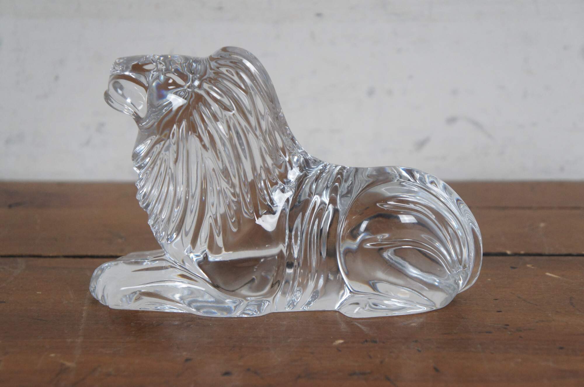 Late 20th century Waterford Crystal figurine / paperweight in the shape of a reclining male lion with face lifted.