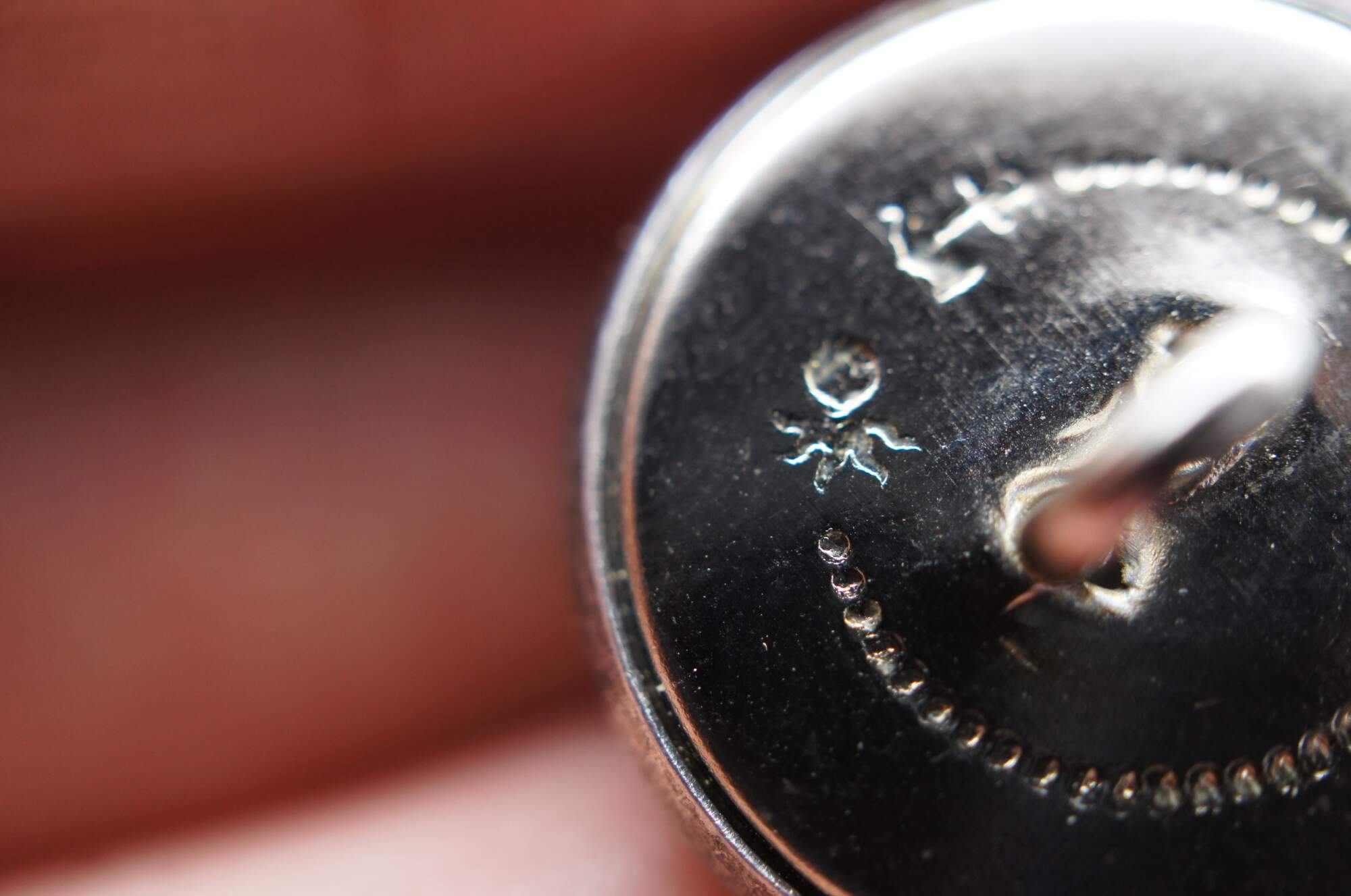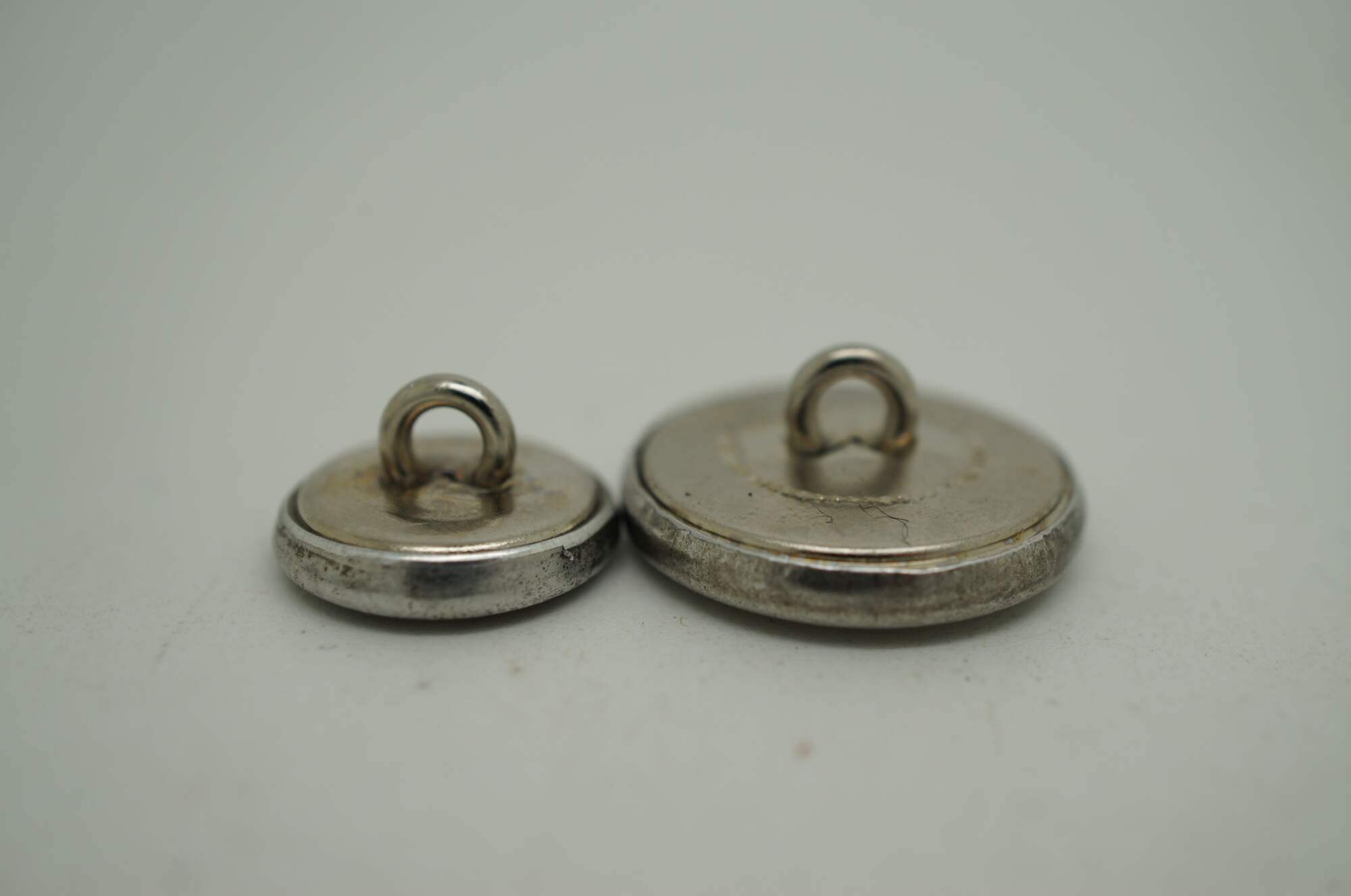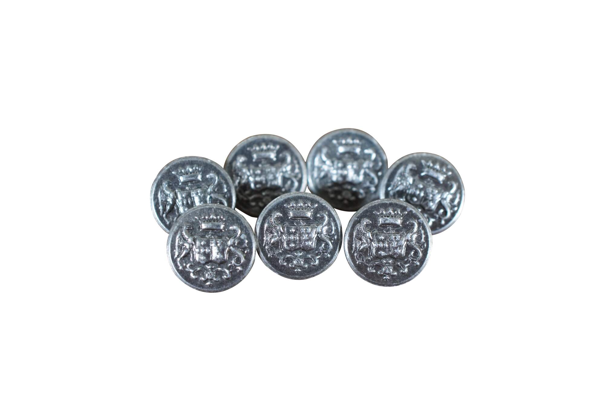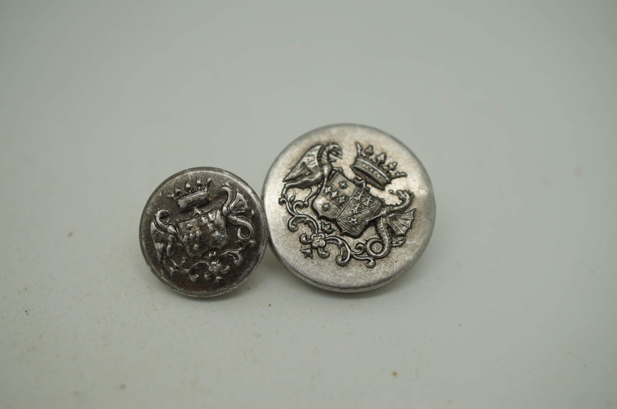Set of ten (three large and seven small) silver tone metal, shank back buttons, embossed with a heraldic / coat of arms / armorial crest or coat of arms. Made in Italy.