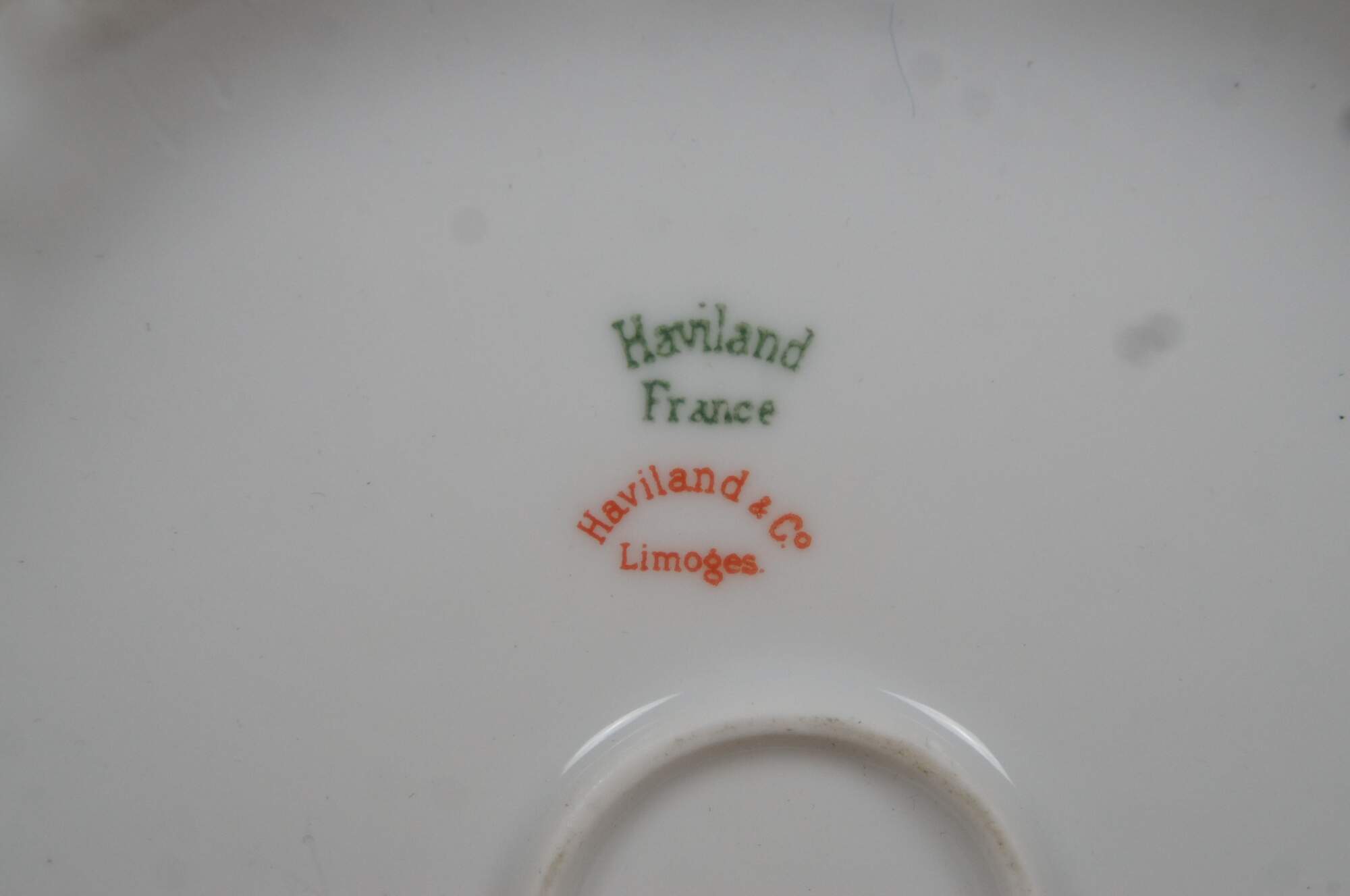 "David Haviland, a trader, created an import company of ceramics and porcelain in 1838 in New York. In 1840 he made his first trip to France to establish an alliance with a manufacturer who could create pieces of porcelain for the American trade. He settled in Limoges in 1842, where he founded his own company and manufacturing facility, and began exporting wares directly to his brothers who remained in New York. Their new company was called Haviland Brothers & Company. There were numerous china manufacturers in Limoges, but the Haviland Company was the first to have artists on site to do the decorating. By 1853 they were the largest importer of French porcelain into the United States. The effects of the Civil War were so pronounced that Haviland Brothers & Co. had to close its doors. David Haviland saw this as an opportunity to go into business for himself and rebranded as Haviland and Company. After the Civil War, David sent his son, Théodore, to the U.S. to handle distribution and marketing. Production dramatically increased and another son, Charles Edward Haviland, took over management of the firm from his father. Many talented artists were engaged and soon the lithograph or transfer technique of decoration was developed. White House china sets were designed for Presidents Lincoln, Grant, Hayes and Harrison. But the Victorian housewife was the primary customer with a wide variety of patterns to choose. The company continued to be managed by the two brothers with Charles Edward largely in control and managing the day-to-day operations and Theodore in America until 1879 when Theodore moved back to France. Both brothers in one location proved to be too much for either and they decided to dissolve their partnership in 1891. Théodore Haviland left the company to start his own in 1893 and was a very innovative marketer. The two companies competed bitterly until Charles Edward's death in 1921, with the company folding in 1931. Because of the approaching hostilities in Europe, Théodore moved his company to the United States in 1936, where it operated until 1957. The patterns of both companies were gathered and bought in 1941 by William Haviland who retired in 1972. The Haviland company has since been overseen by grandson William Haviland, and great-grandson Theodore Haviland II. Haviland & Co. is still operating as Haviland Company, though the facilities are now modernized and now sell silverware, crystal, and giftware in addition to porcelain." (Source: Haviland / Haviland Collectors / Wikipedia)