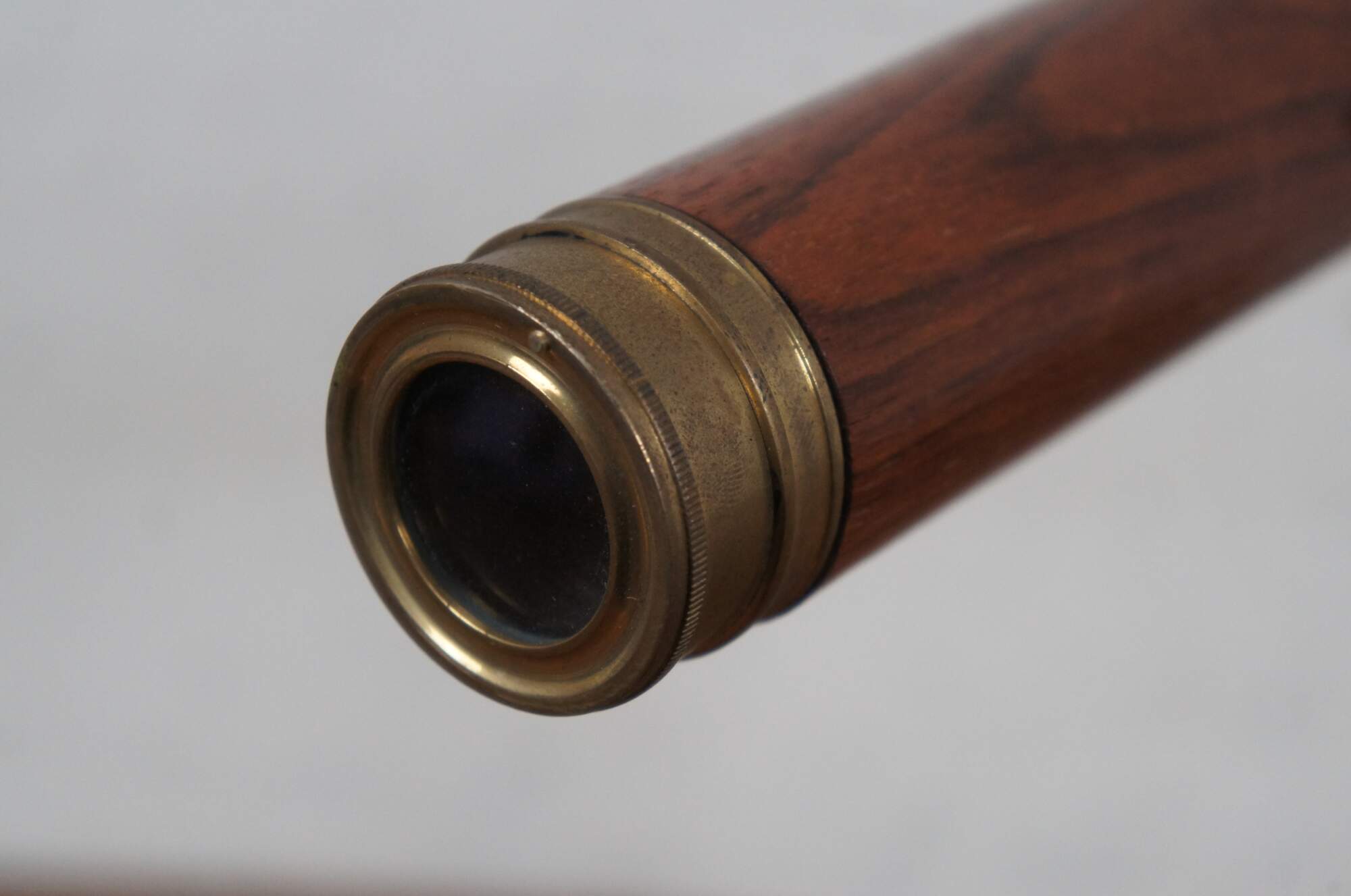 Late 20th century Rosewood and brass Queen Anne style desktop / library telescope on stand with tripod base.