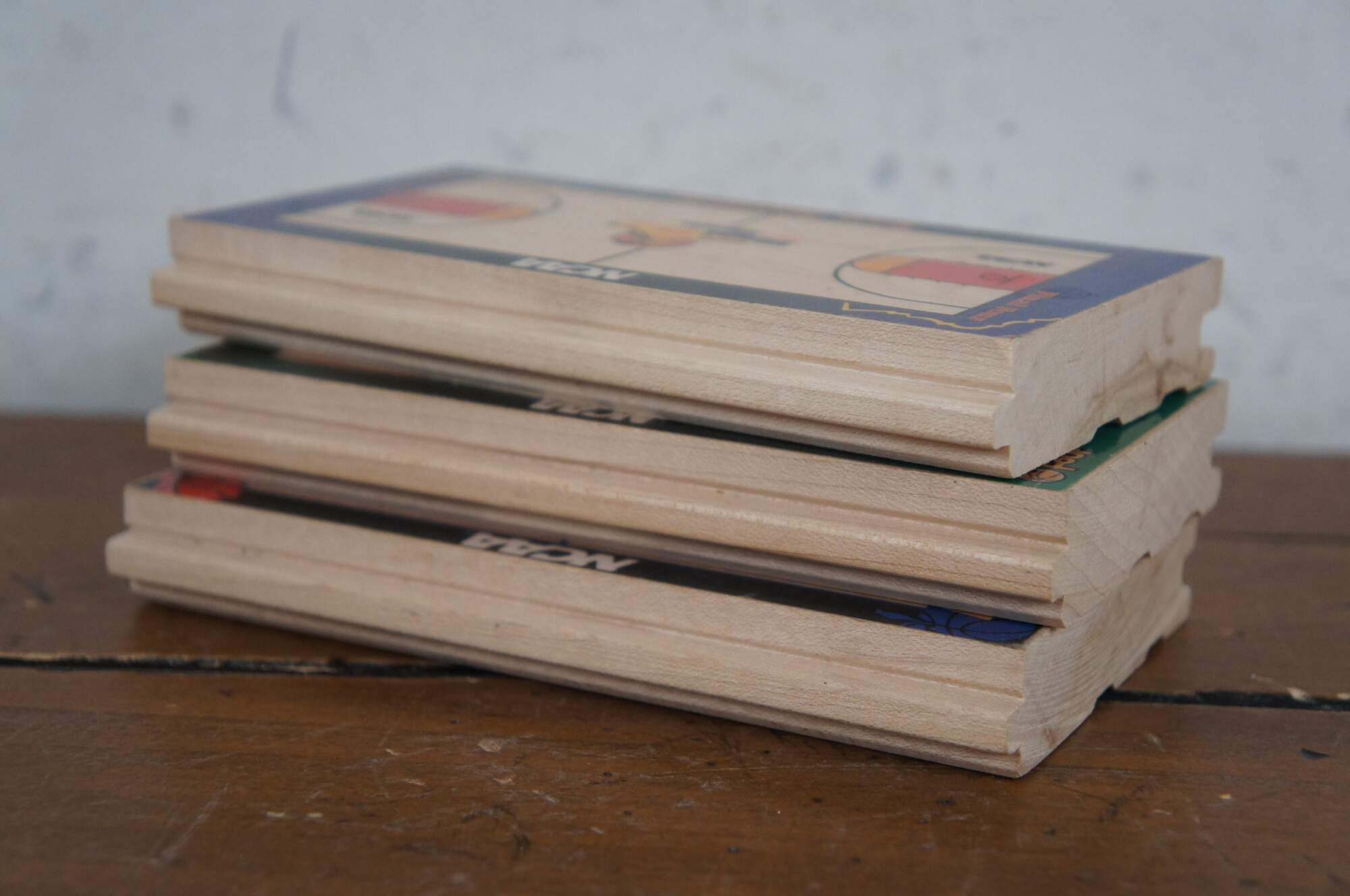 Set of three NCAA Men's Final Four basketball tournament souvenir floor board pieces / tiles. Includes Atlanta 2002, New Orleans 2003, and San Antonio 2004. Horner Flooring Company - Pro King floor boards printed with basketball court design.