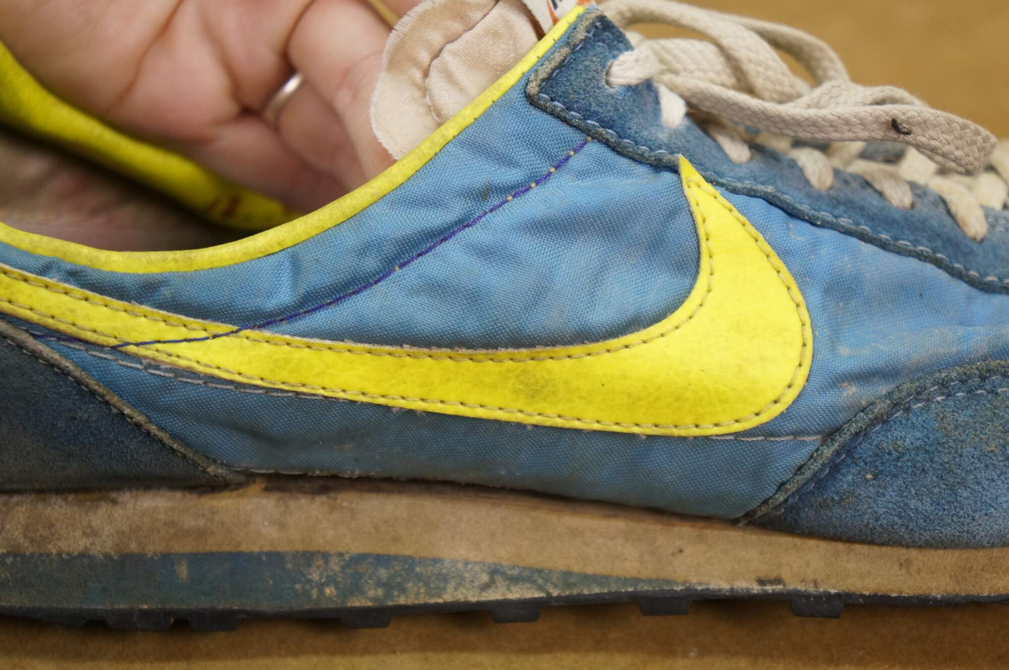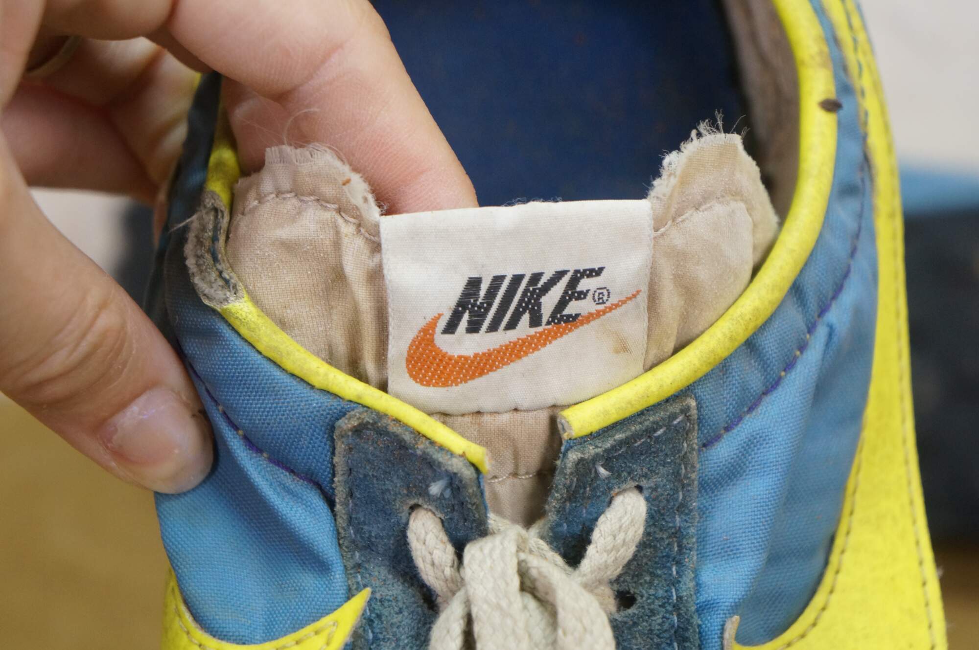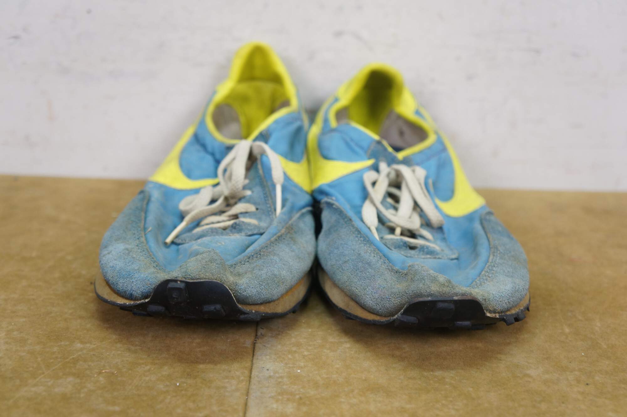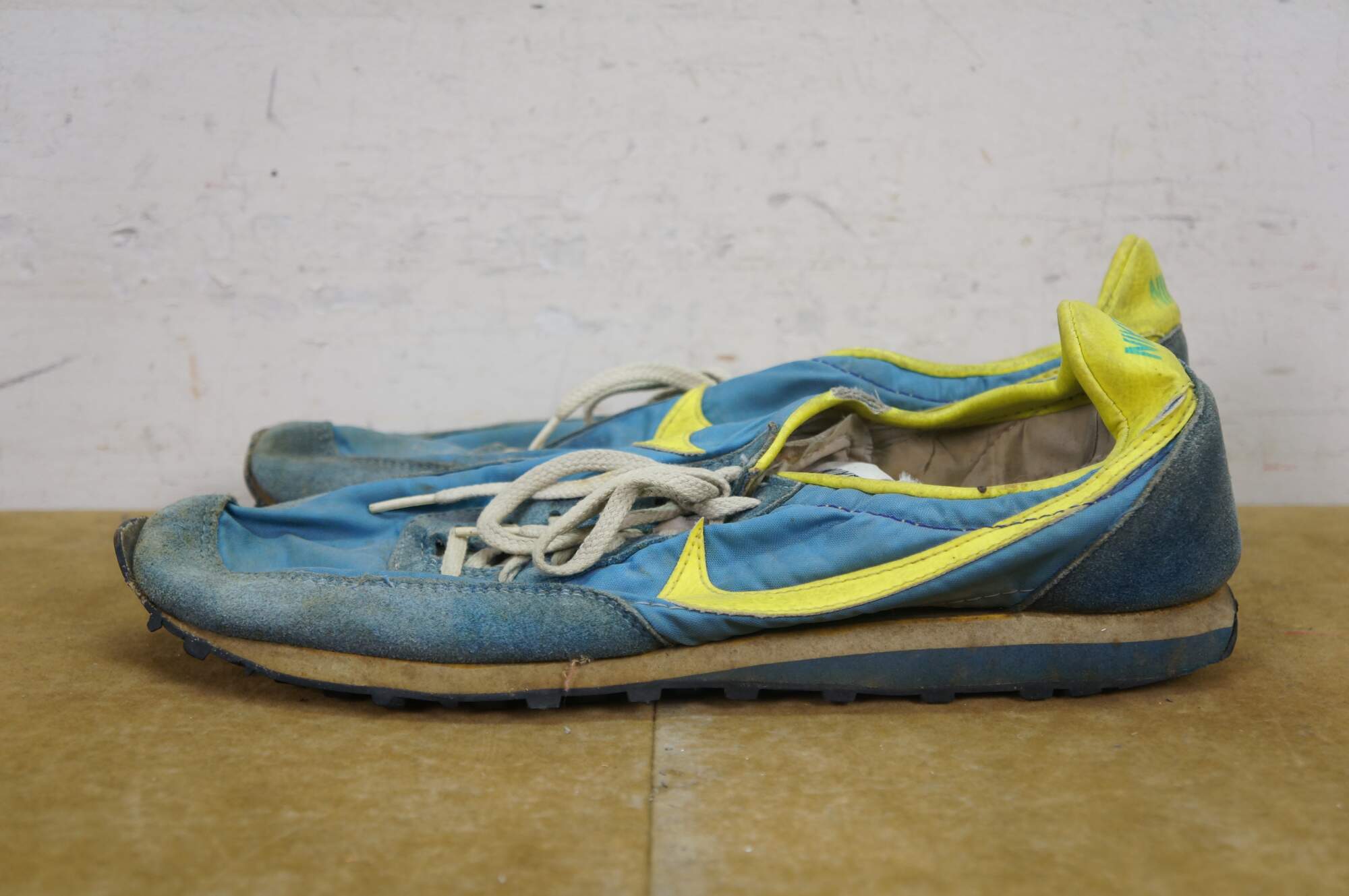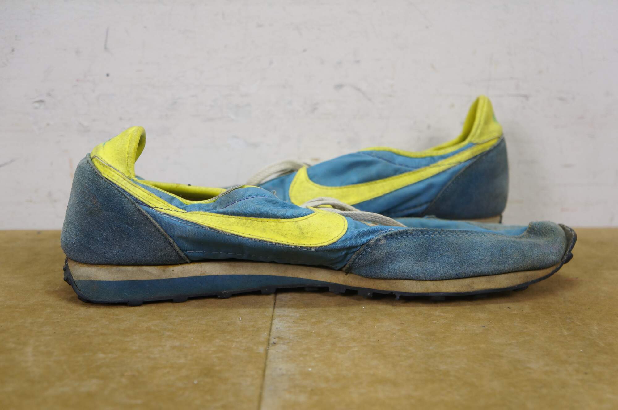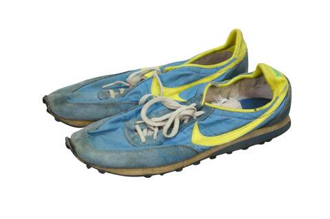 Vintage 1970s Nike Waffle Racing Flat, also known as the Nike Moon Shoe. Originally Designed by Nike co-founder and Oregon track coach Bill Bowerman, who used his wife's waffle iron to create a prototype sole that offered superior traction on the new, slick urethane tracks. The shoe was used at the 1972 Olympic trials in Eugene, Oregon. One of the most important artifacts in sneaker history.