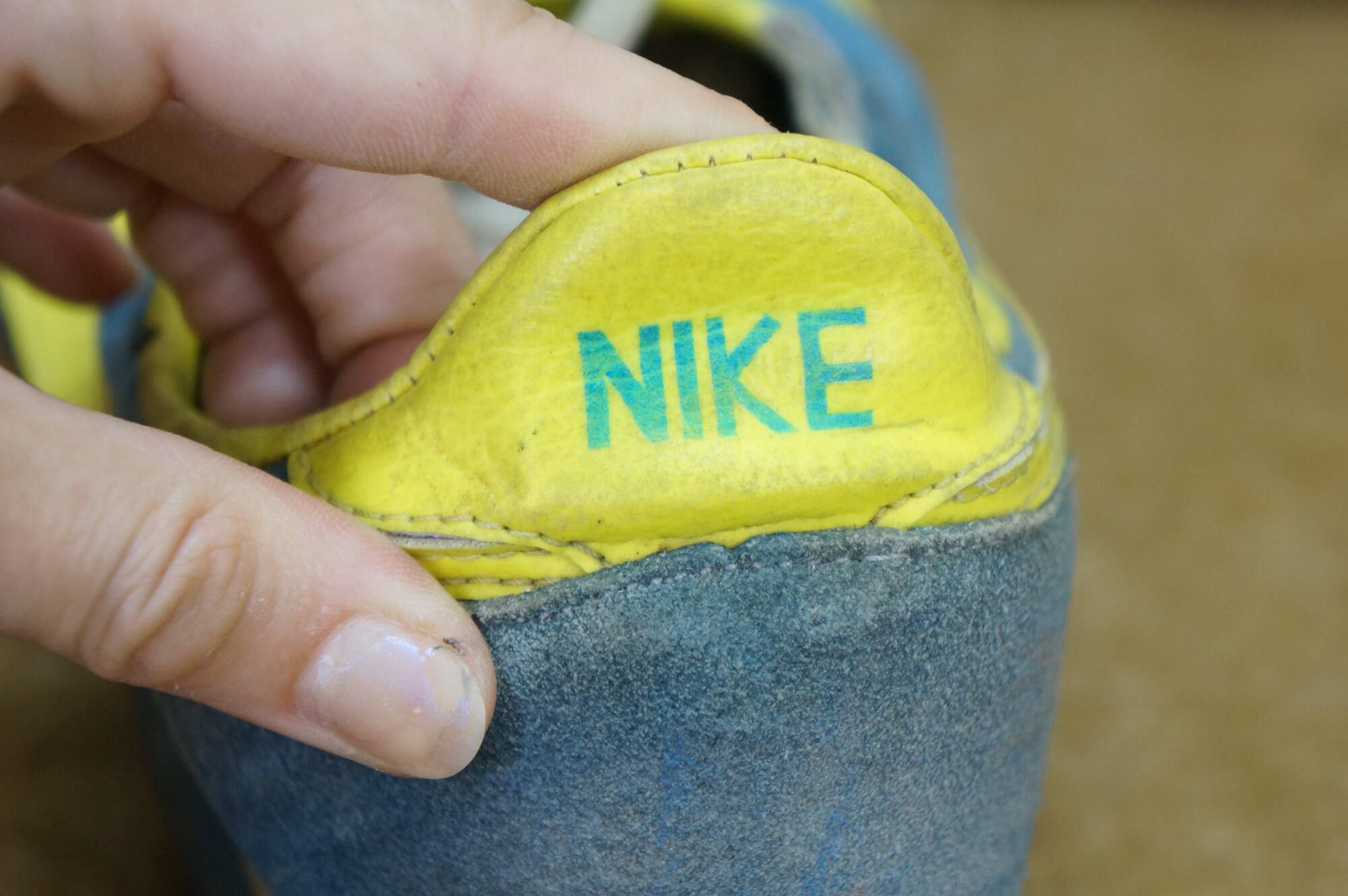 This shoes was made in the desirable blue and neon yellow color combo, size 12. Numbered 8681.