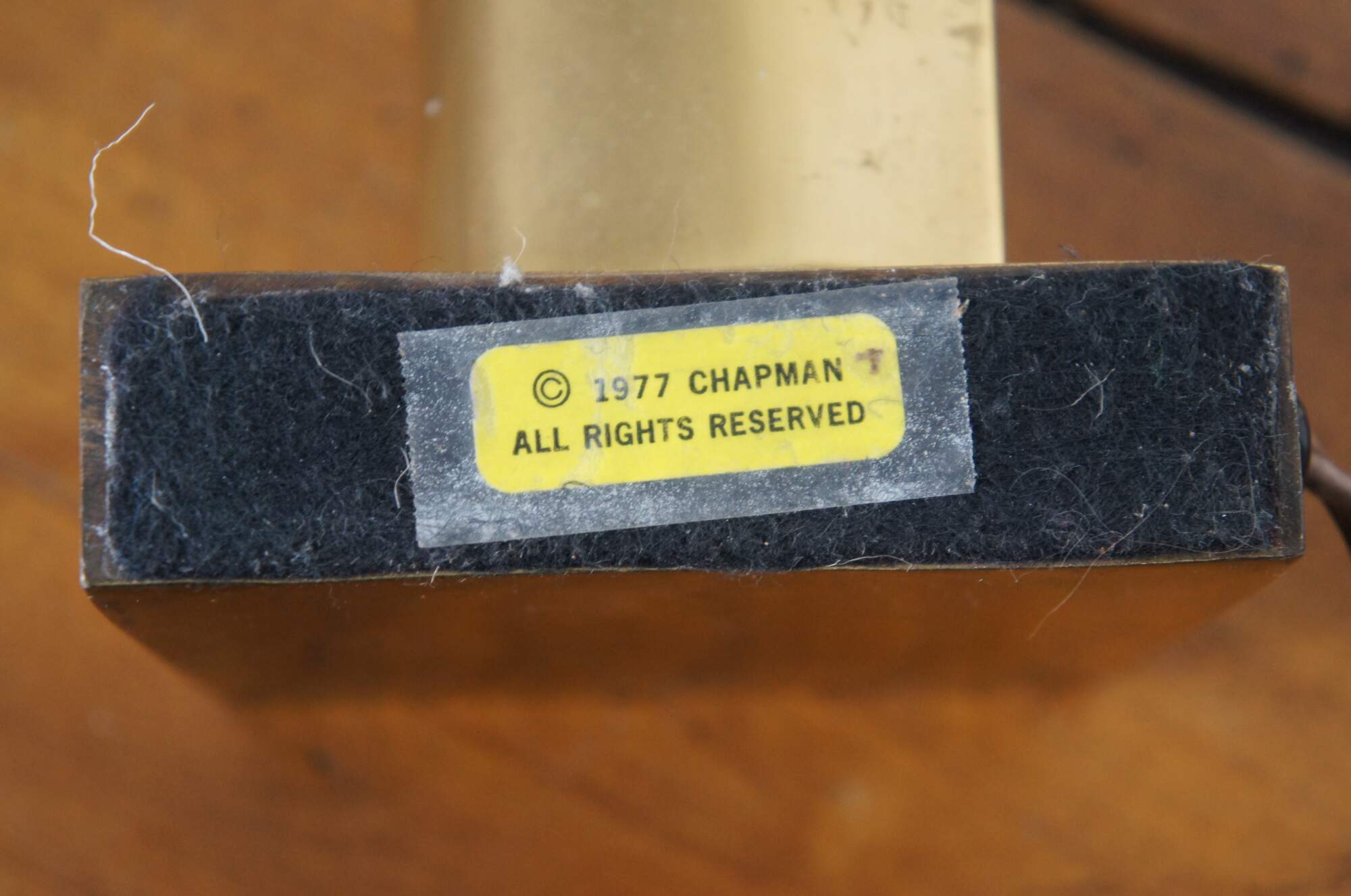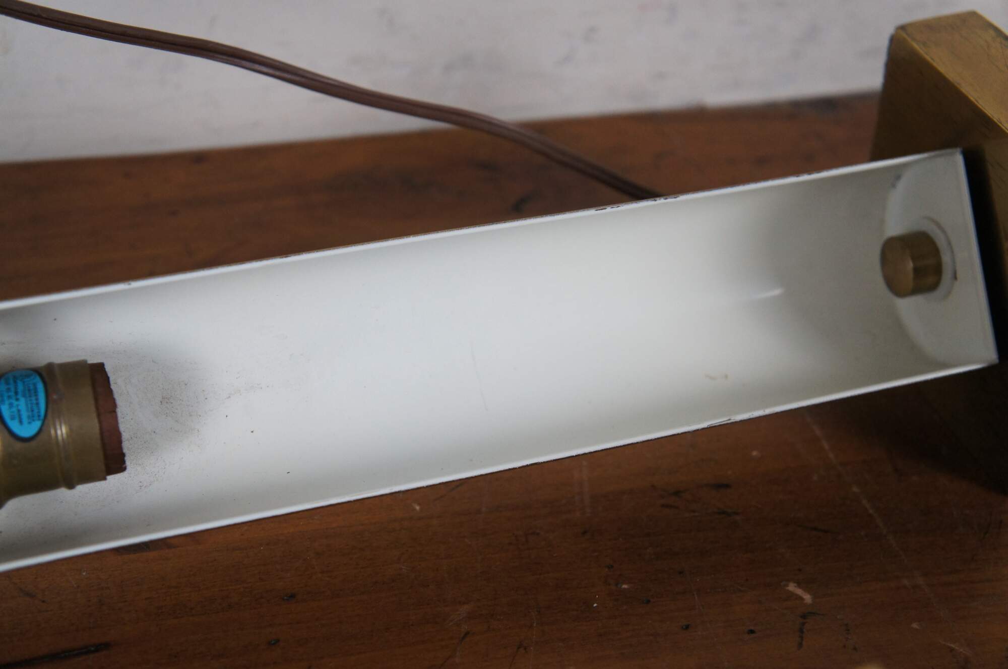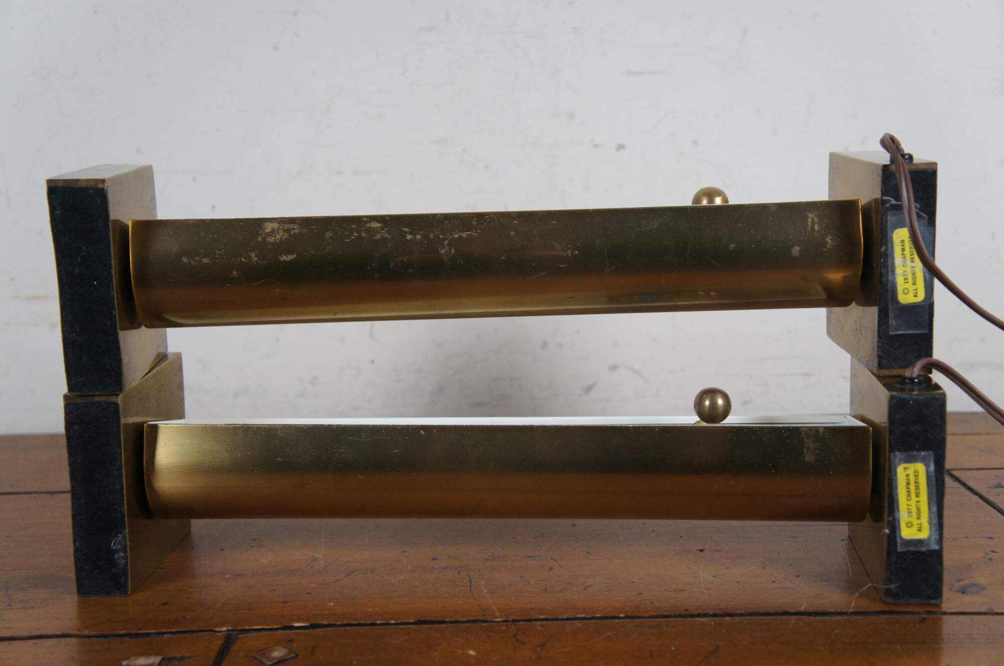 Pair of 1977 Chapman Brass desk lamps or picture lights, uniquely styled with a rotatable tubular form, standing on square end caps. Dimable switch.