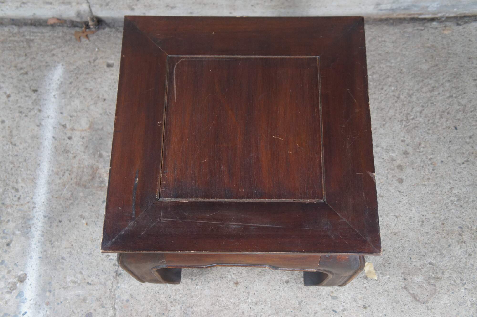Chinese Ming style accent table. Make from teak with a square frame over contoured apron and traditional form legs.