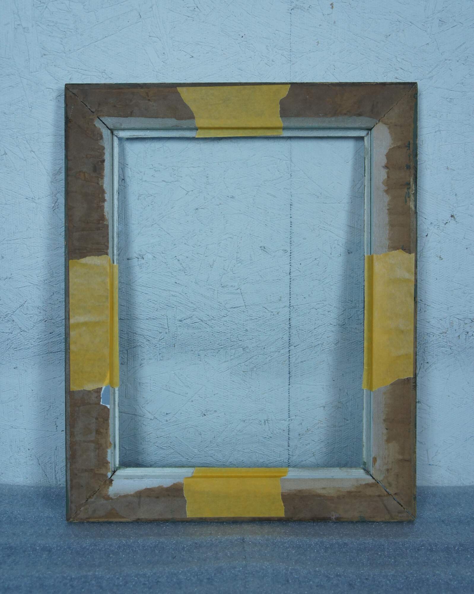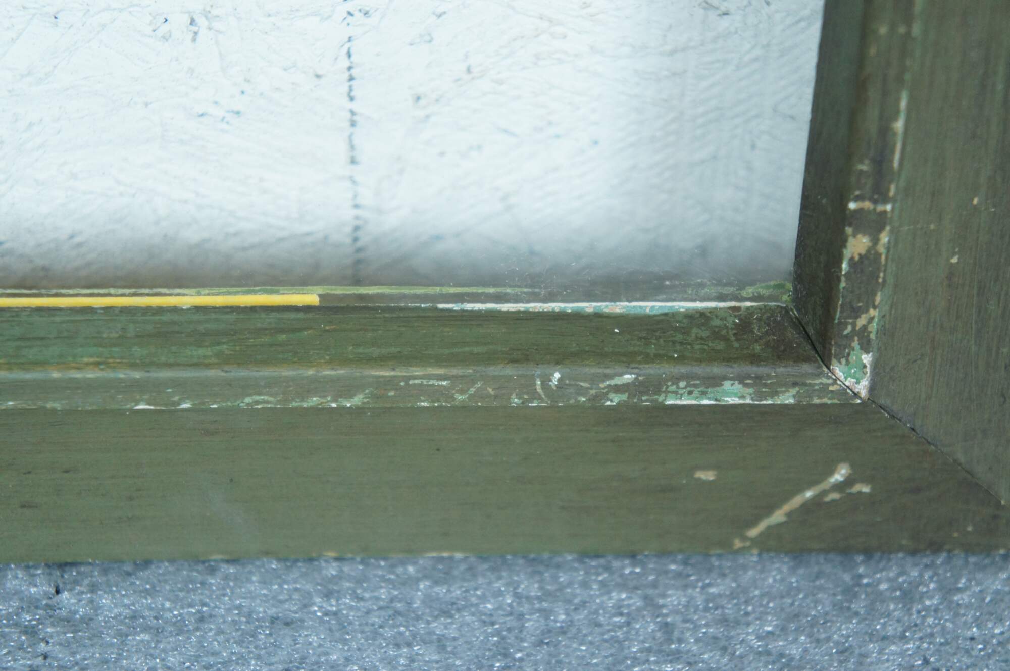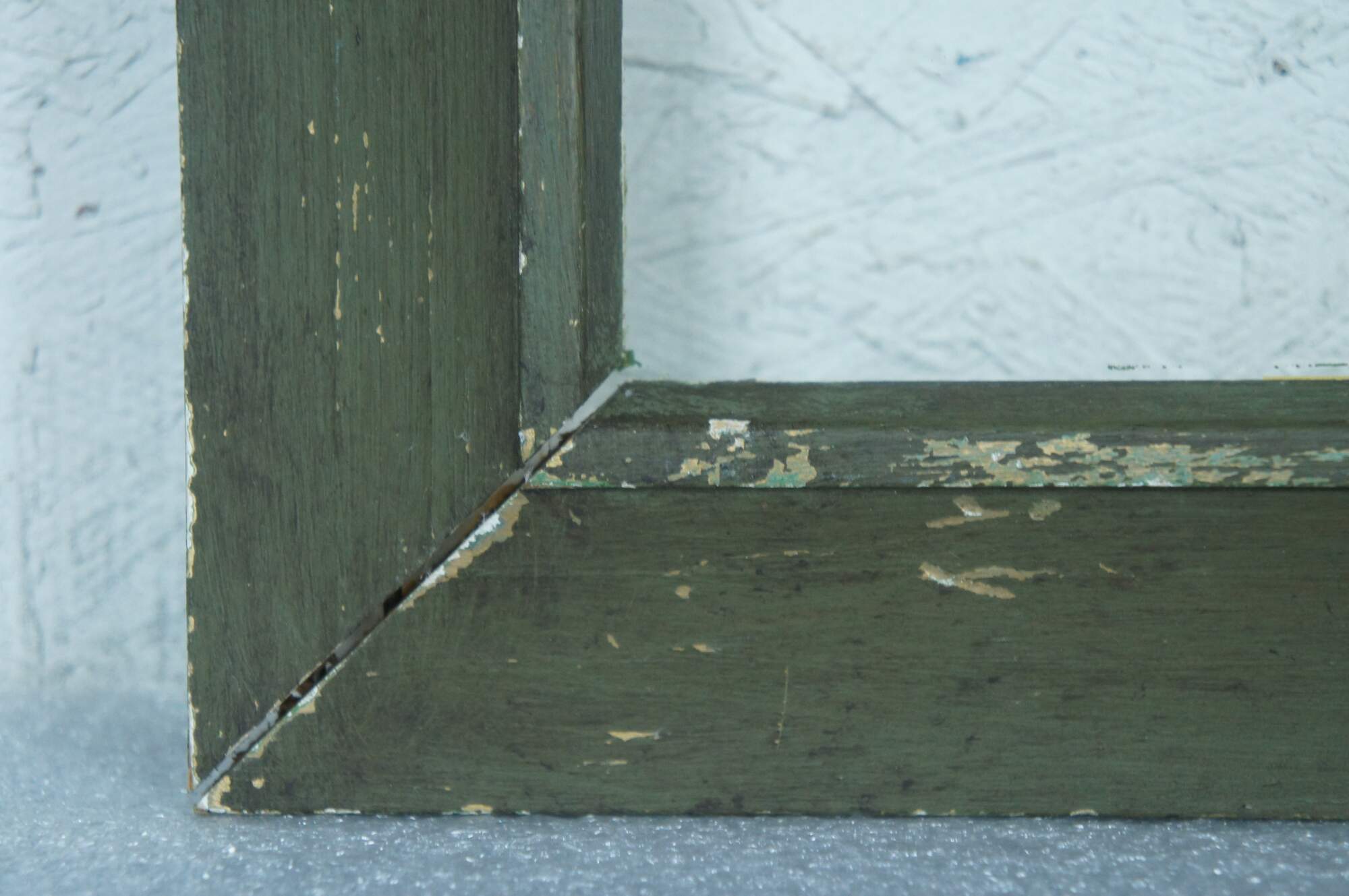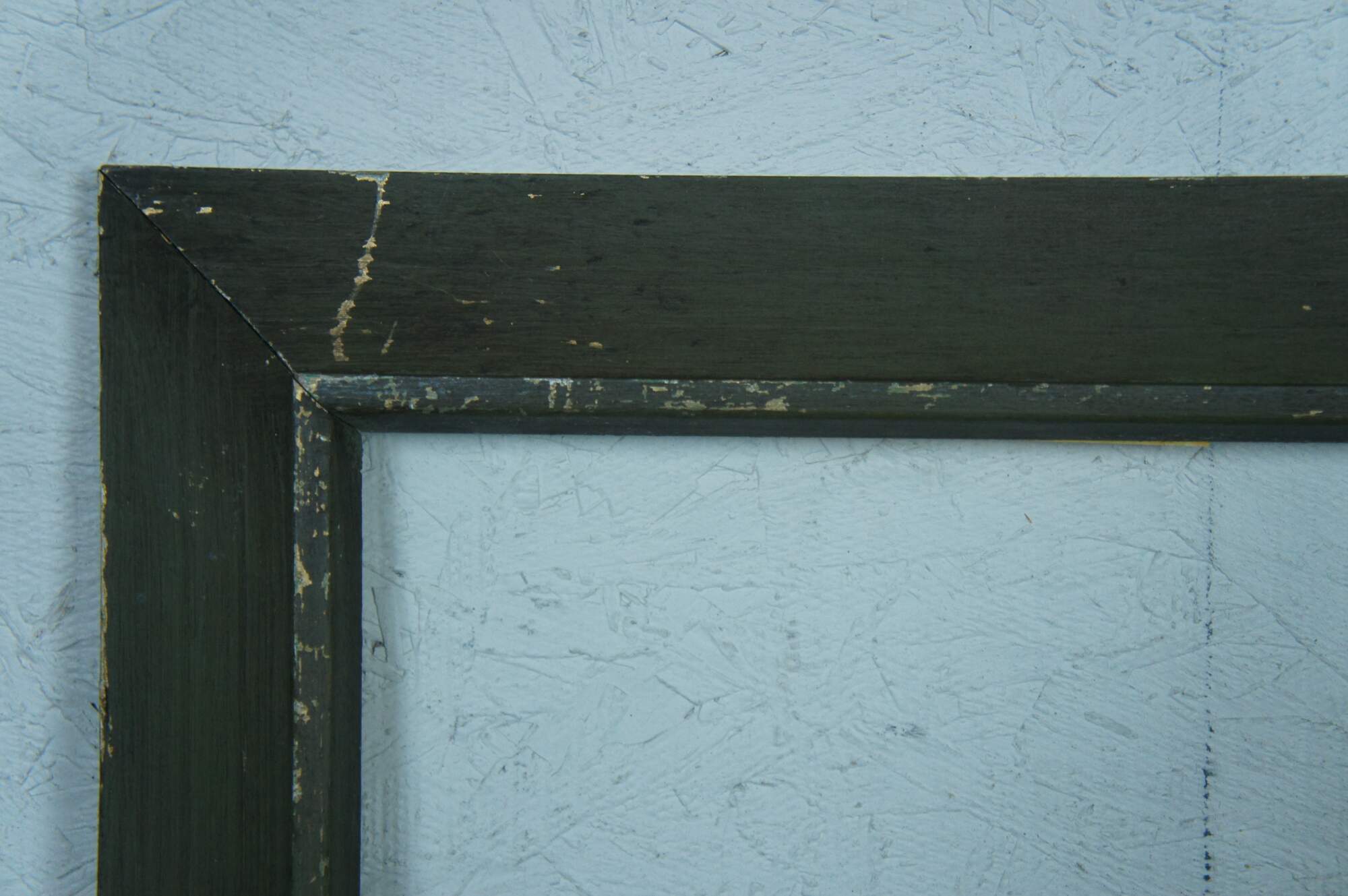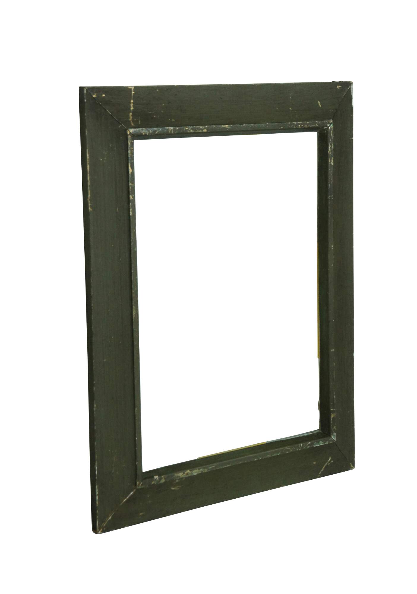 Early 20th century wooden picture / photo frame with beveled slope and raised inner edge. Painted olive green. Includes glass.
