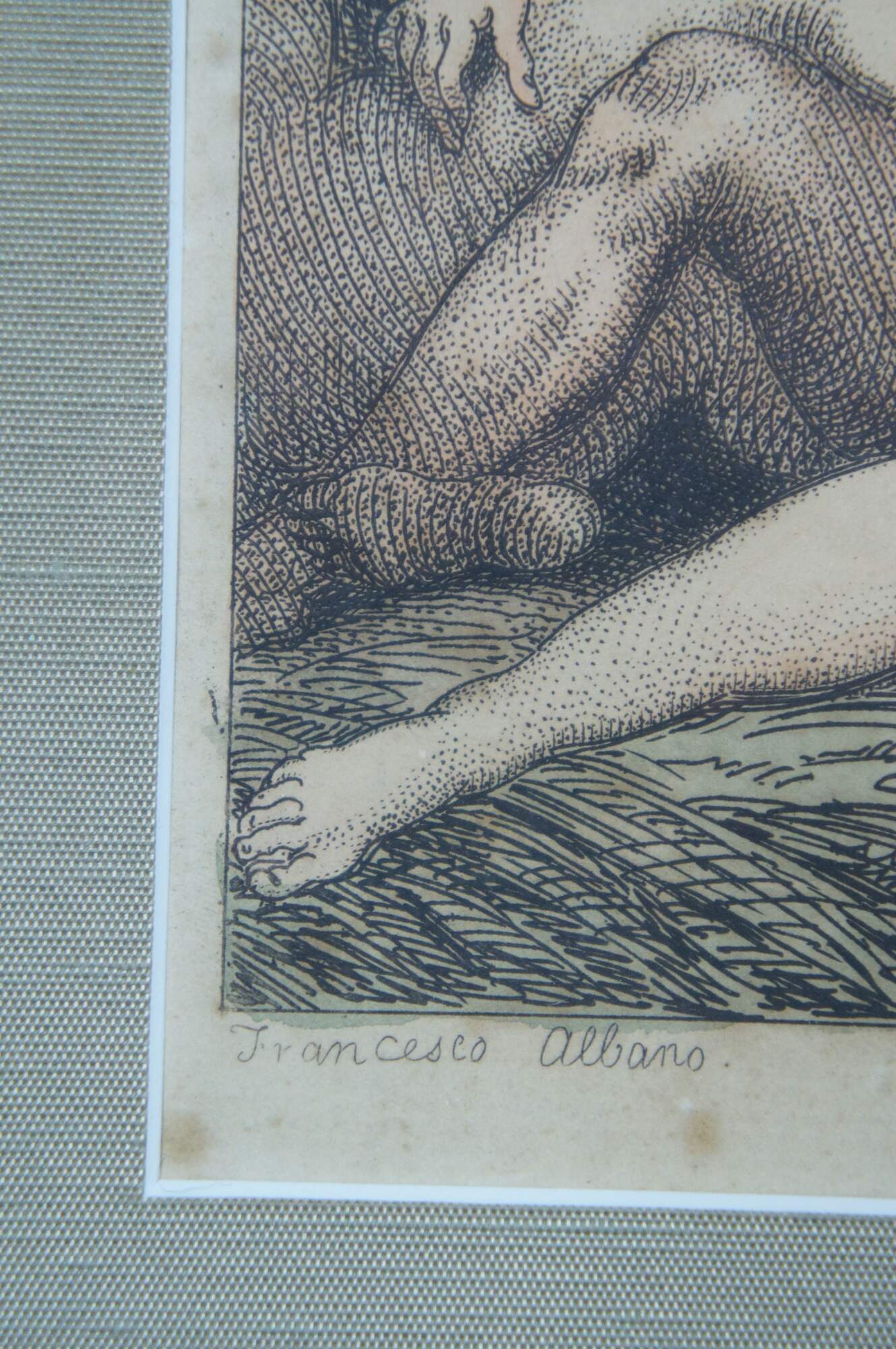 "Francesco Albani or Albano (17 March or 17 August 1578 - 4 October 1660) was an Italian Baroque painter. Born 1578 in Bologna, he had a father who was a silk merchant and who intended to instruct his son in the same trade; but by age twelve, Albani became an apprentice under the competent mannerist painter Denis Calvaert, where he met Guido Reni. Soon he followed Reni to the so-called "Academy" run by the Carracci family. In the year 1600, Albani moved to Rome to work in the fresco decoration of the gallery of the Palazzo Farnese, being completed by the studio of Annibale Carracci. Albani became one of Annibale's most prominent apprentices. Albani's best fresco masterpieces are those on mythological subjects. Among the best of his sacred subjects are a St Sebastian and an Assumption of the Virgin, both in the church of San Sebastiano fuori le Mura in Rome. He was among the Italian painters to devote himself to painting cabinet pictures. His mythological subjects include The Sleeping Venus, Diana in the Bath, Danaë Reclining, Galatea on the Sea, and Europa on the Bull." (Source: askART)