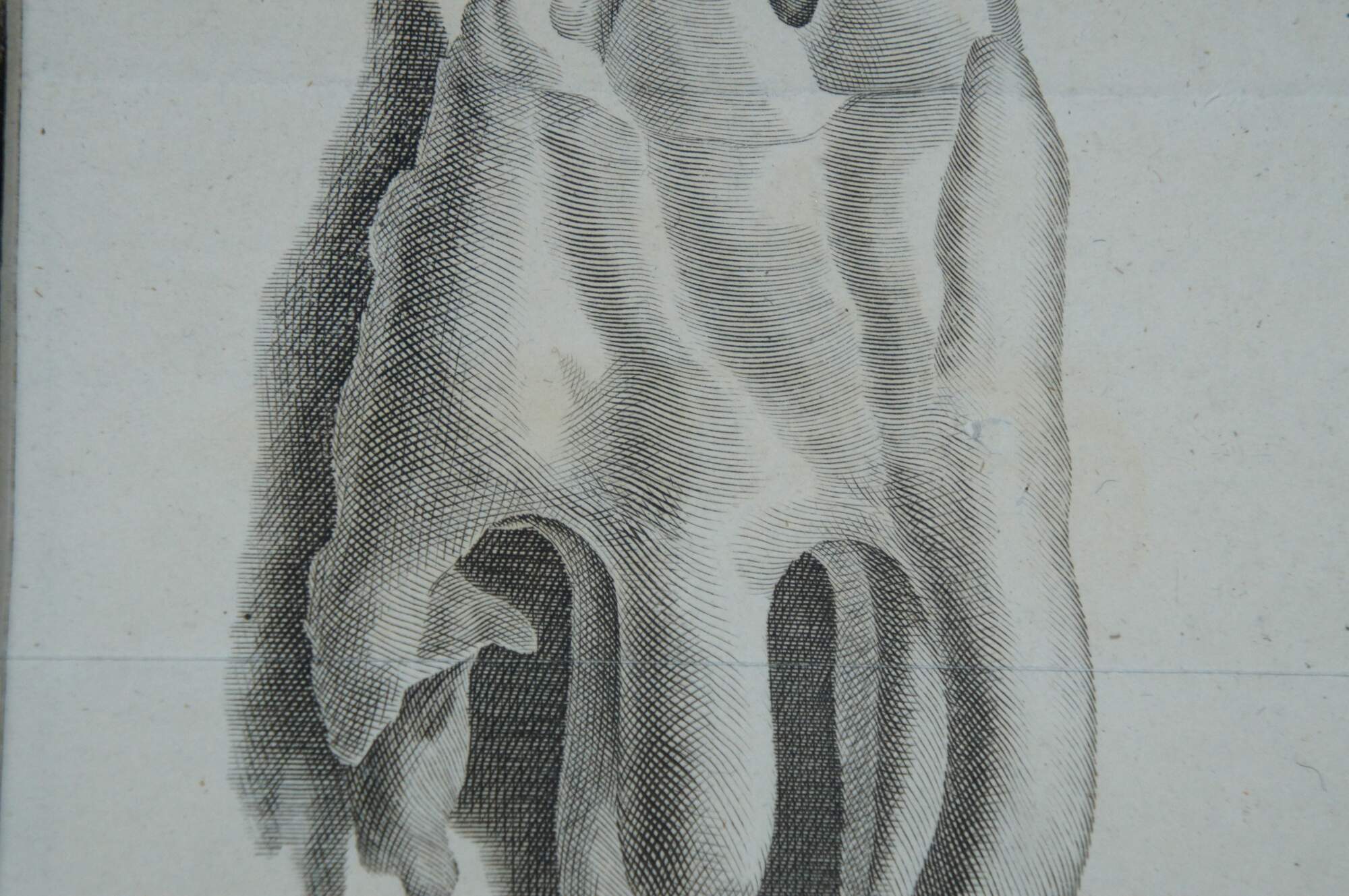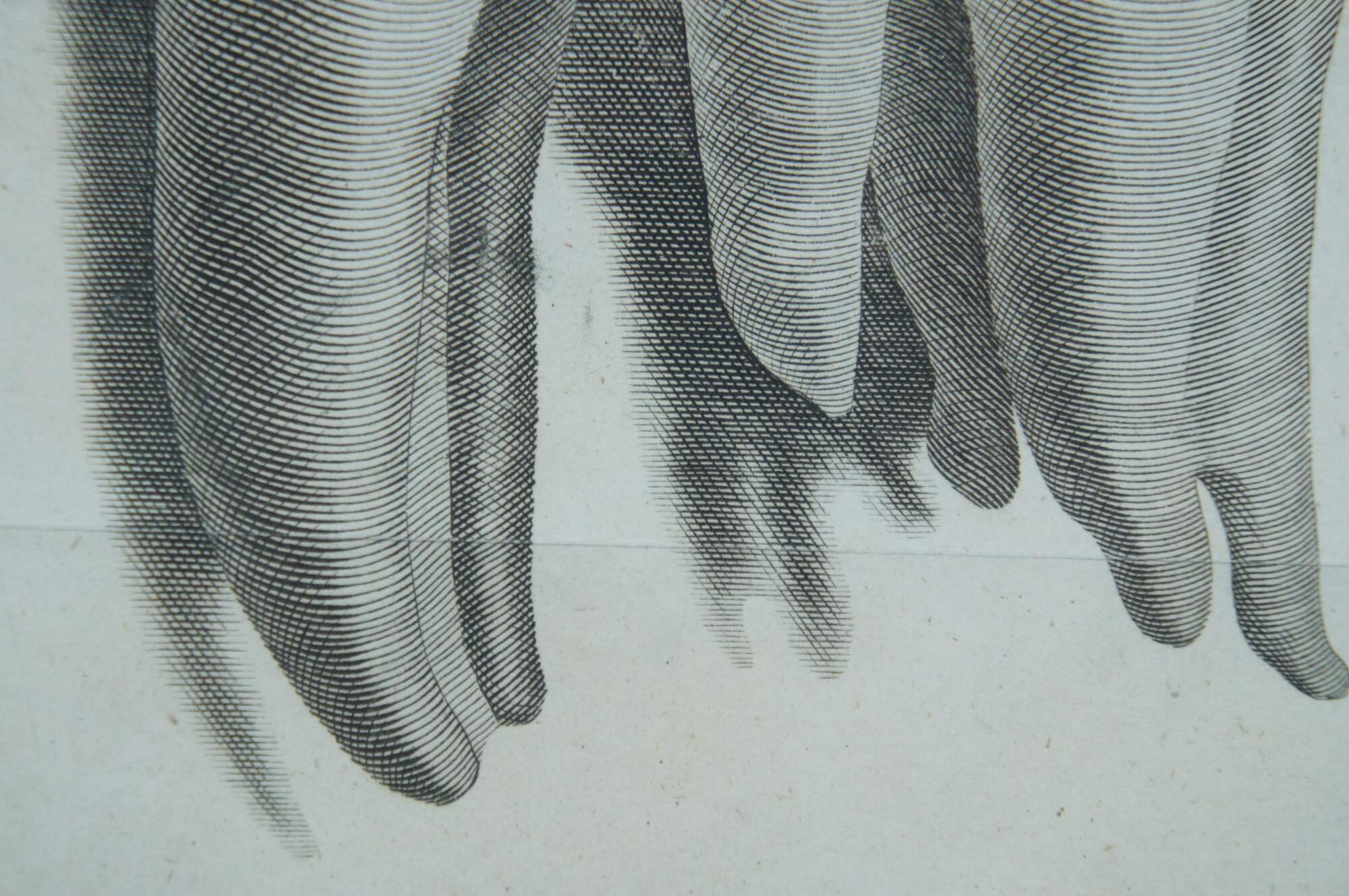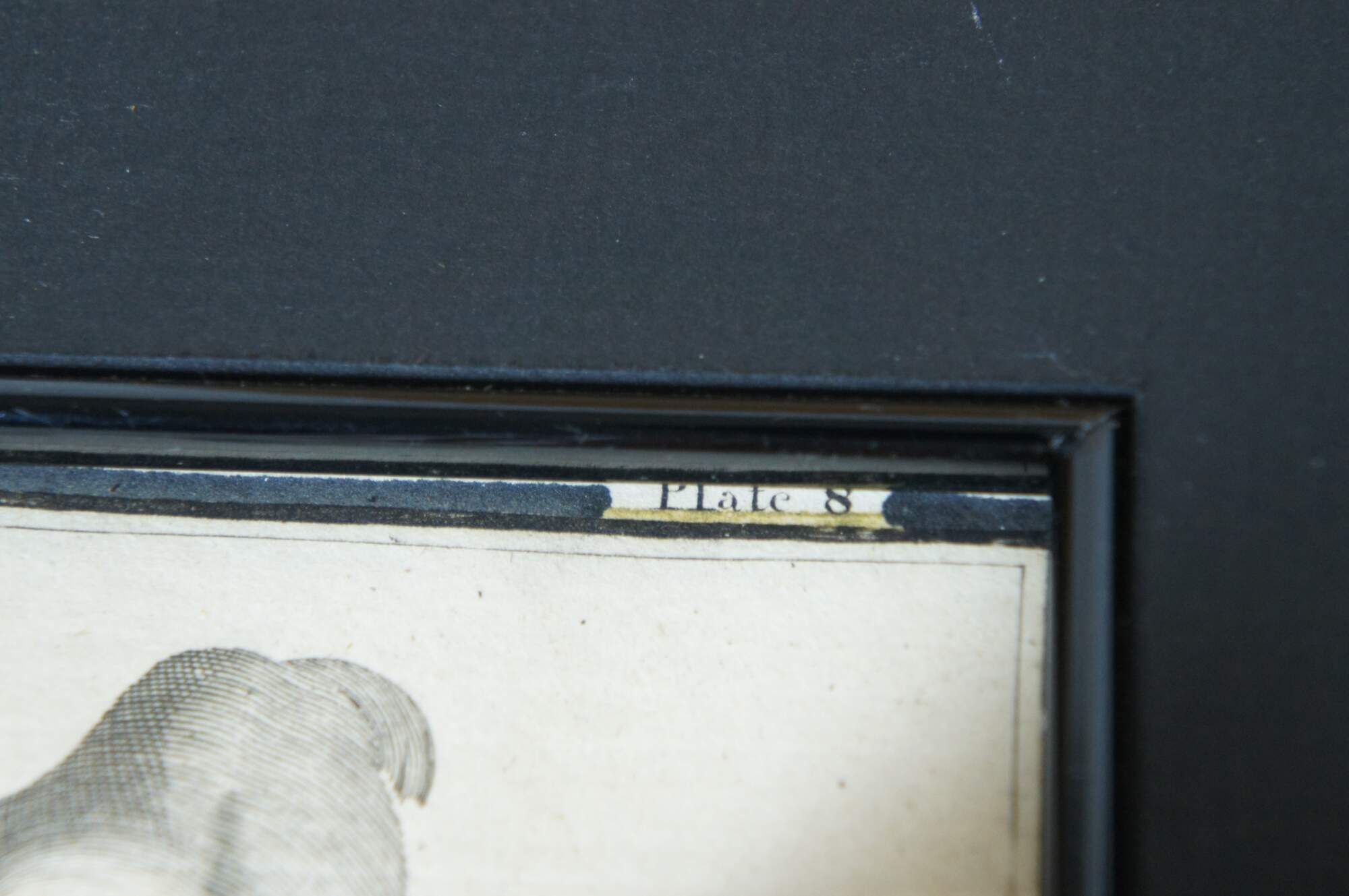 Pair of rare antique 18th century Jacques de Sève dental / Zoology / anatomy etchings / engravings of a Mastodon / Mammut tooth, front and top views / elevations. One marked as Plate 8 Original circa 1700-1880. Giltwood frame with raised bevel edge; black mat.