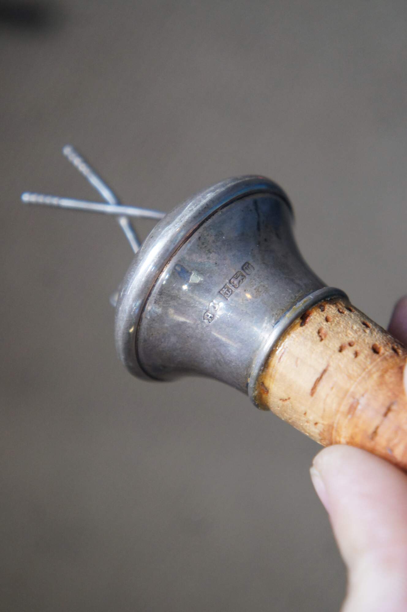 2 Birmingham Silver Co. Sterling Silver Decorative golf themed wine bottle stoppers. Features cross clubs and a man with club. Hallmarked along the side.