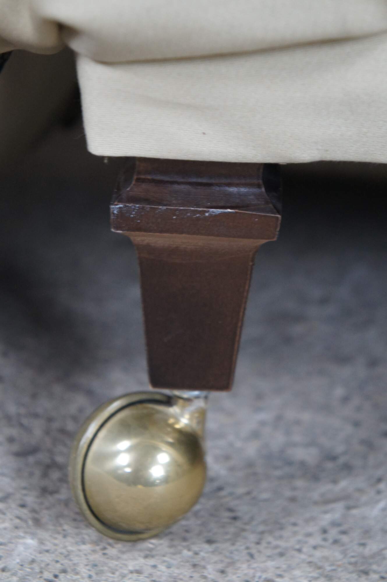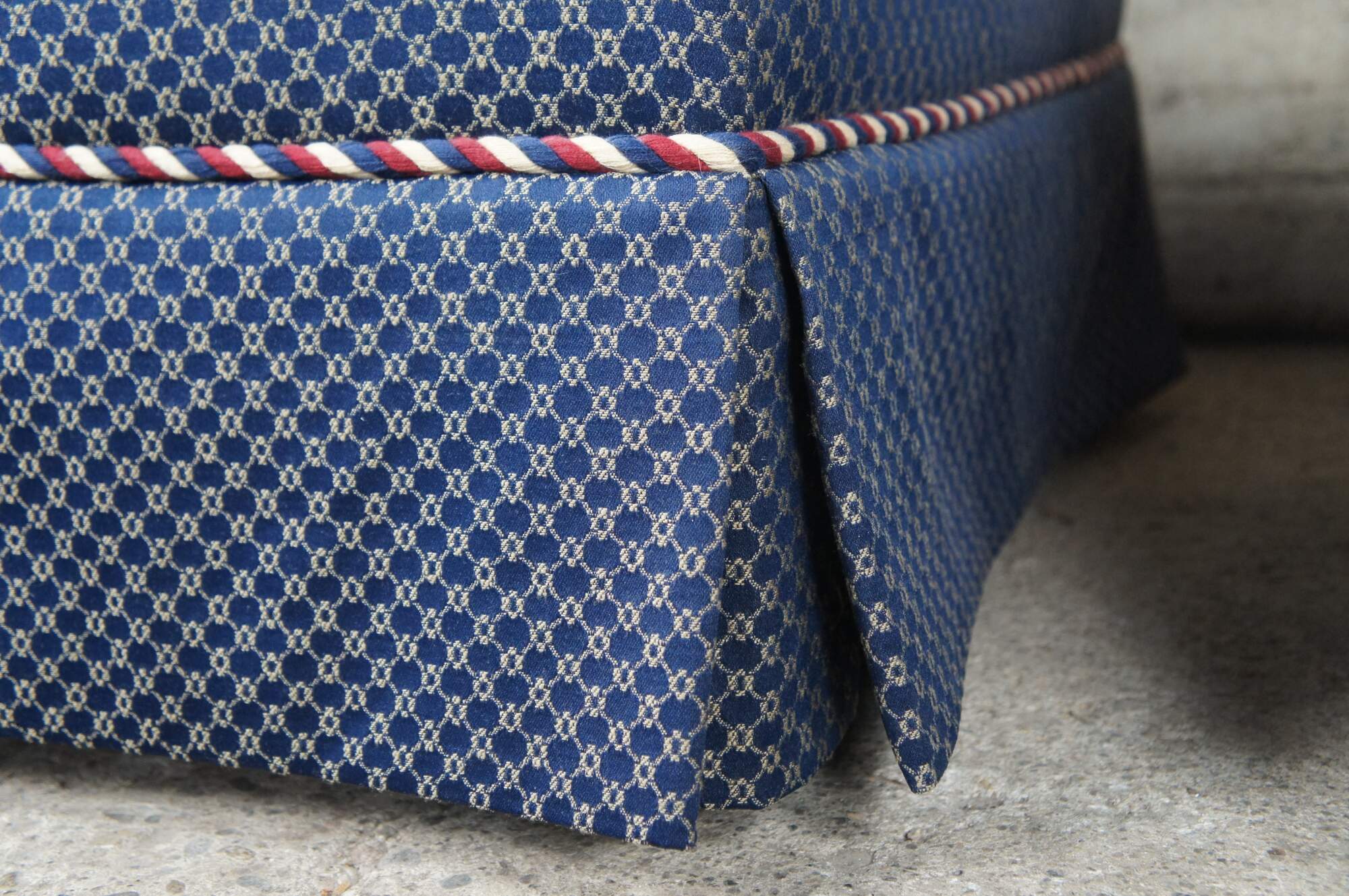 Pair of Century Furniture Ottomans. Featuring a Blue and gold diamond pattern fabric with rope twisted cording.