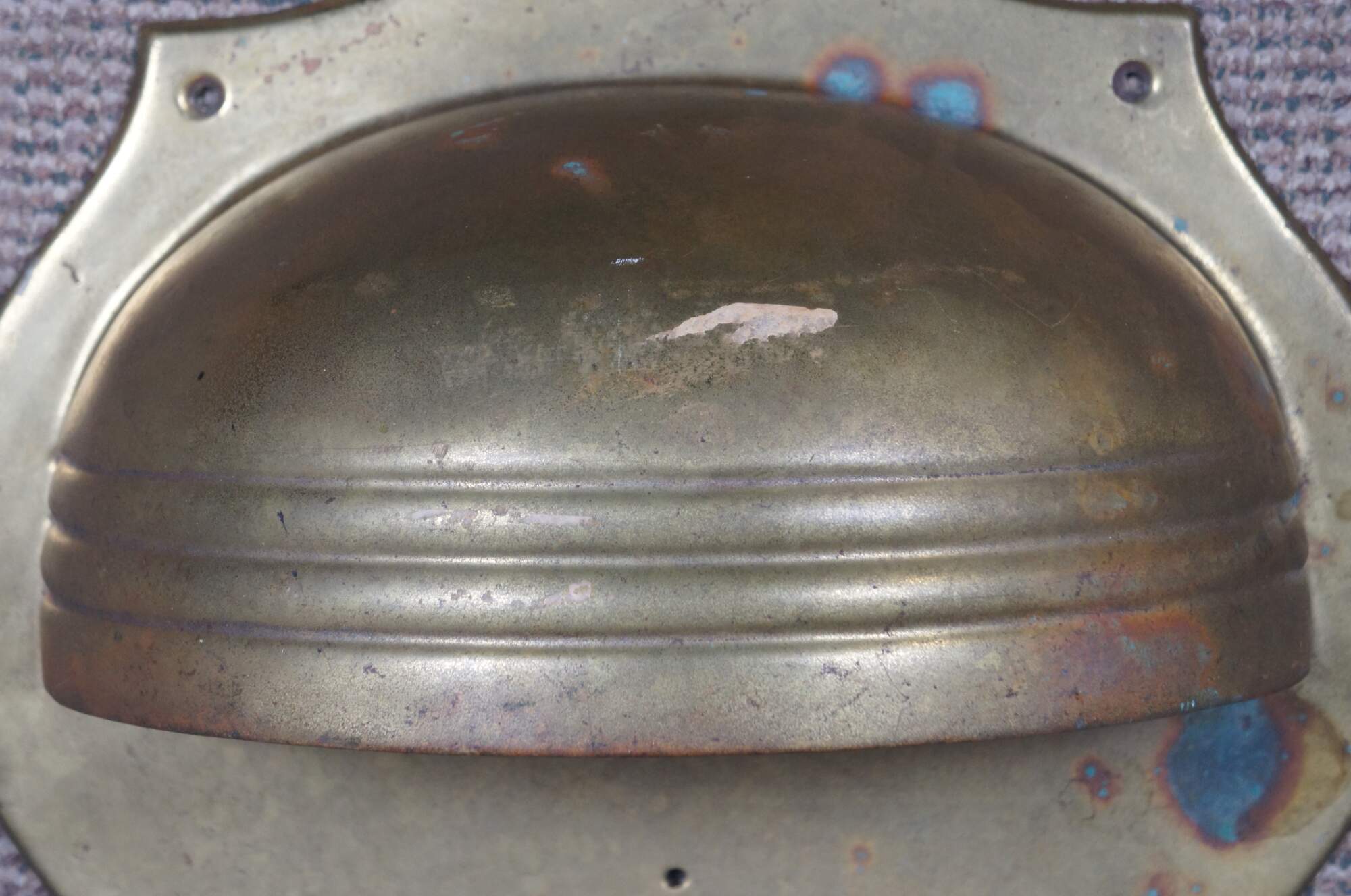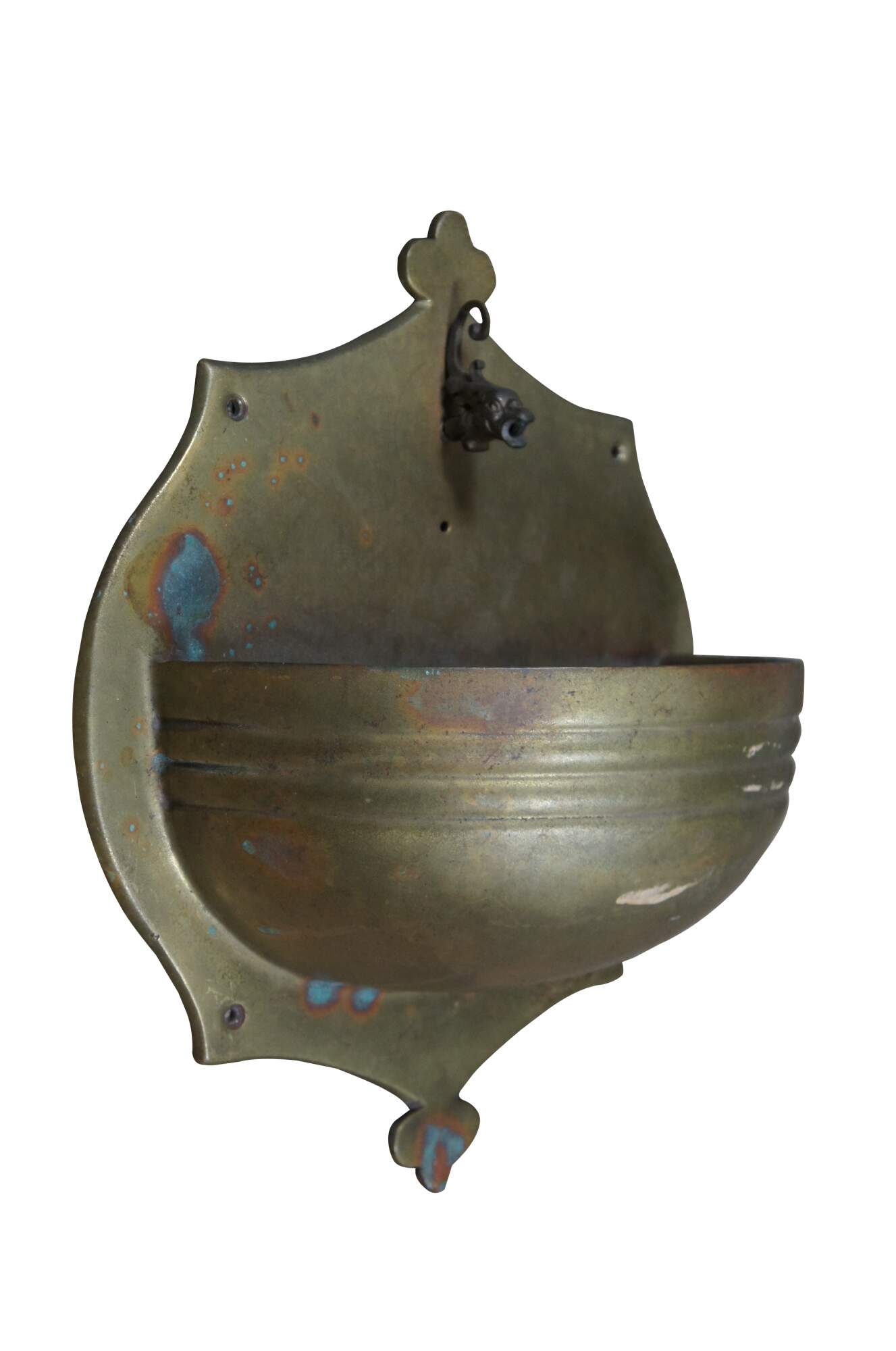 20th century solid brass European wall mounted lavabo / fountain with a spout in the shape of the head of a dolphin / fish with swirling head feathers and open mouth. Very Heavy.