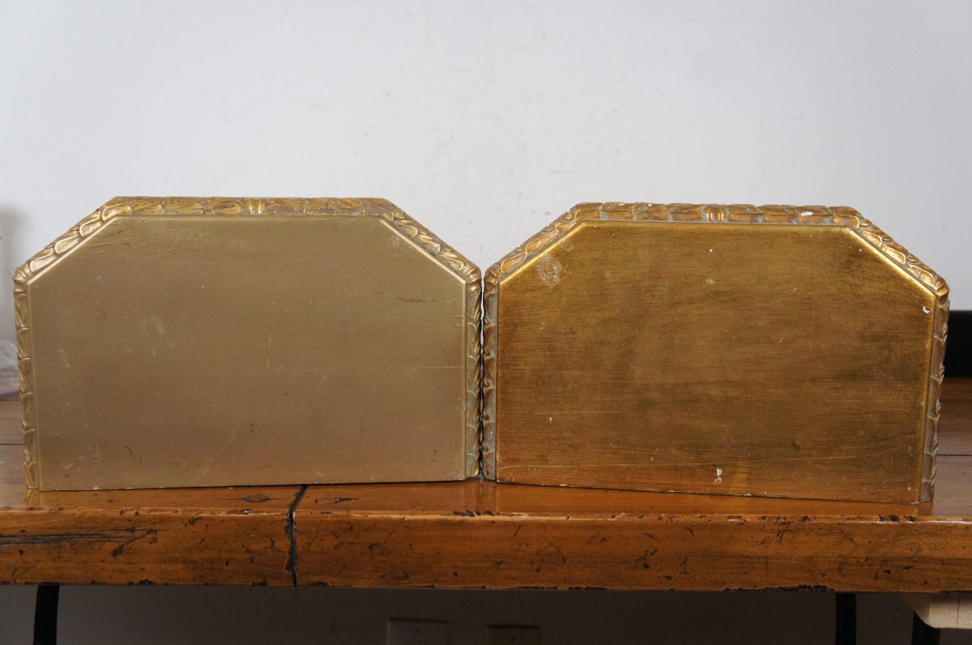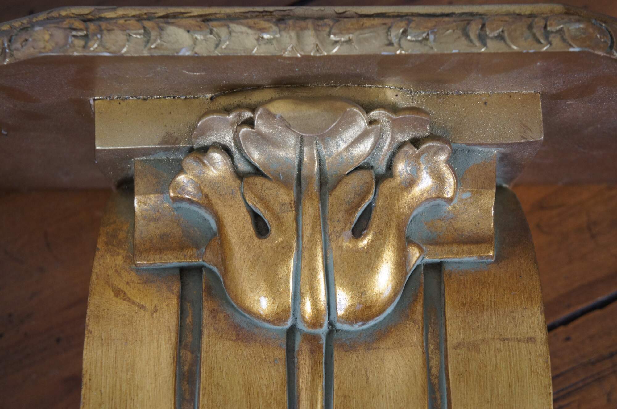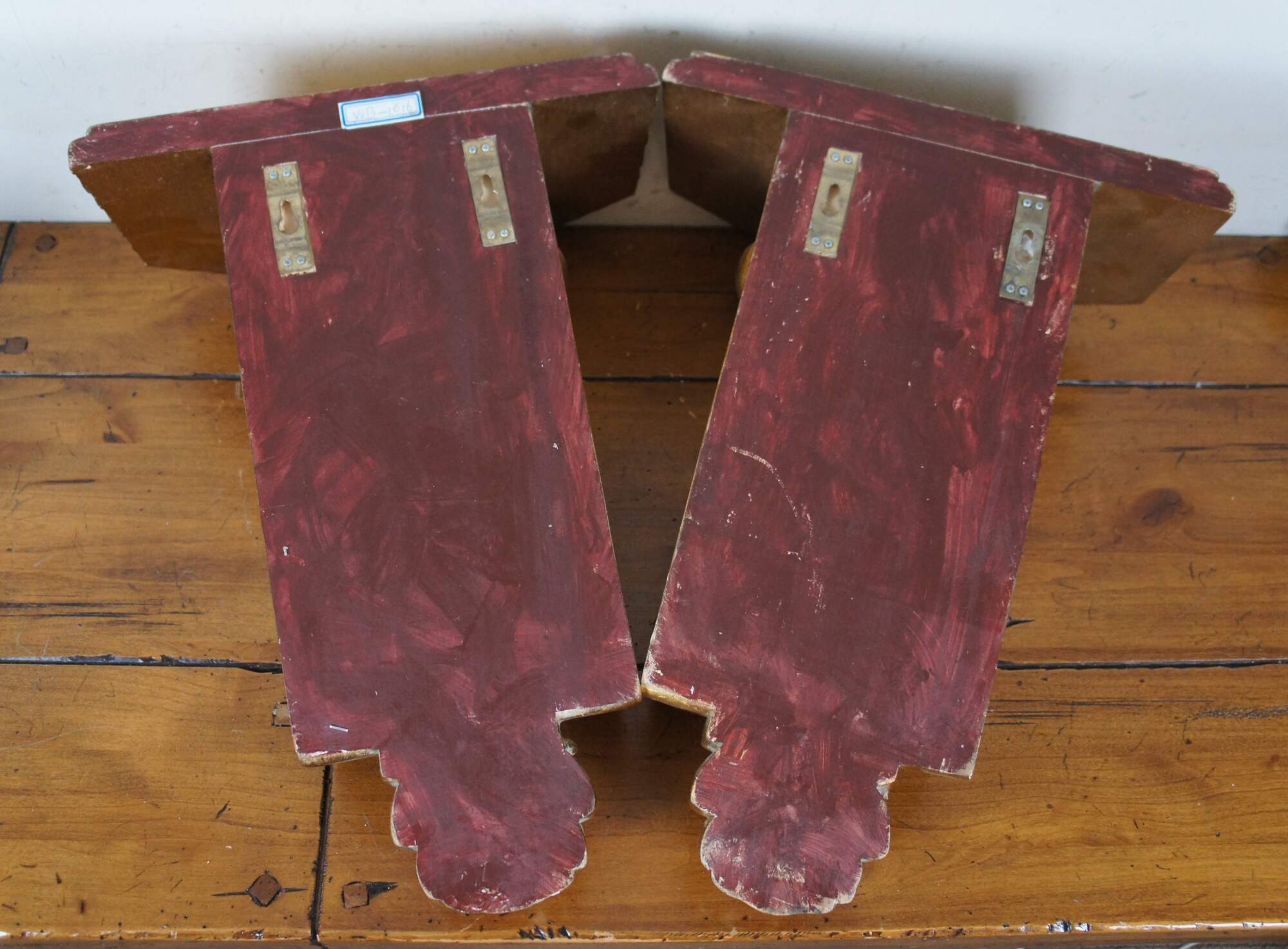 Pair of vintage 20th century giltwood corbels / wall brackets, featuring a grooved scrollwork body embellished with acanthus leaves. Rectangular top with clipped corners and foliate edge detail. WB-1016