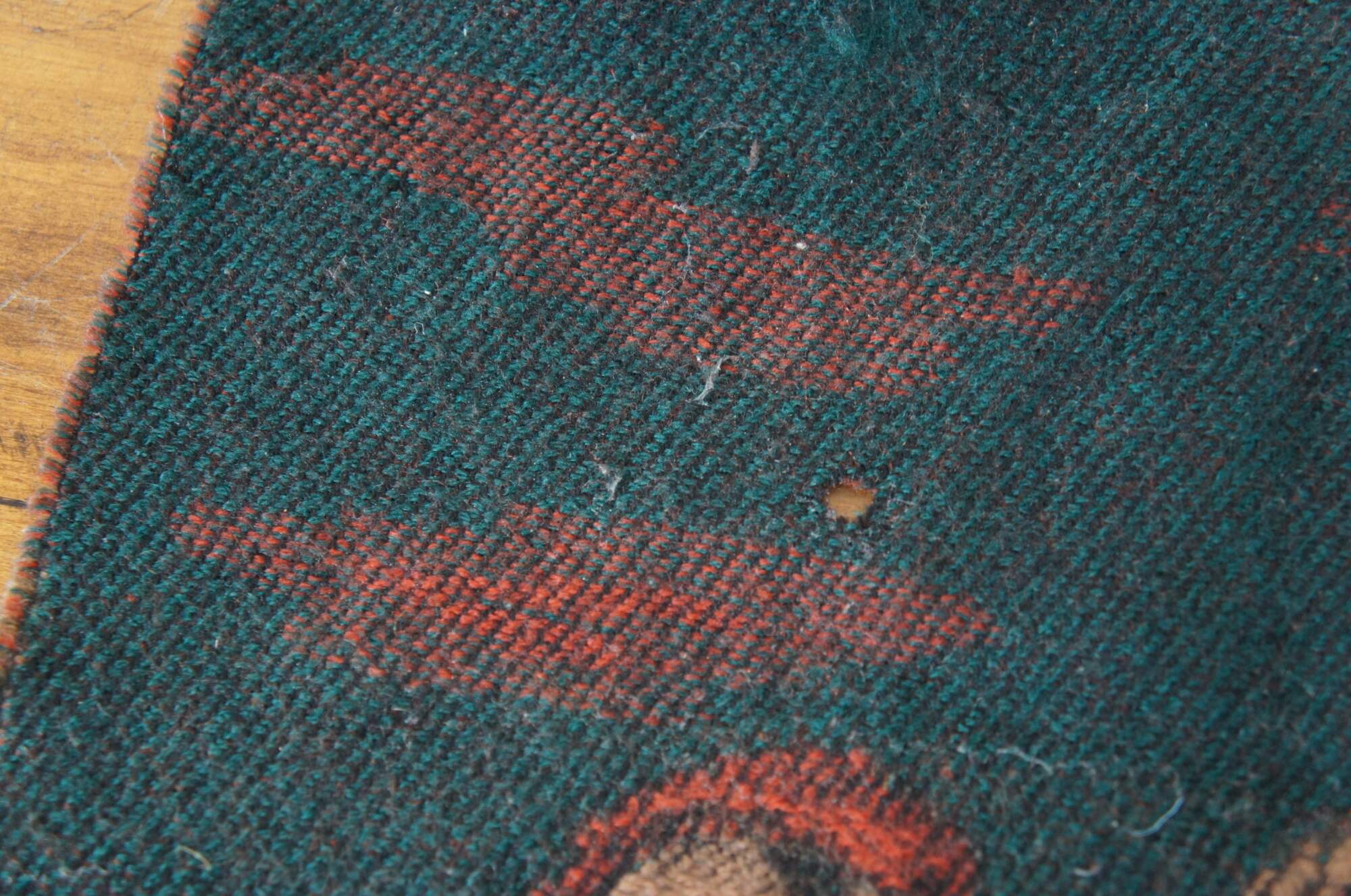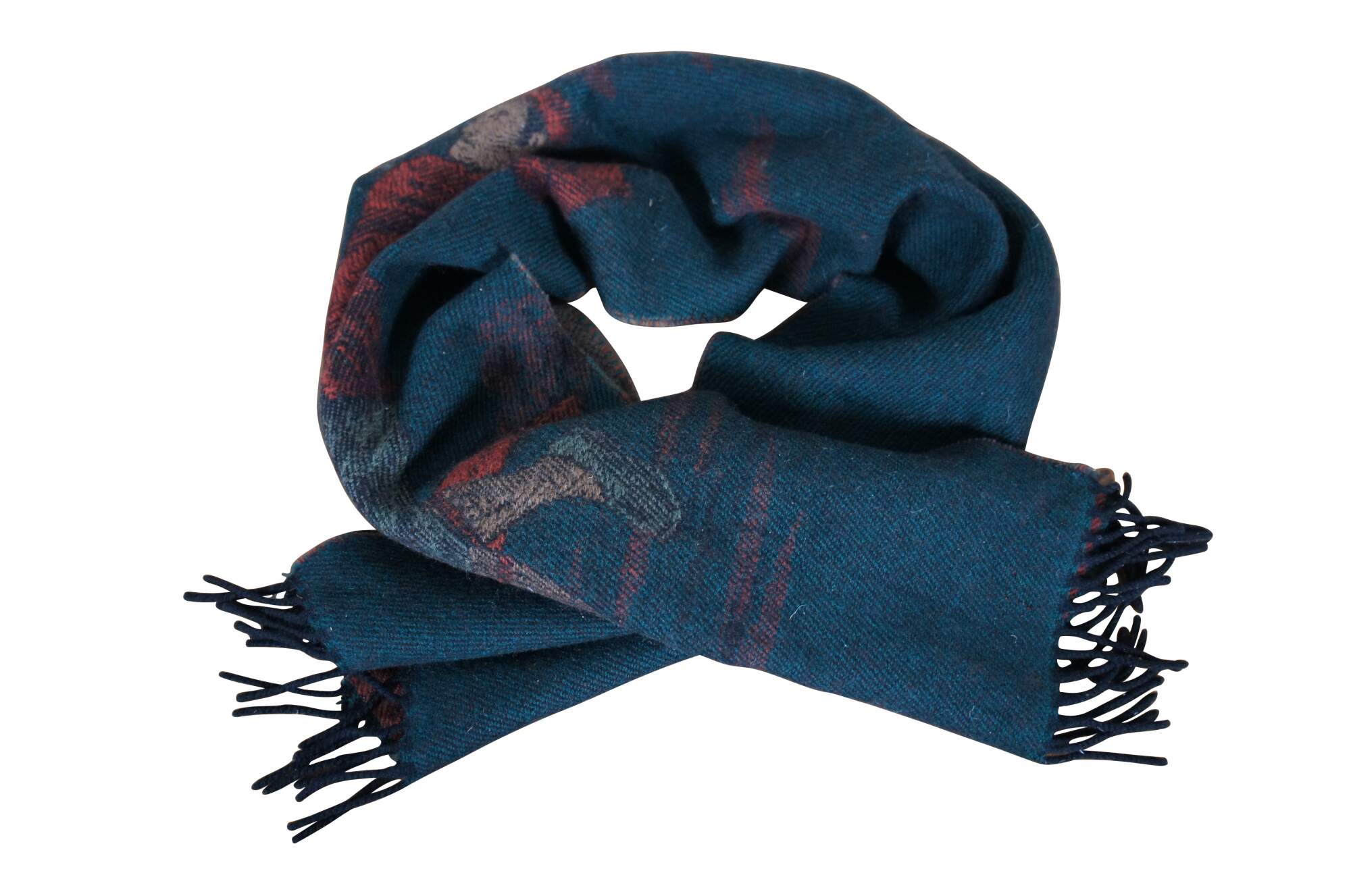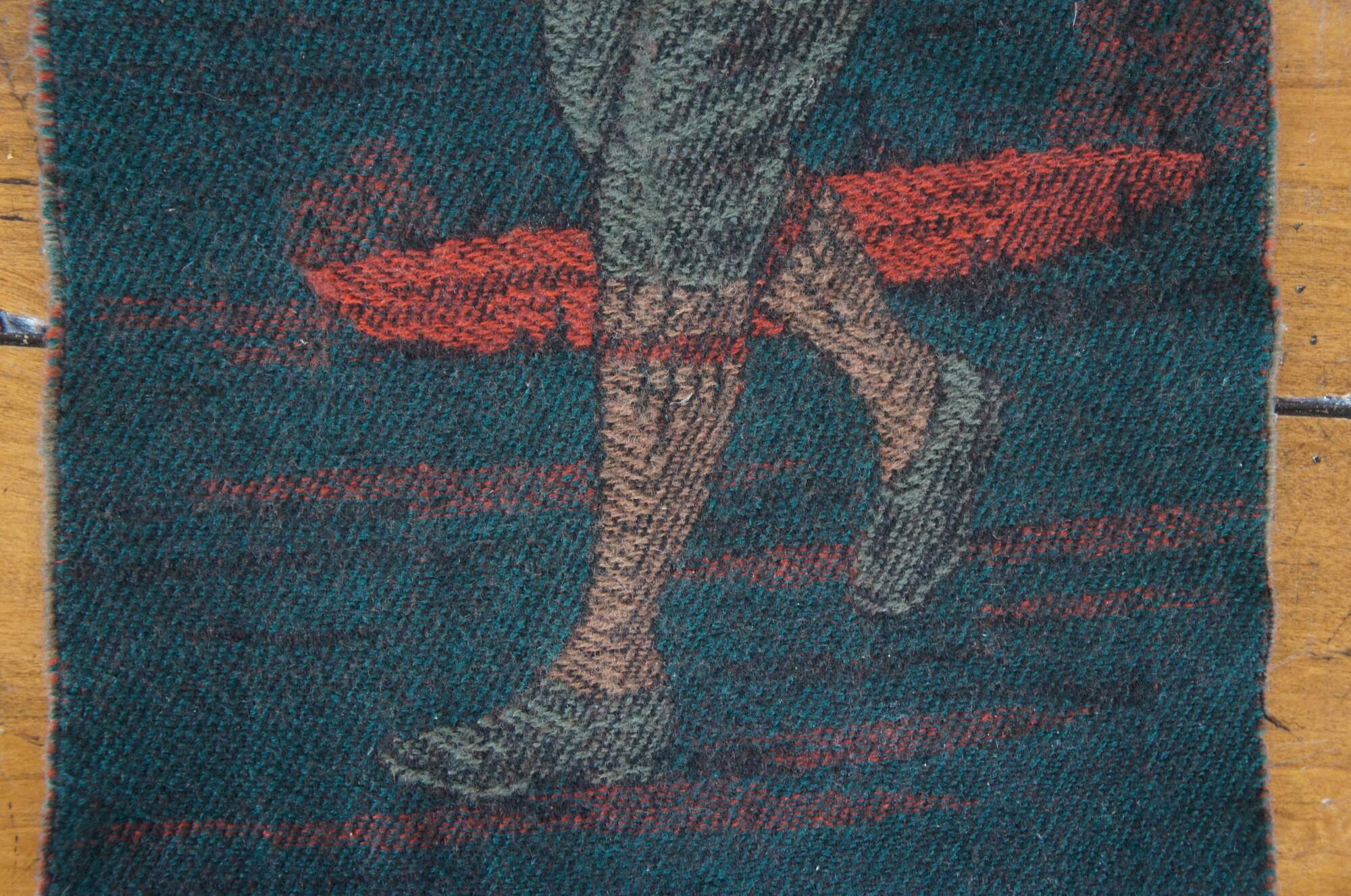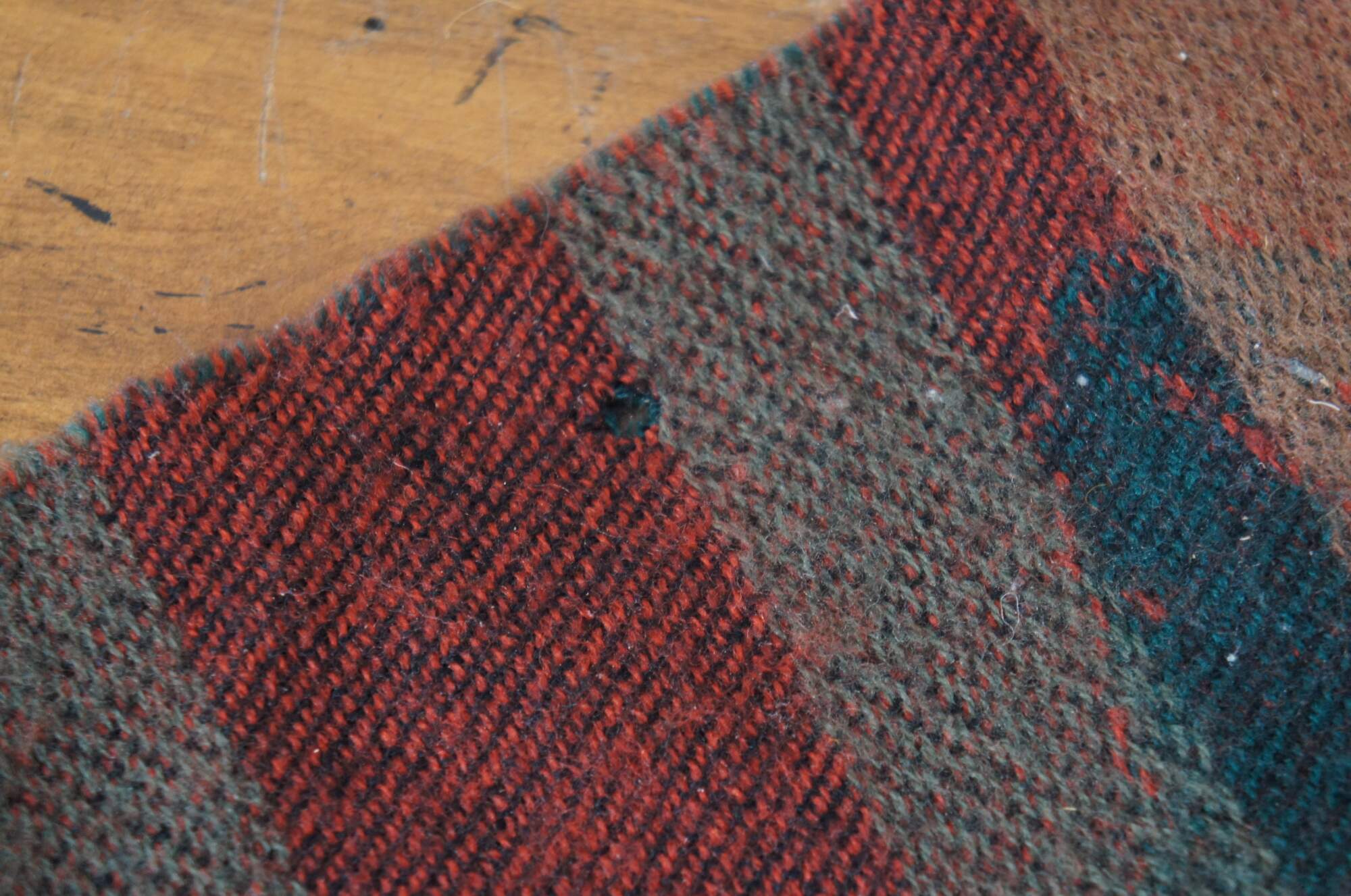 Vintage 20th century green and orange all wool scarf / muffler. Shows a golfer stepping into his swing. By Share of Lyon and New York. Made in France.