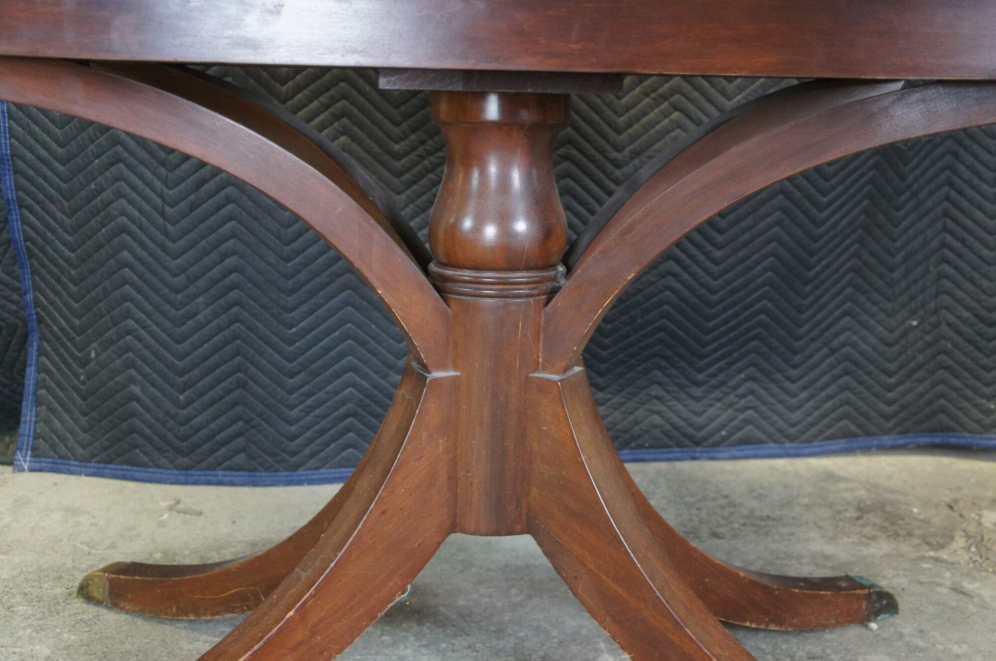 Antique drop leaf game or dining table. Made of mahogany featuring Duncan Phyfe styling with brass capped feet and extendable top.