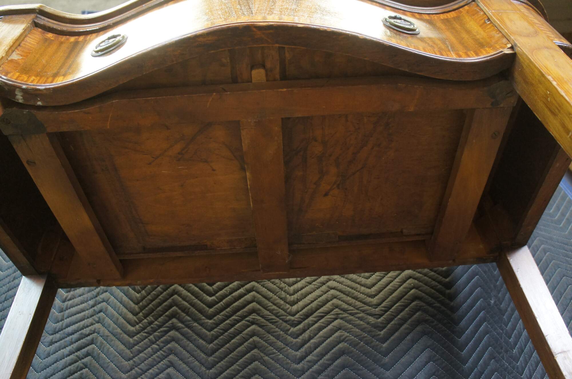 Fair antique condition, wear and distressing commensurate with age and use, veneer loss, edge wear / missing trim, scuffing / marking.