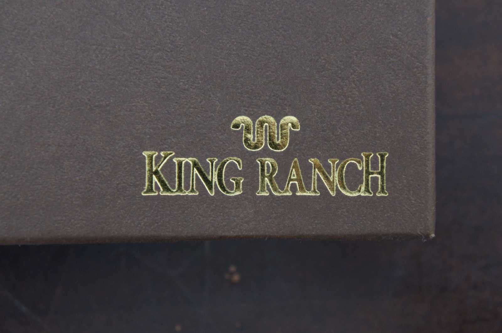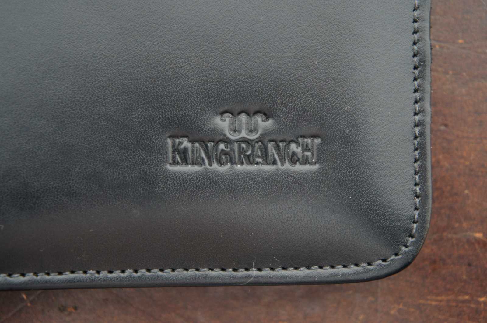Never used, in original box, black leather portfolio with space for a small notepad and pen by King Ranch.